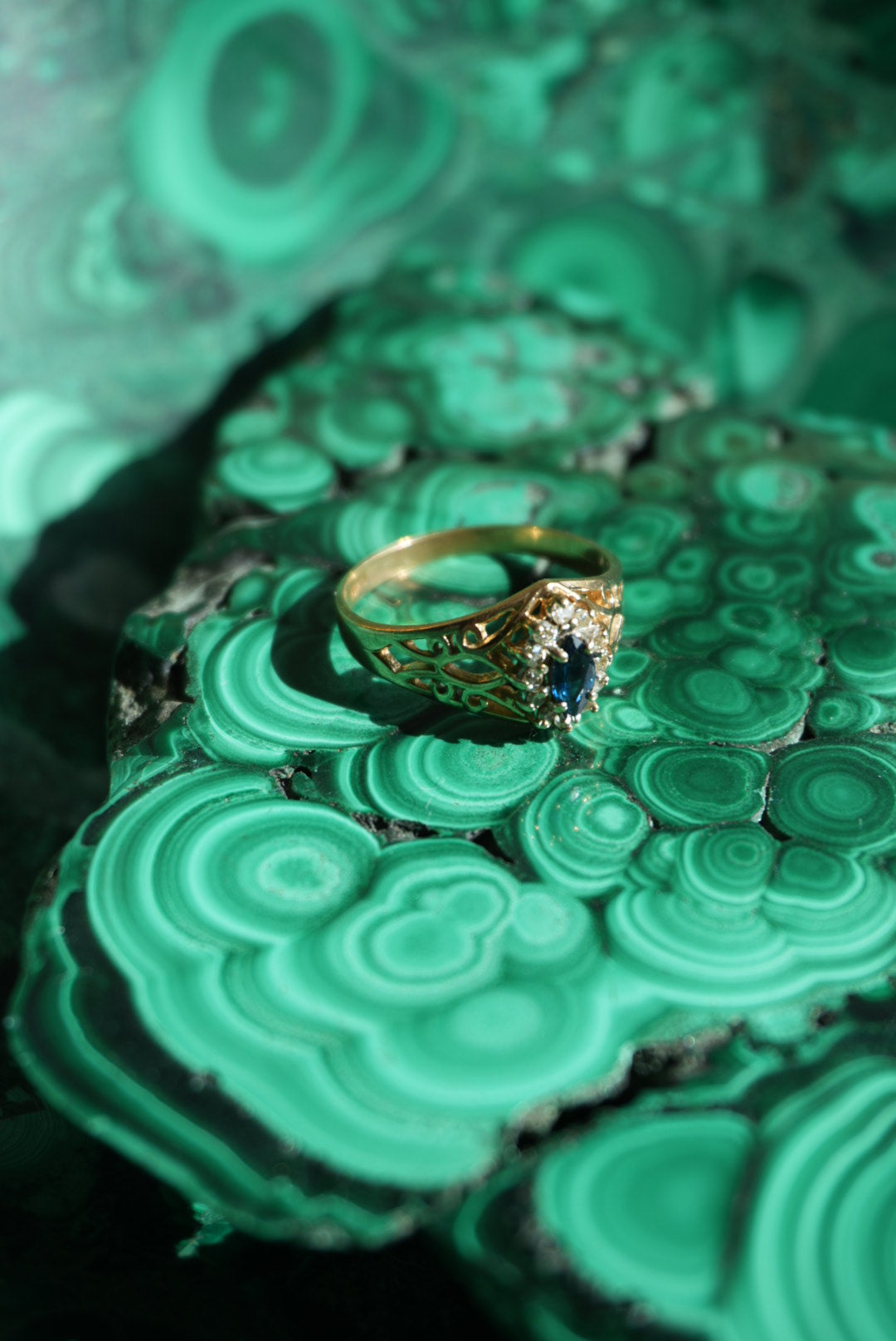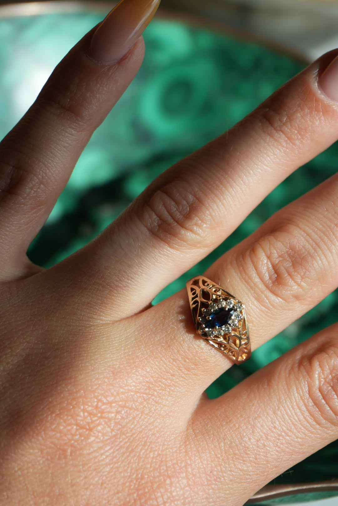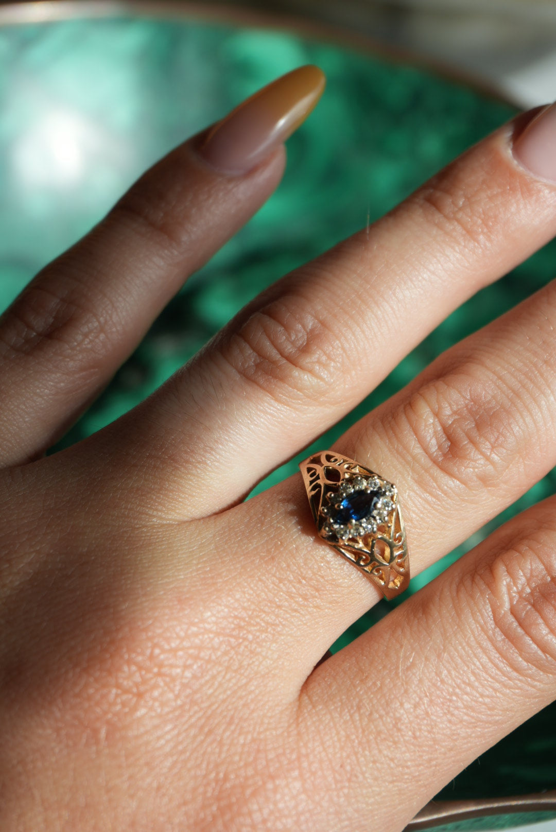 Size 7 10k gold ring with natural diamonds & sapphire