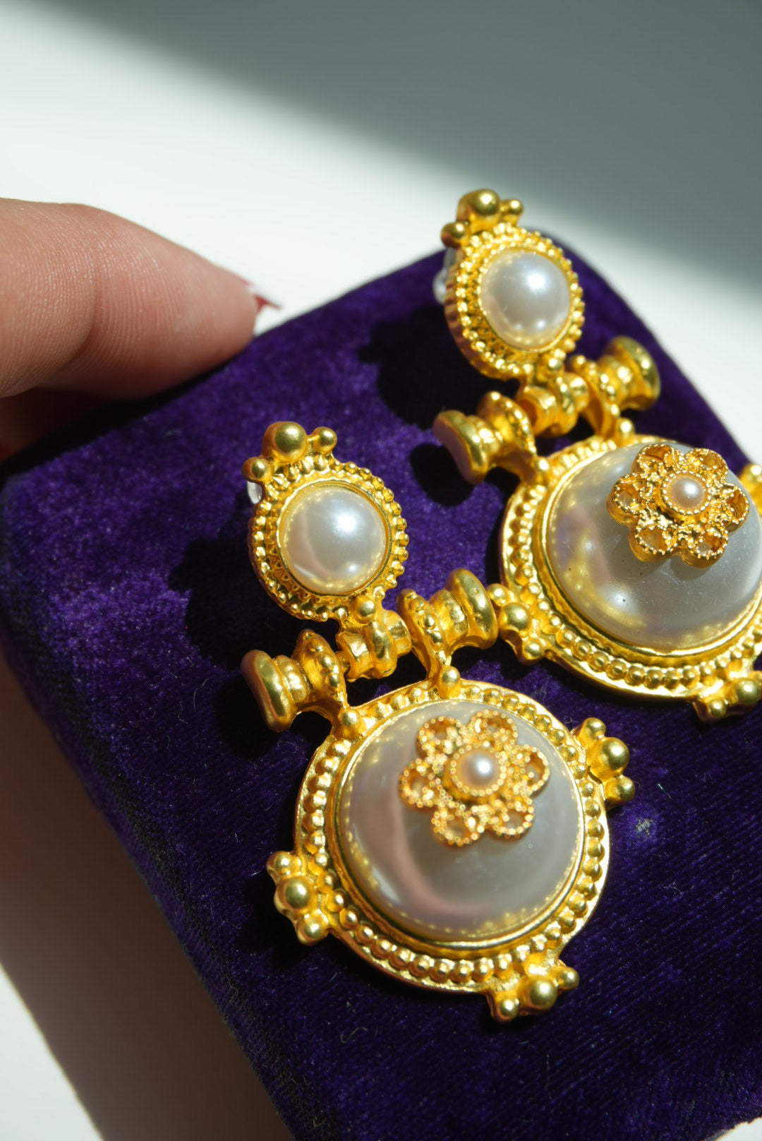 Exude royal elegance with BAROQUE BABES, a statement piece crafted with stunning faux pearls and delicate golden accents. This regal accessory is sure to make a bold and unforgettable impression.