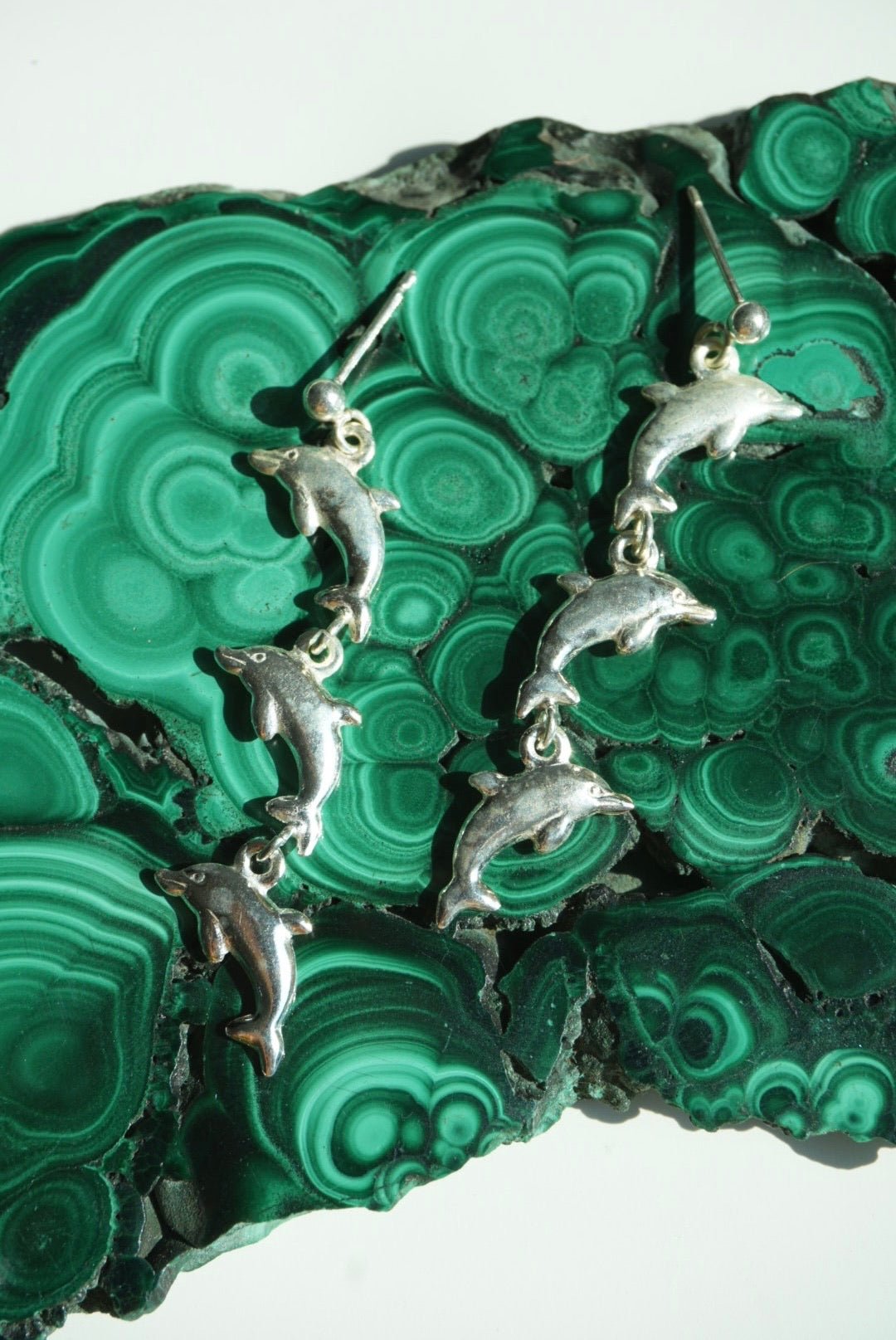sterling silver trio of dolphins 2” length