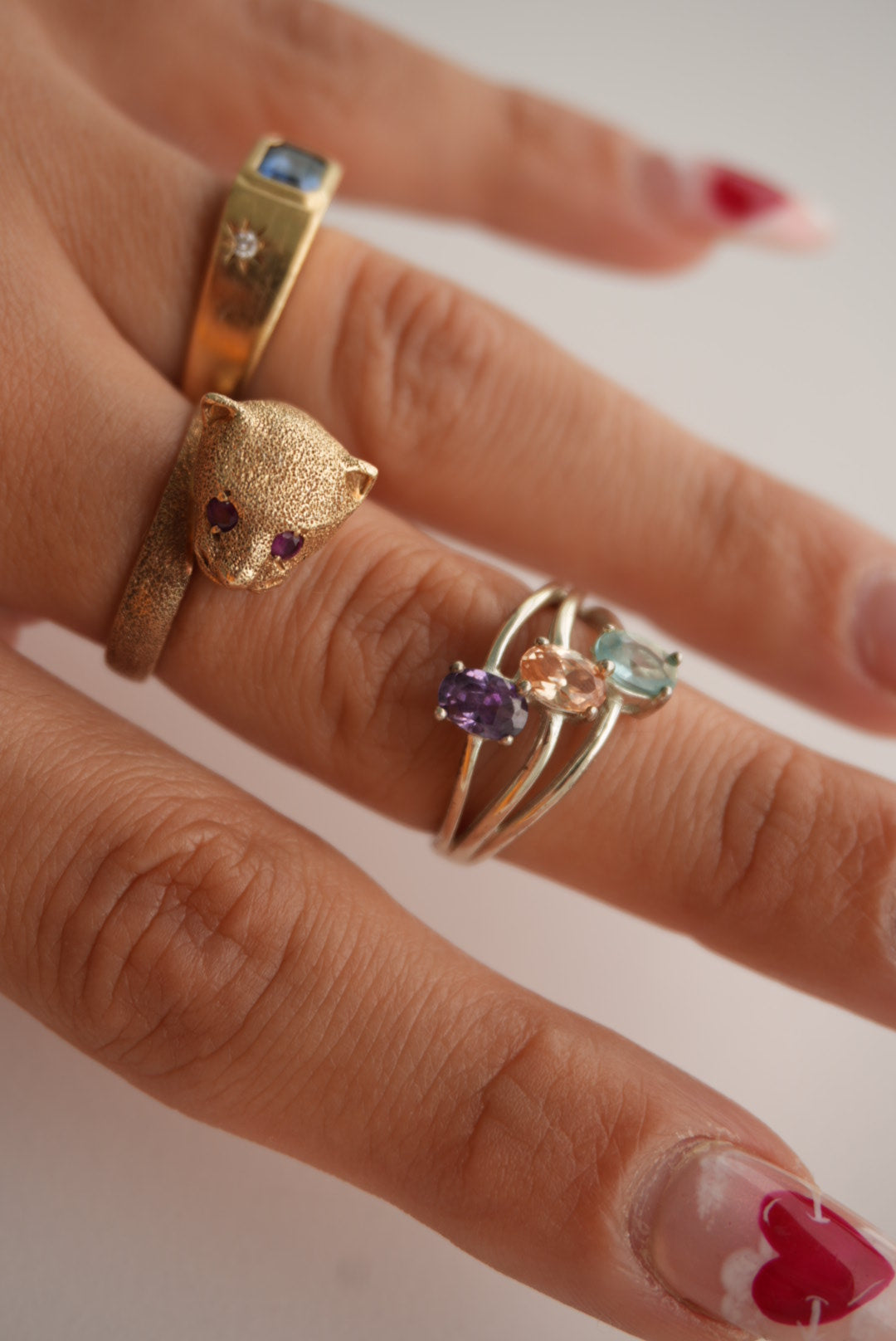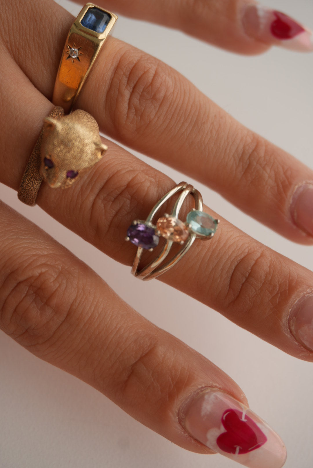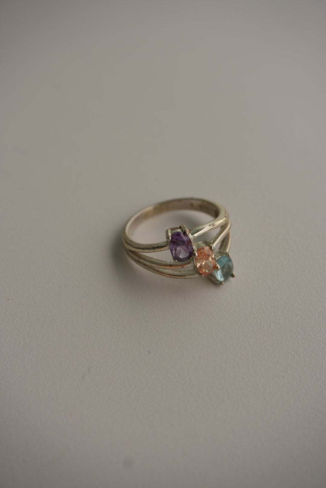 Sterling g silver ring with aquamarine amethyst & citrine a light and cute pastel tone ring