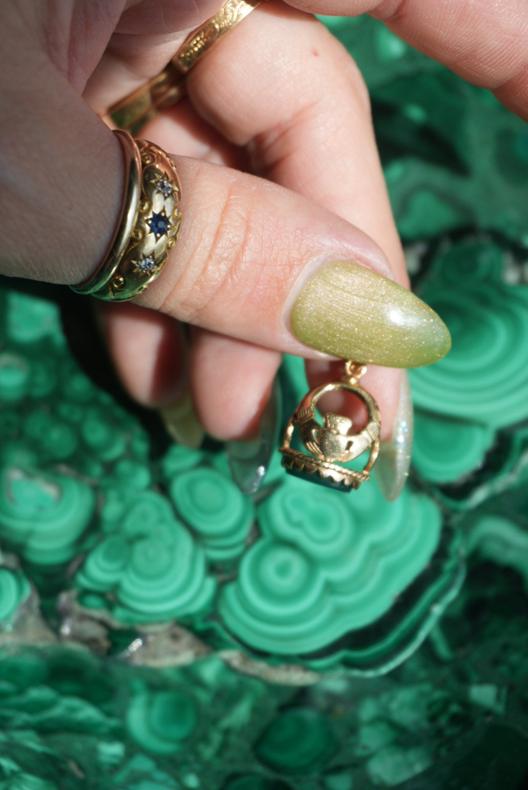 Green jade 10K gold antique charm