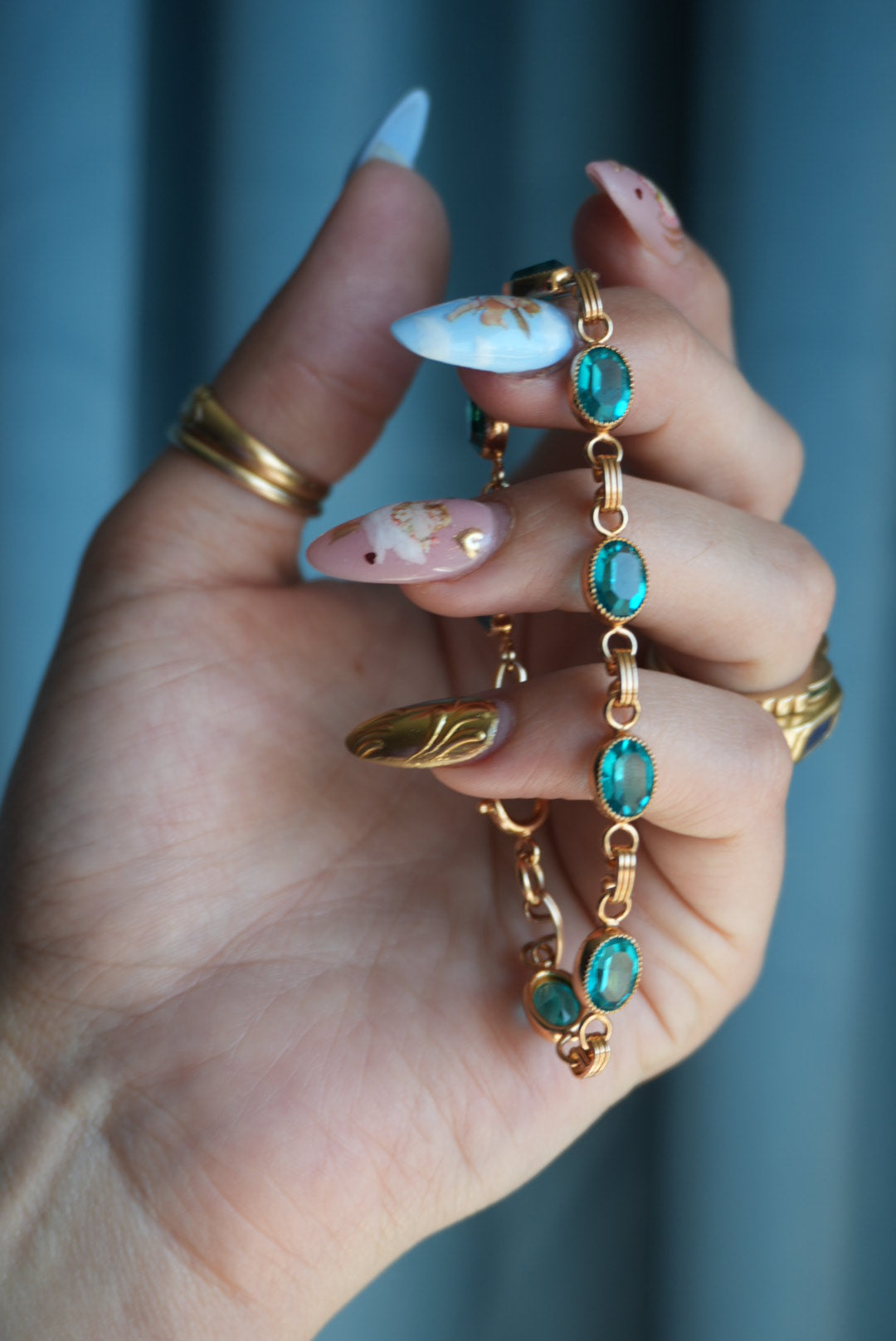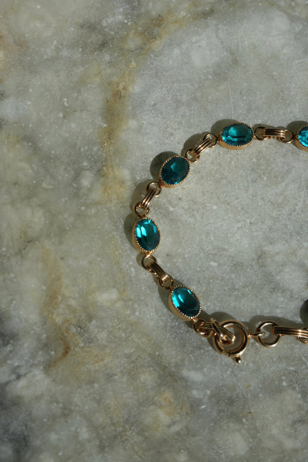 7.25 inch length gold fill bracelet with glass stones