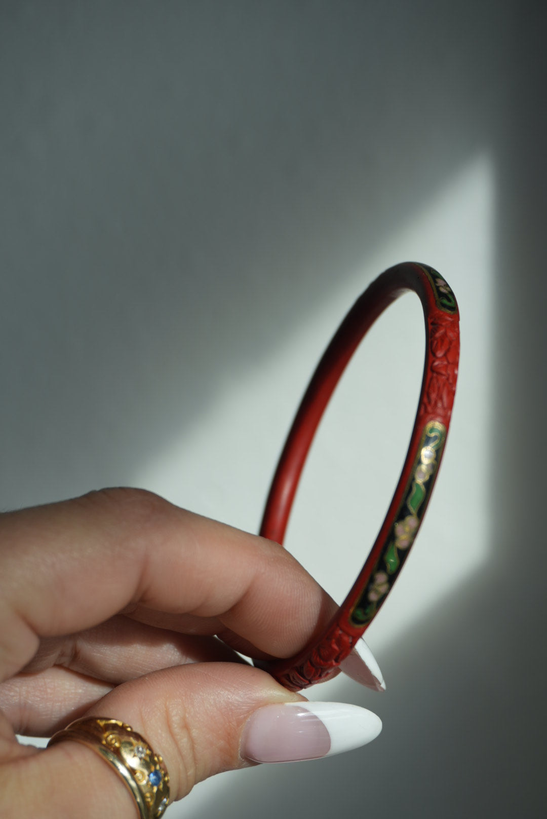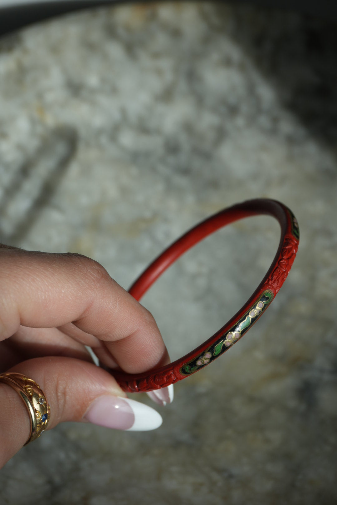 Red cinnabar with cloisonné inlay 2.75 inch diameter (larger size bangle)