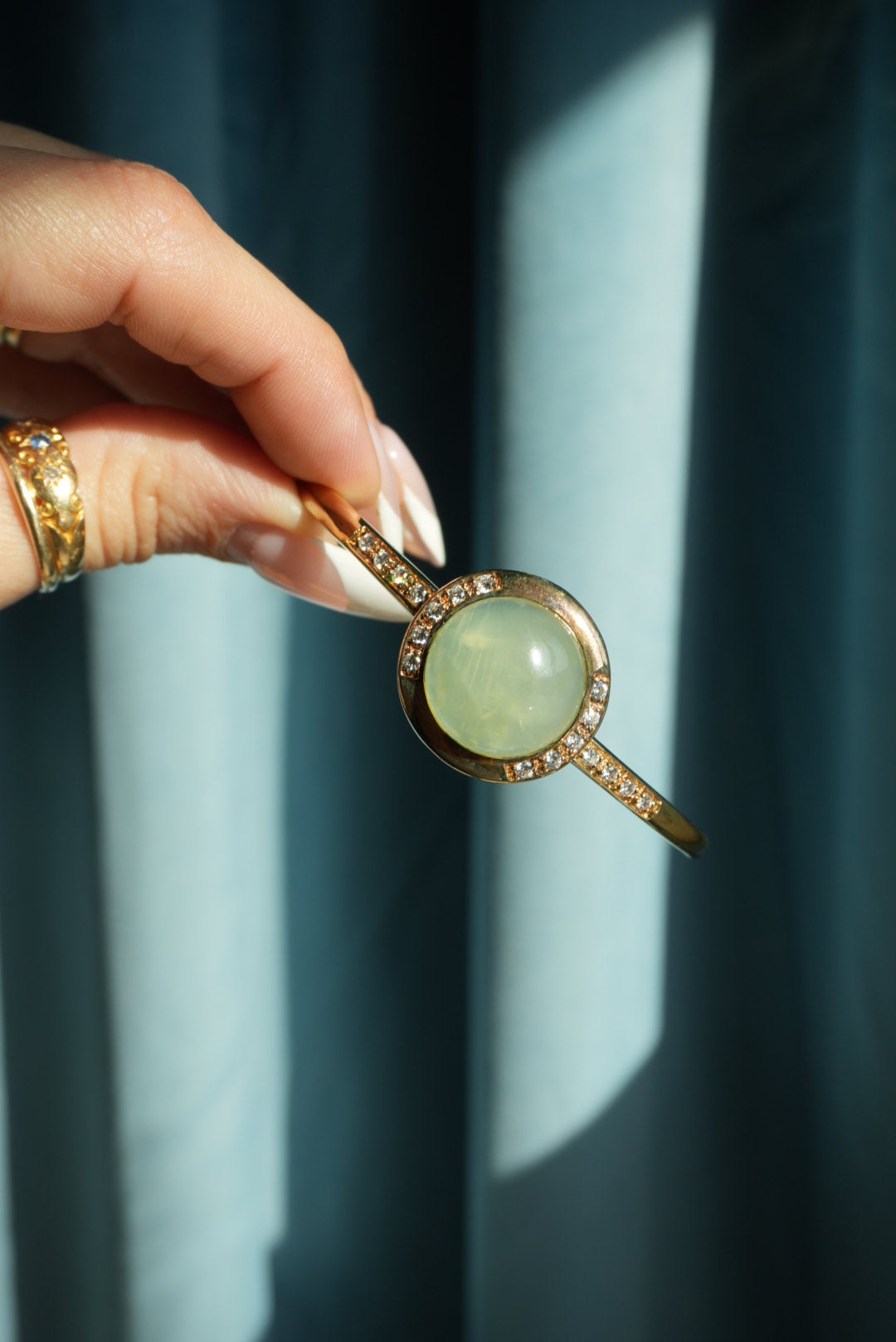 2.5 inch wide vermeil bangle bracelet with green jade with cz stone