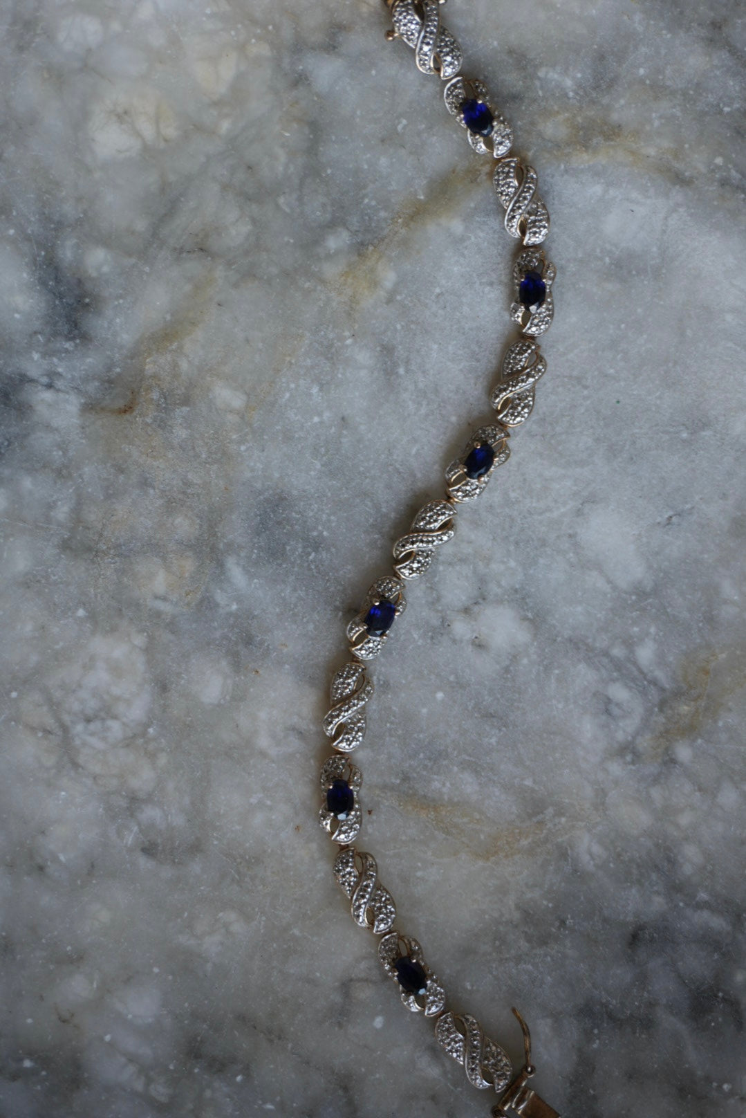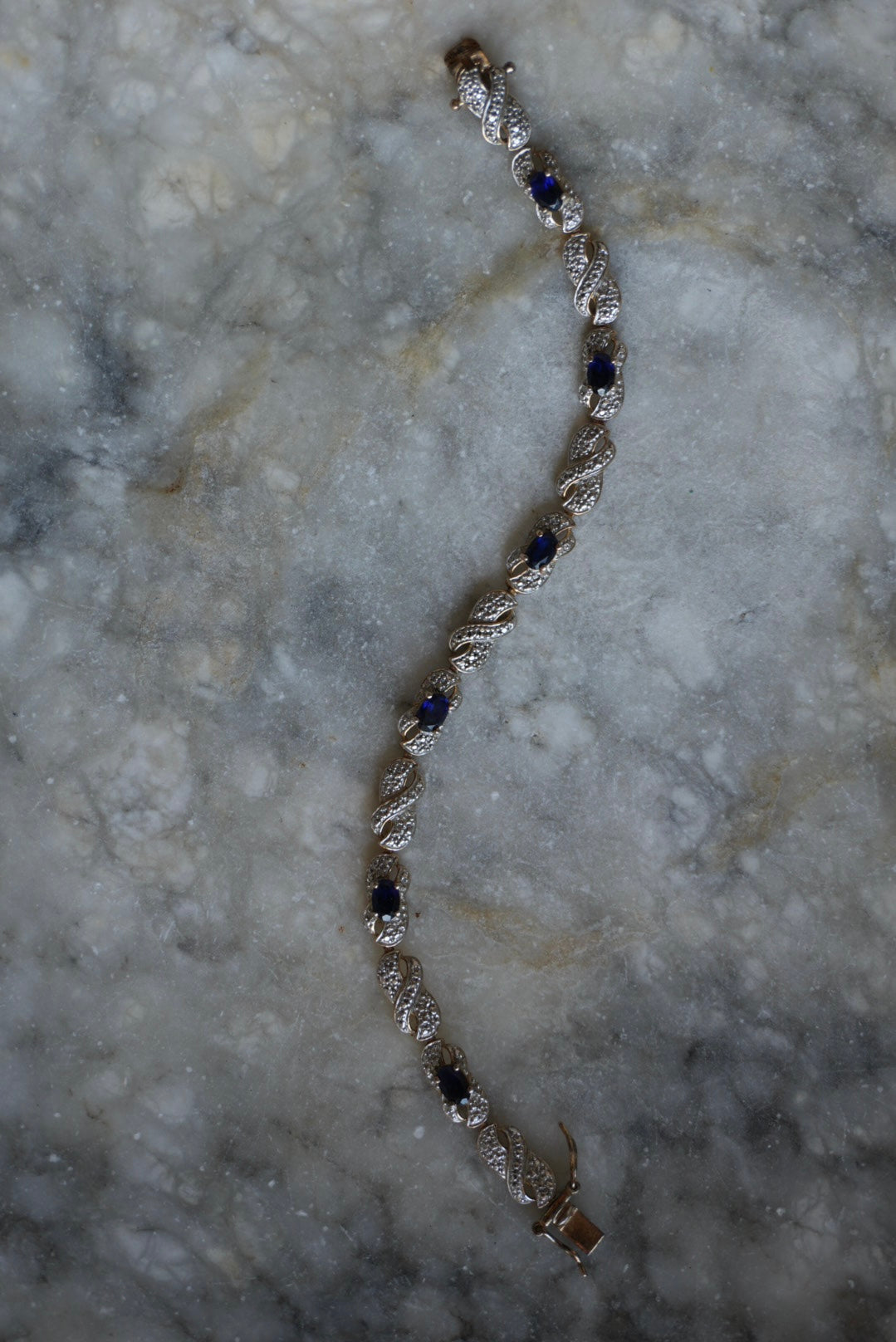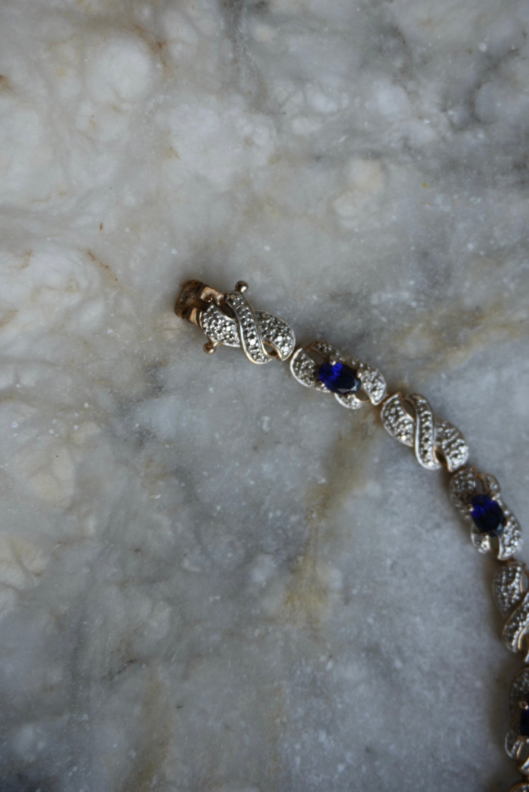 Lab grown sapphires in two tone gold vermeil tennis bracelet 7.5 inches