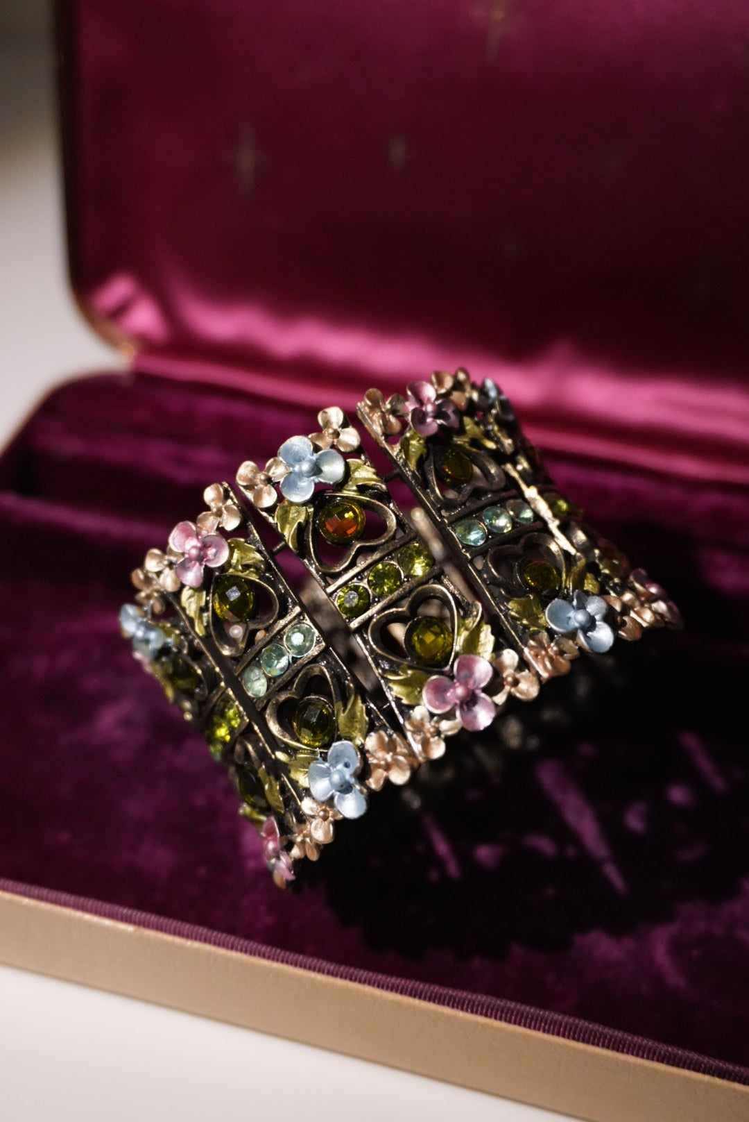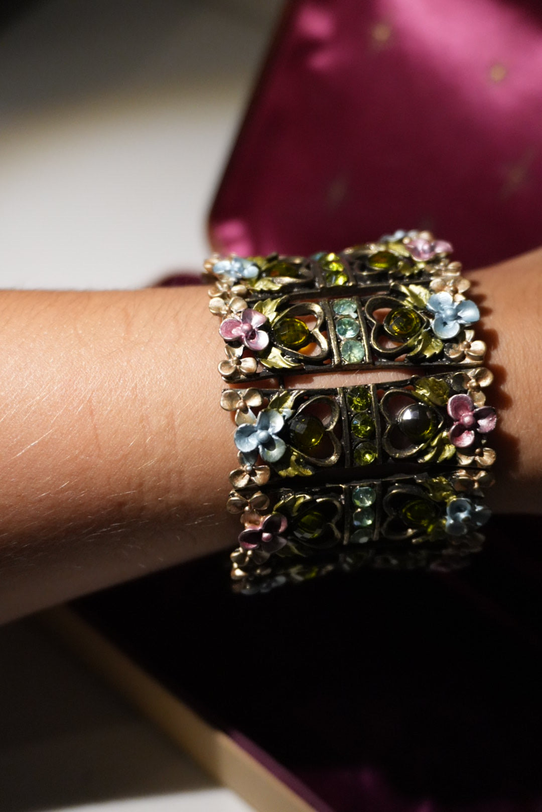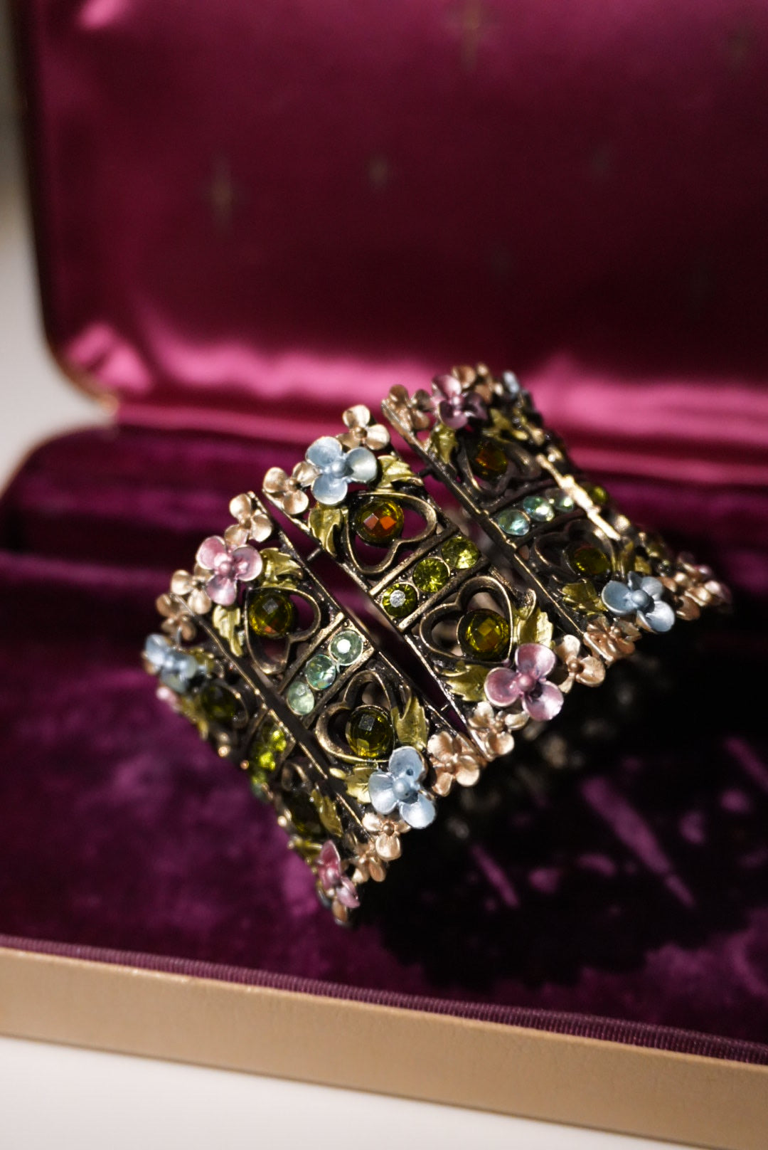 Add some sparkle to your style with the wide statement piece, GARDEN PARTY. This cuff boasts sparkling pastel details, perfect for any occasion. Embrace the uniqueness of this quirky and playful accessory!