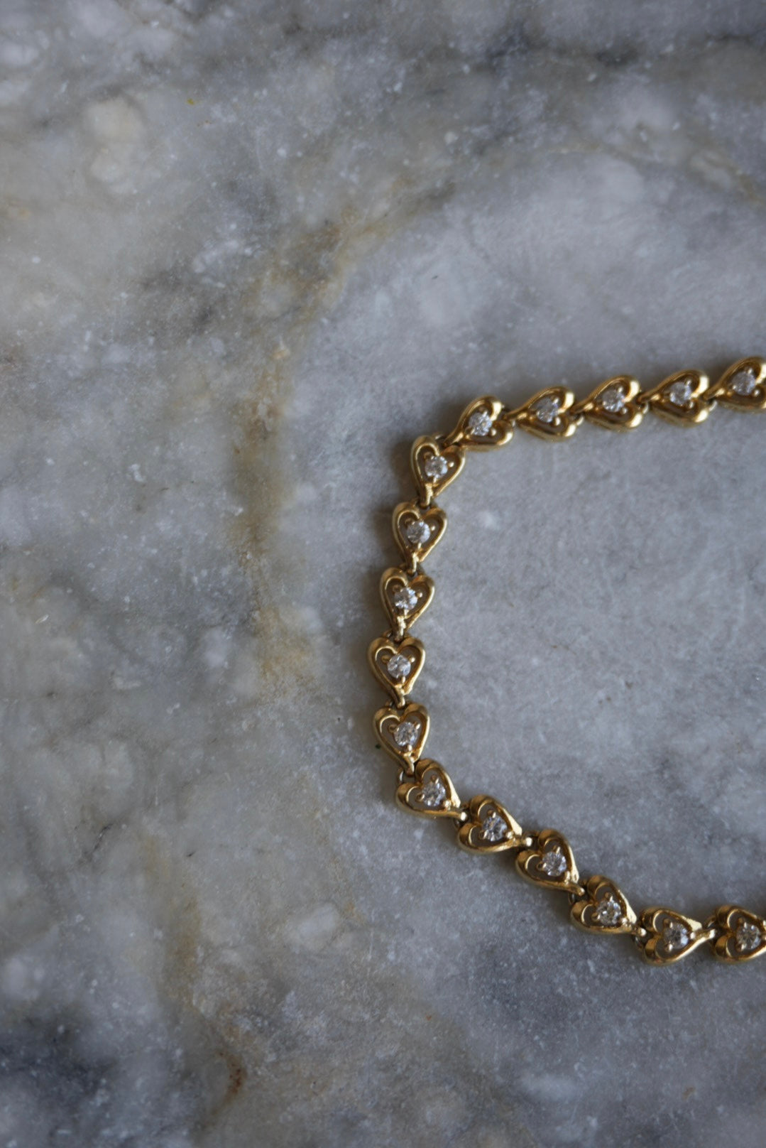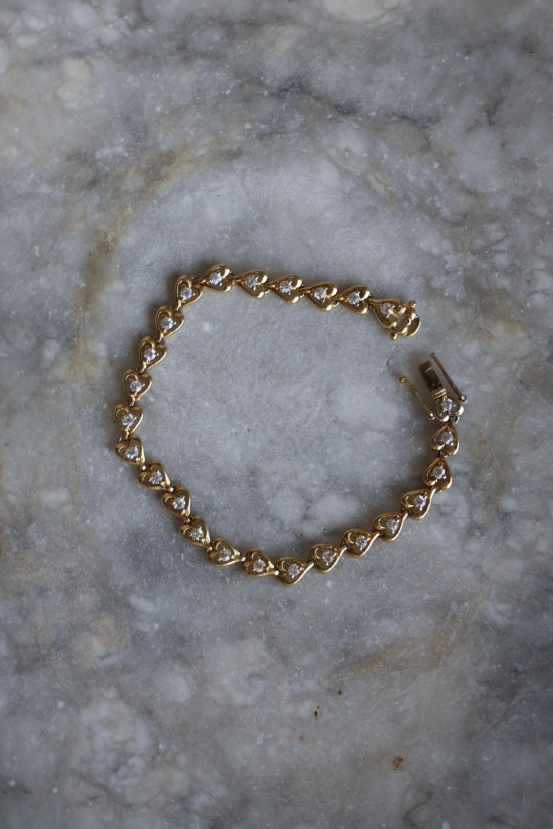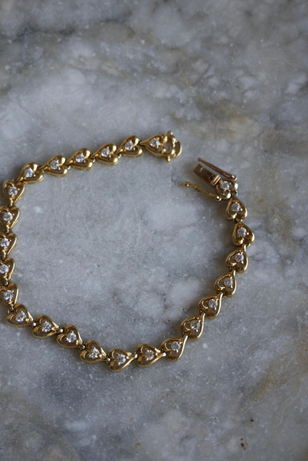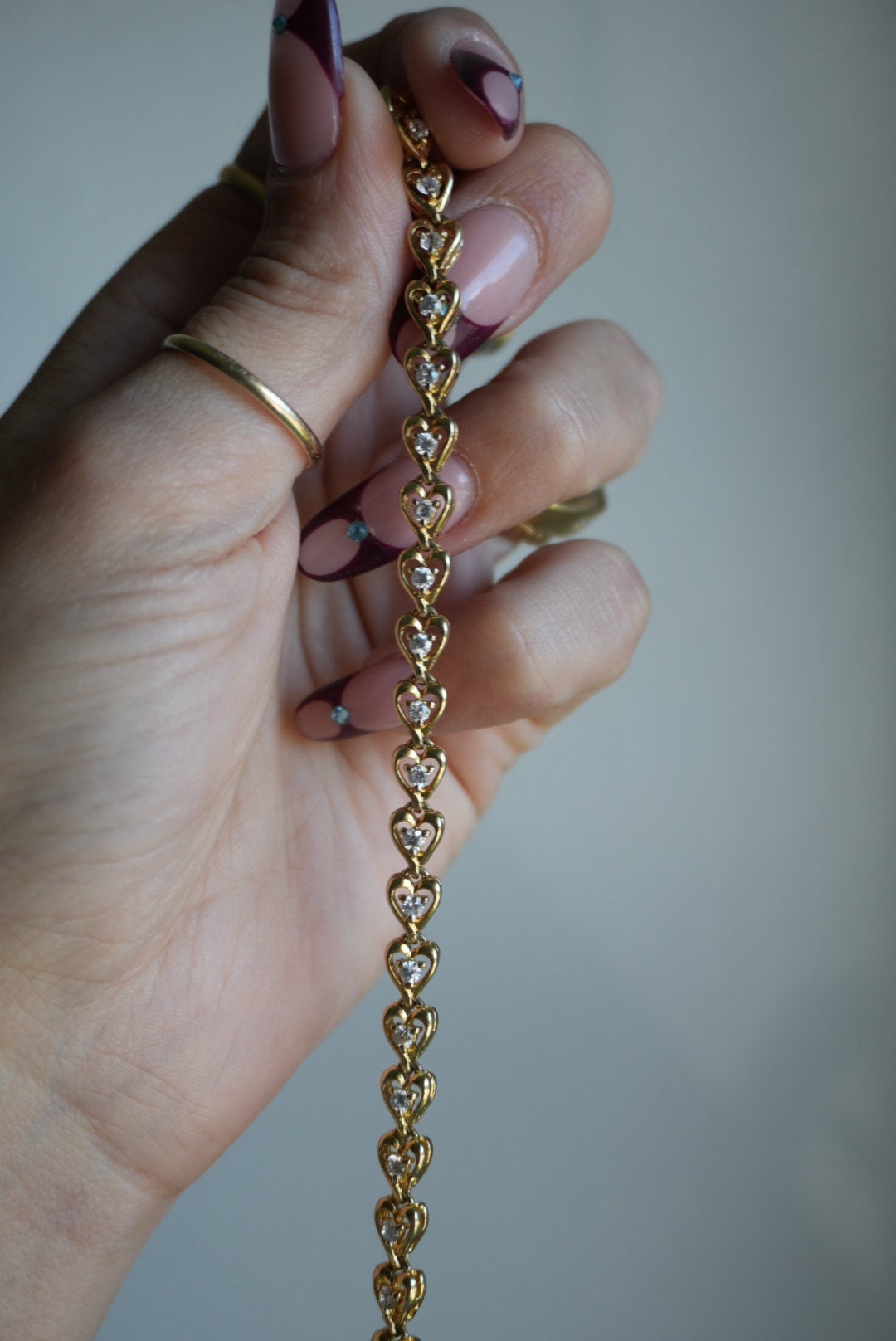 7 inch sweetie vermeil bracelet with heart links and glass stones