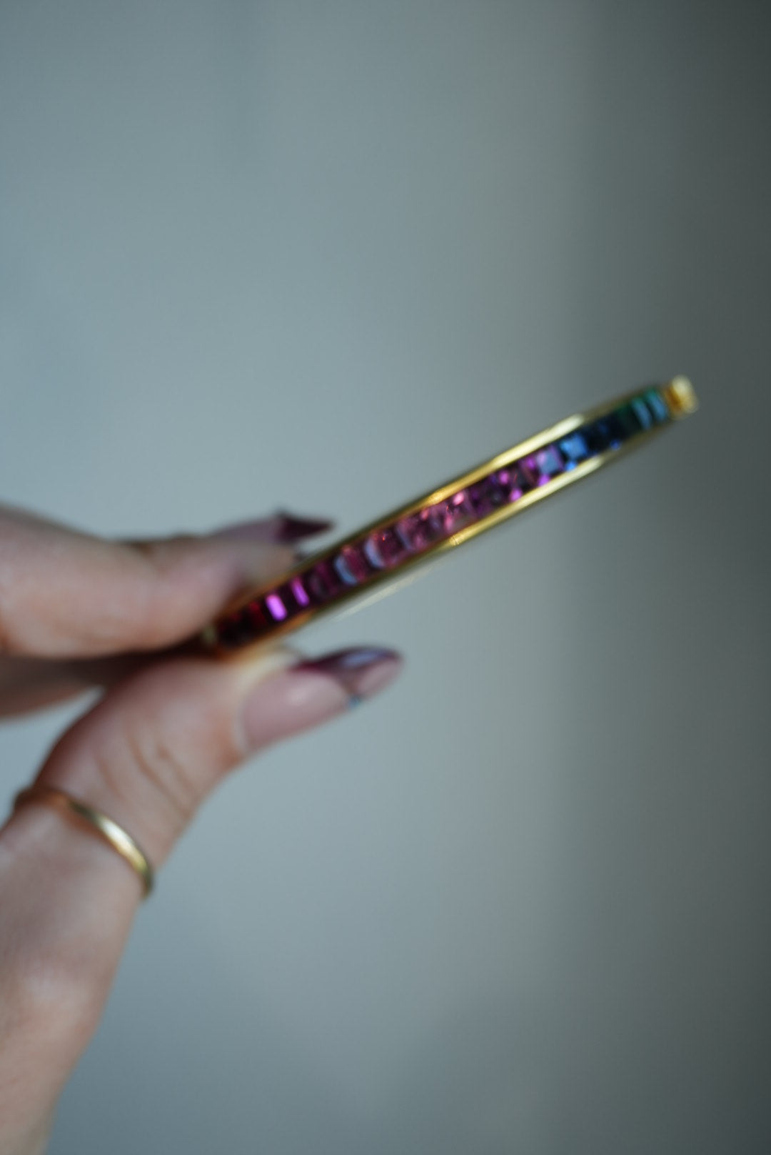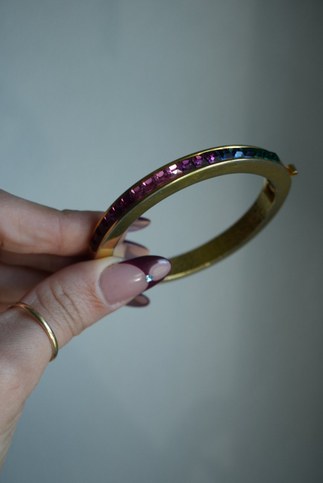 Gold plate high quality costume bangle inner diameter 2.25 inches with rhinestones