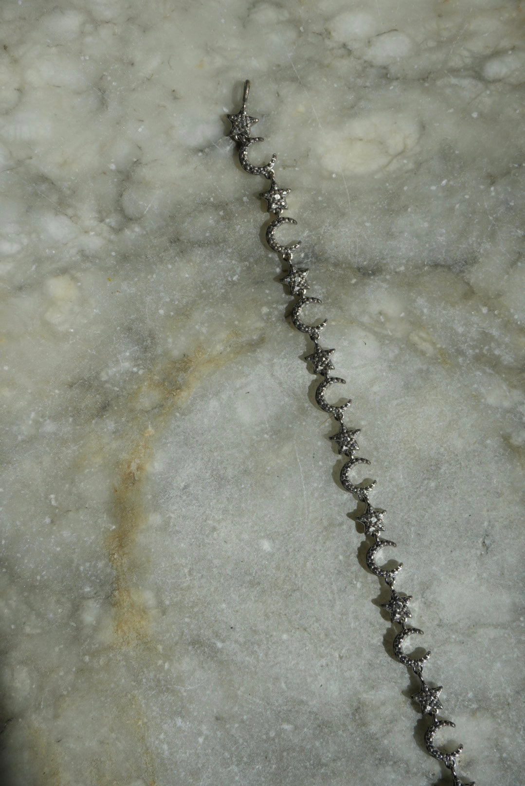 7.25 inch length sterling silver star and moon bracelet condition 6/10