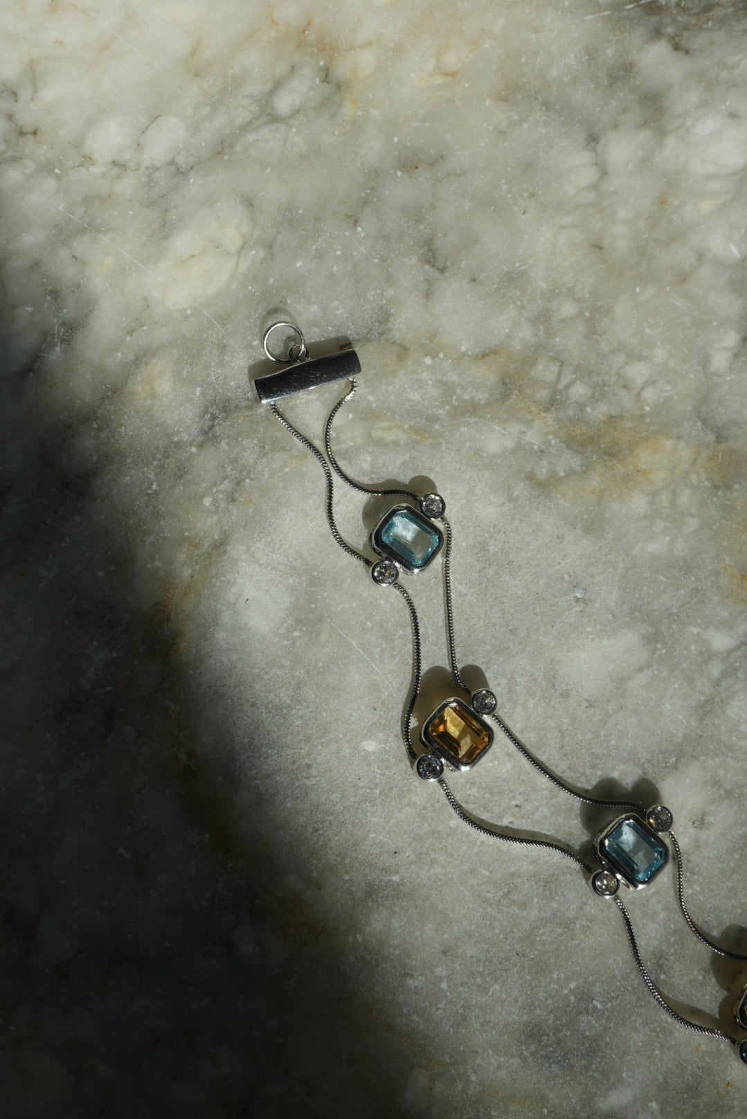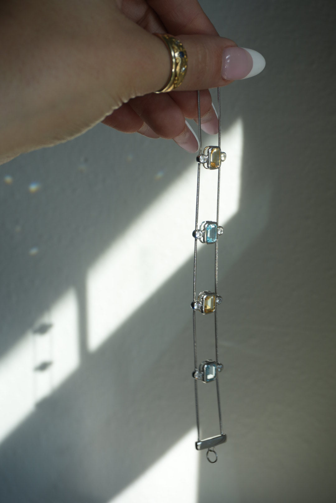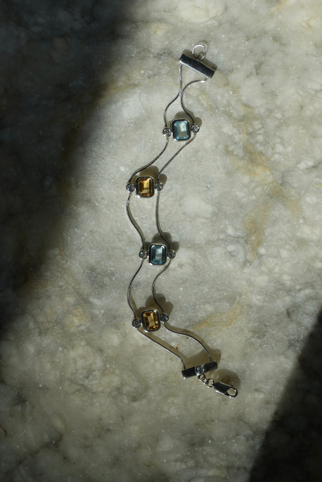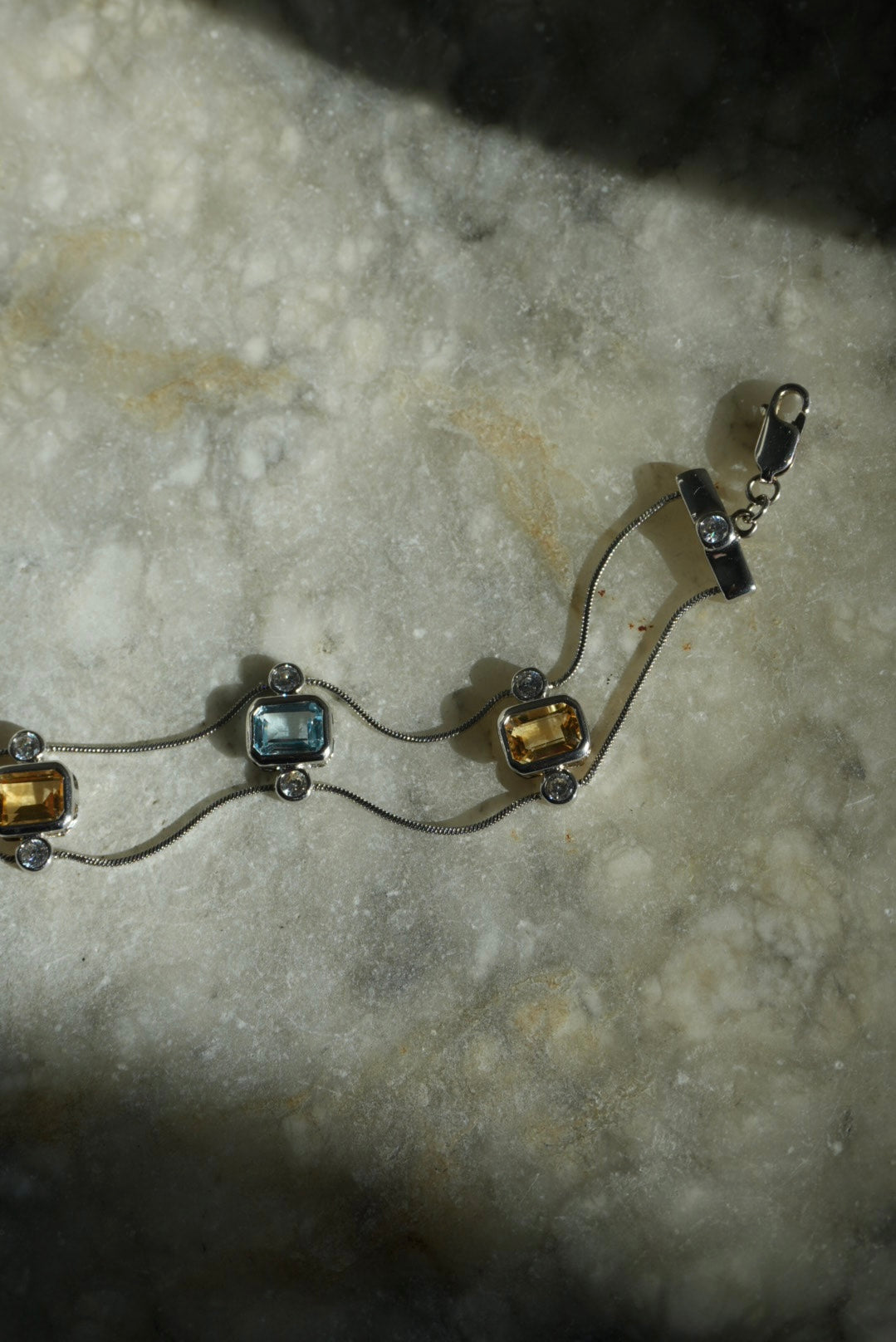 7 inch sterling silver bracelet with topaz & citrine & cz stones