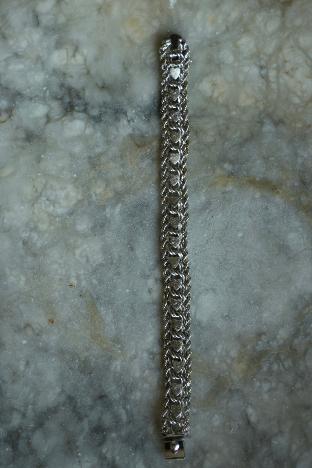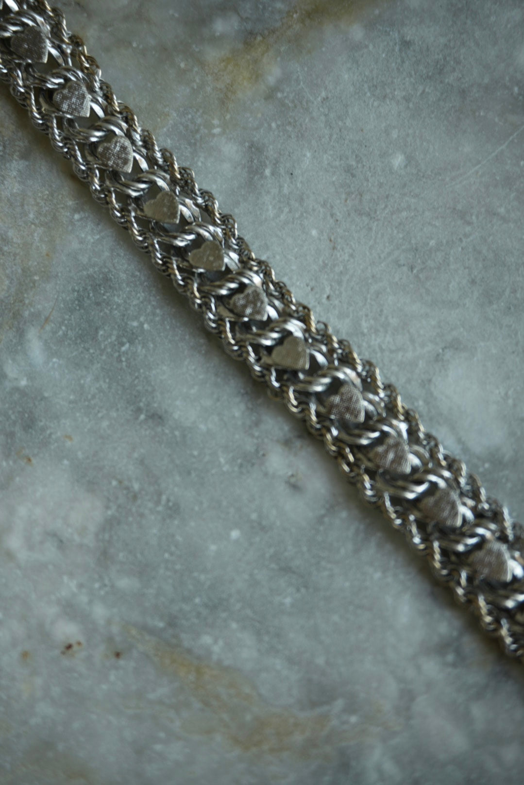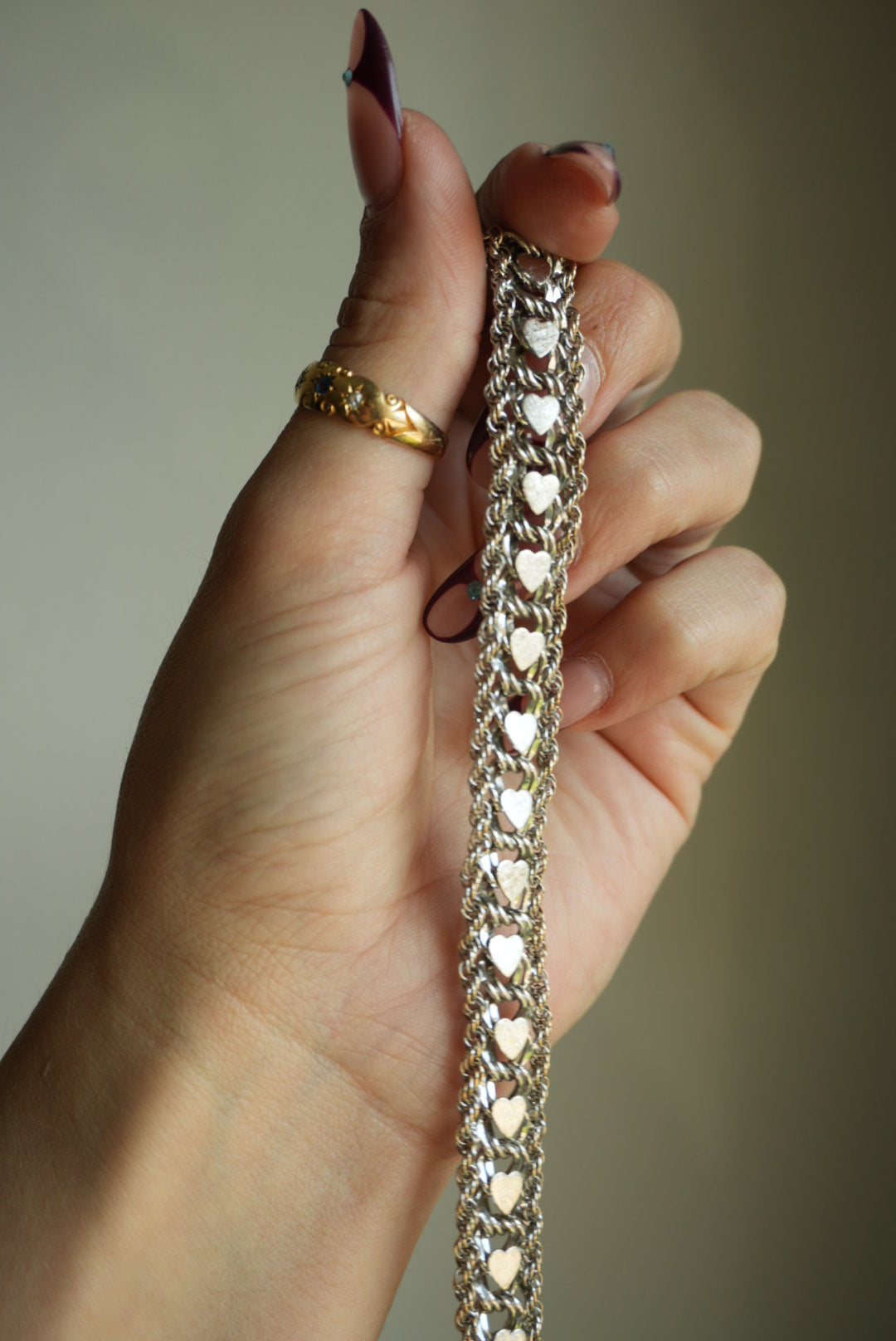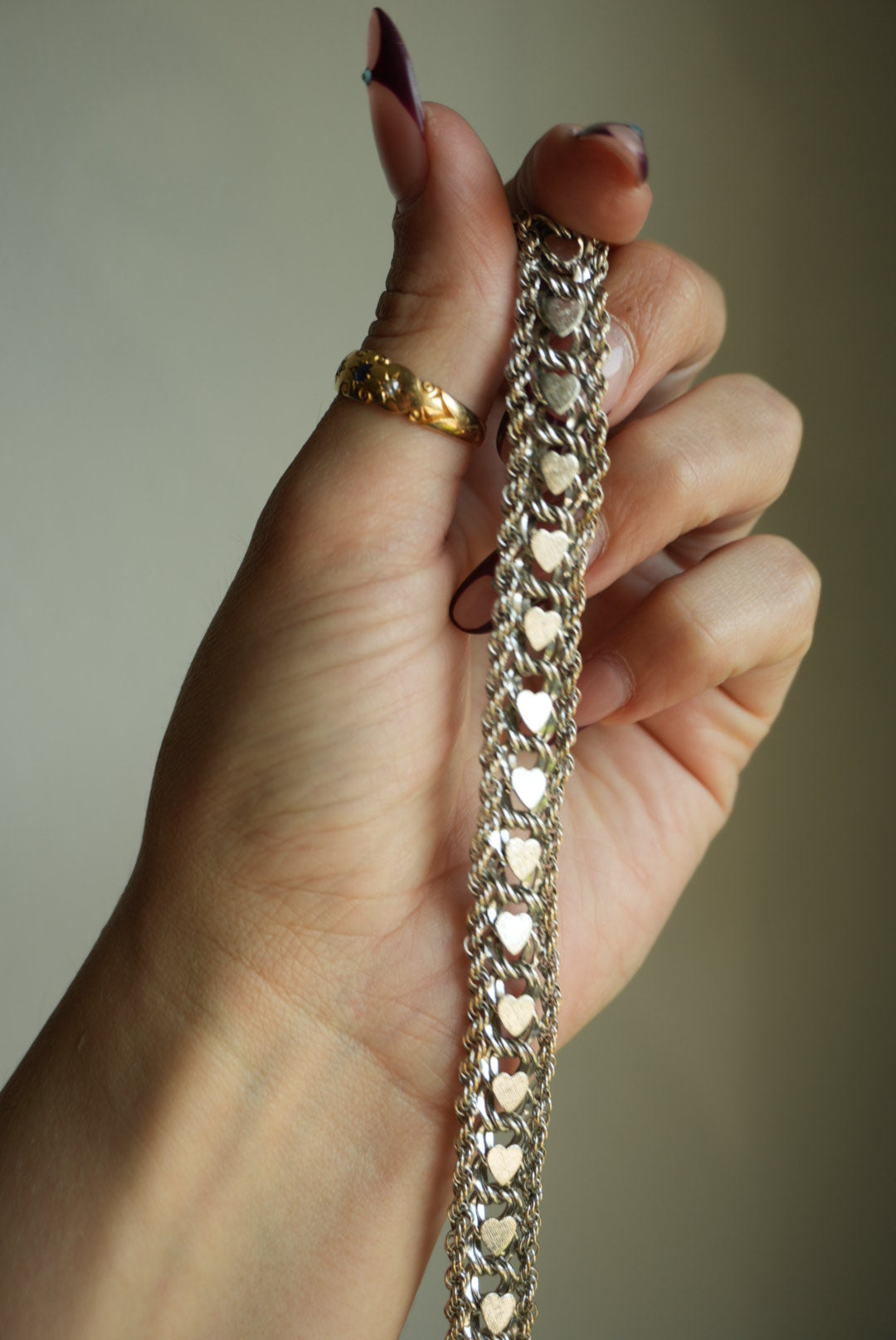 6.75 inch length sterling silver stacked chain bracelet with station hearts. Obsessed. Charm bracelet starter