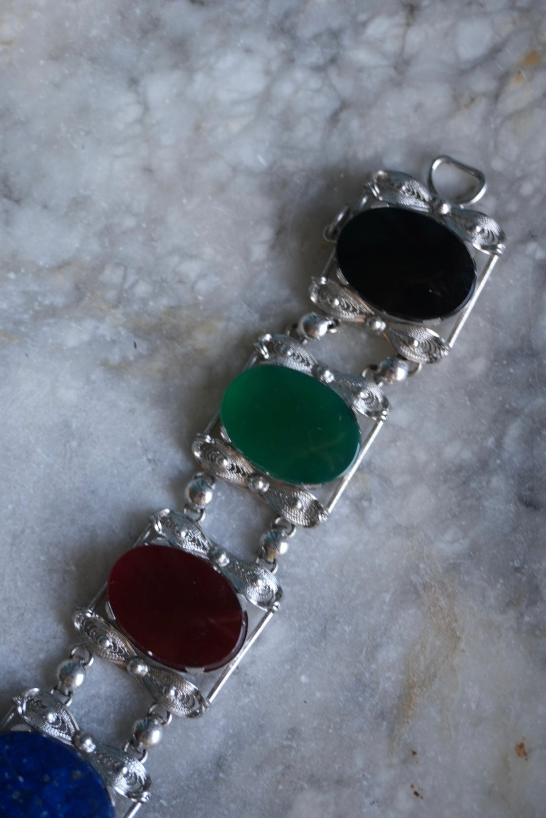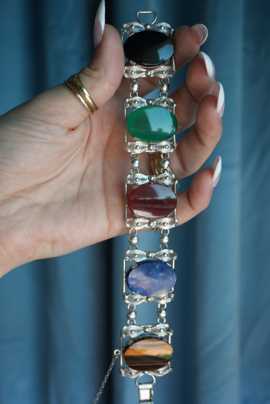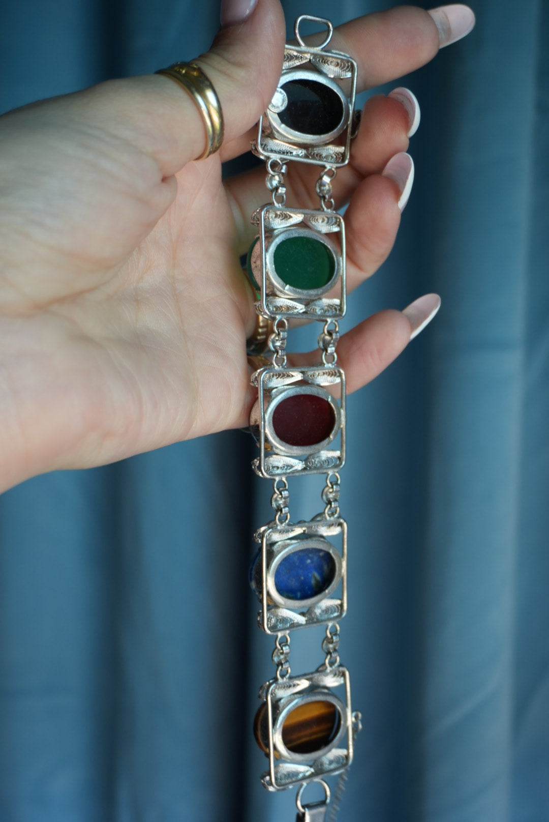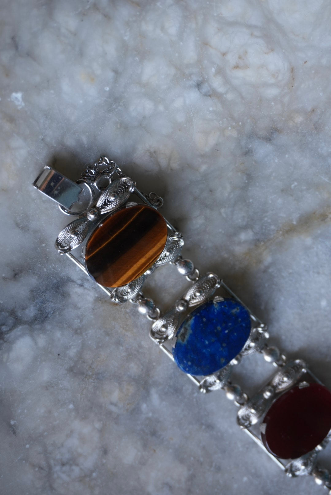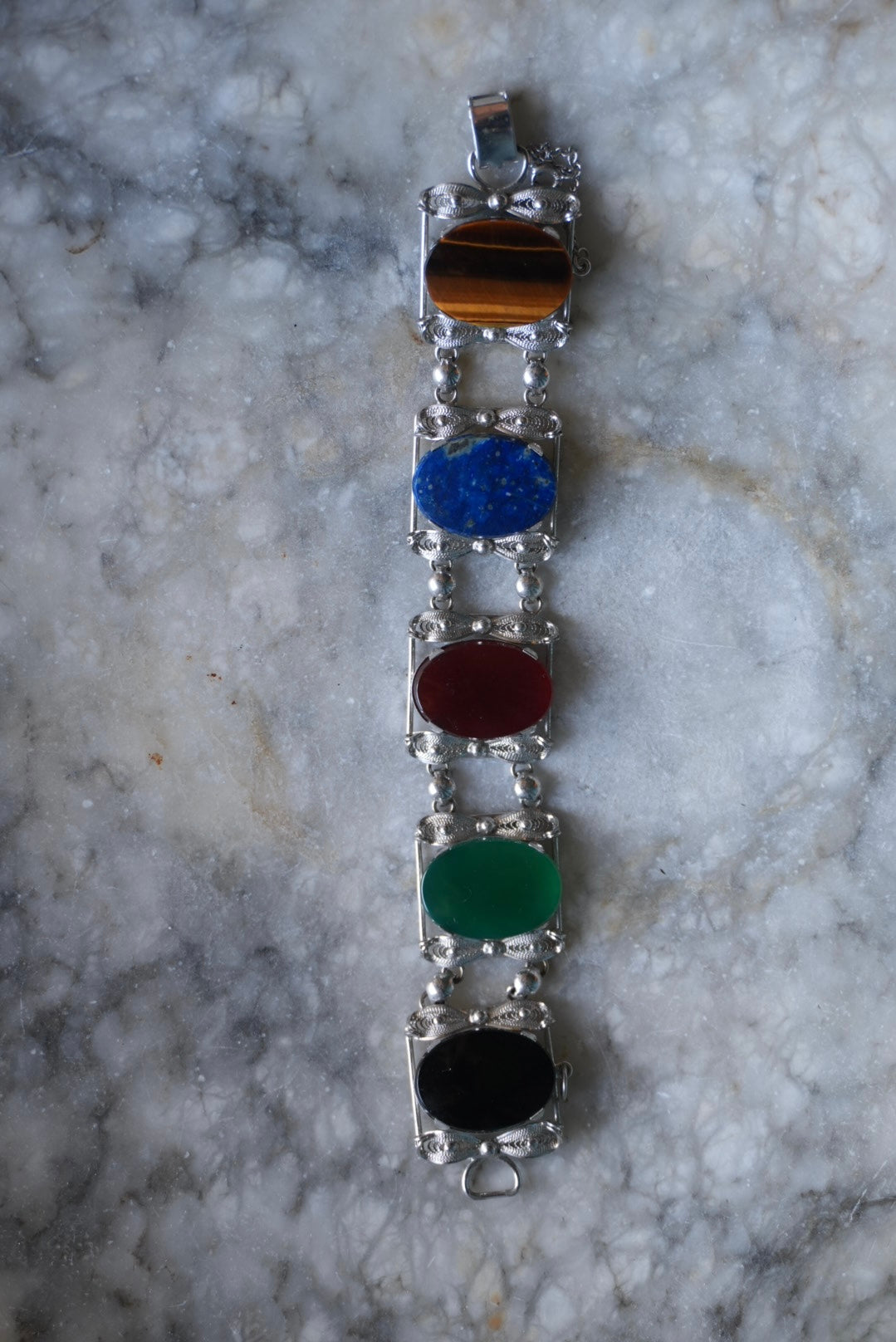 Sorrento made sterling silver 7.5 inch length and 1” wide with large natural gemstones