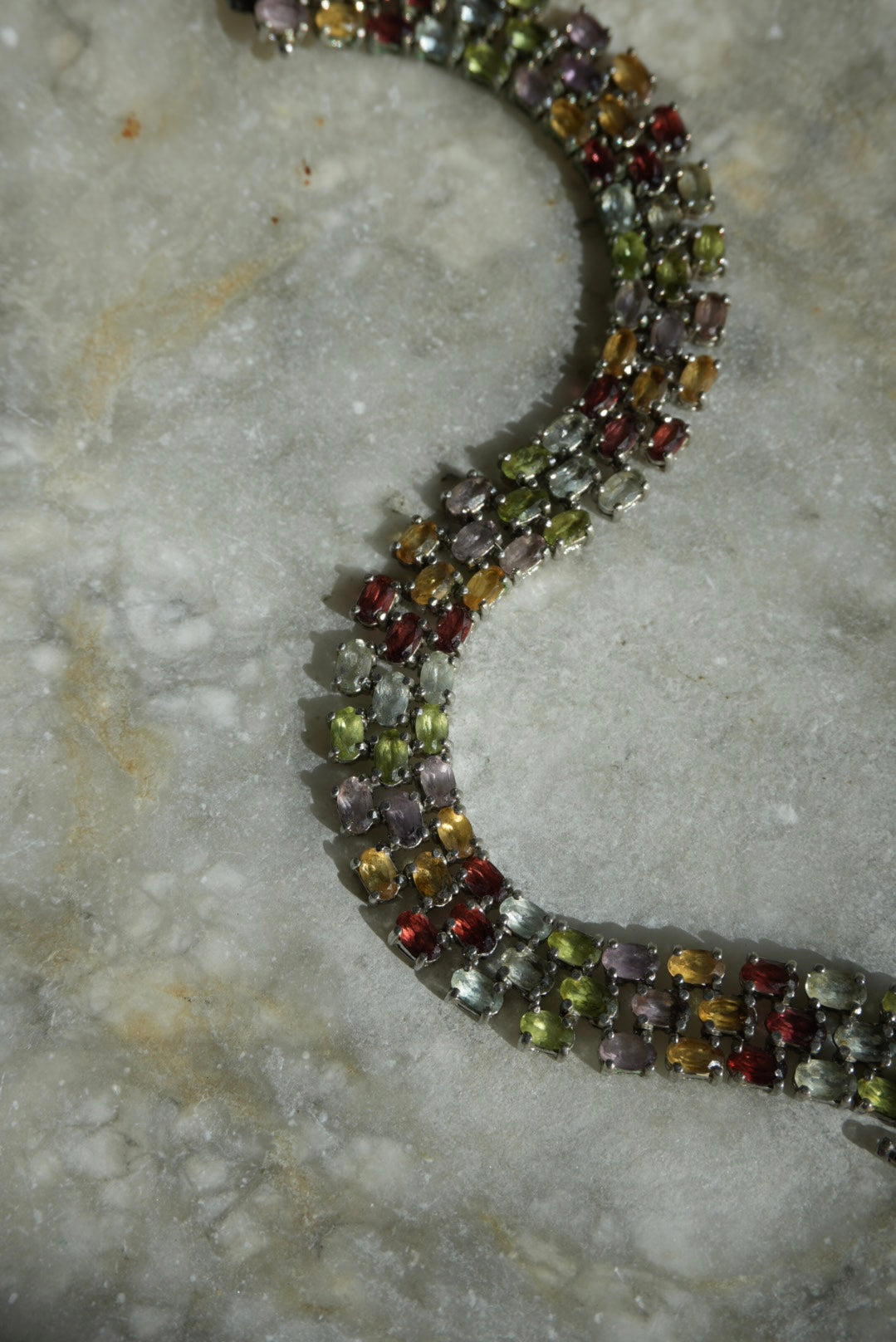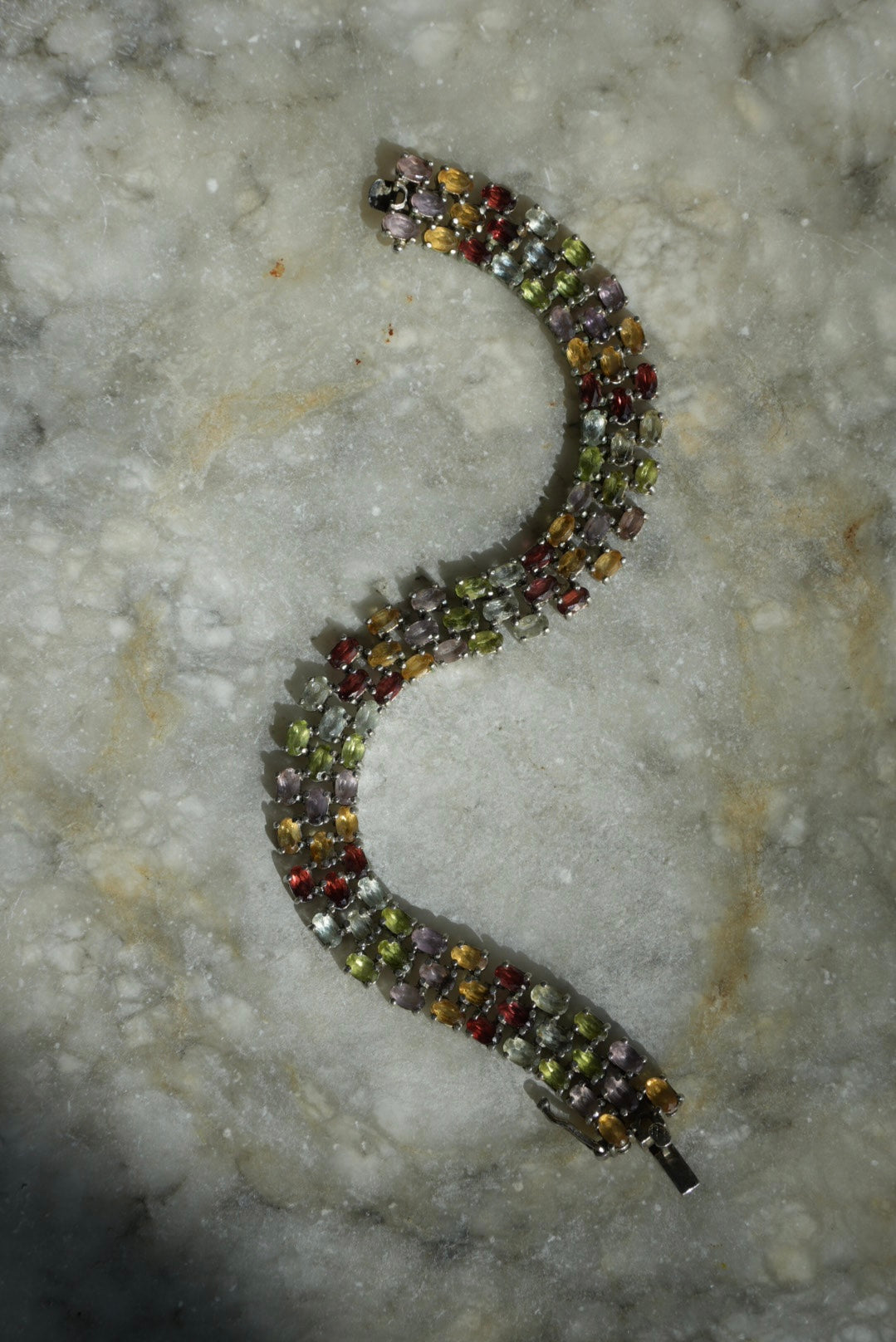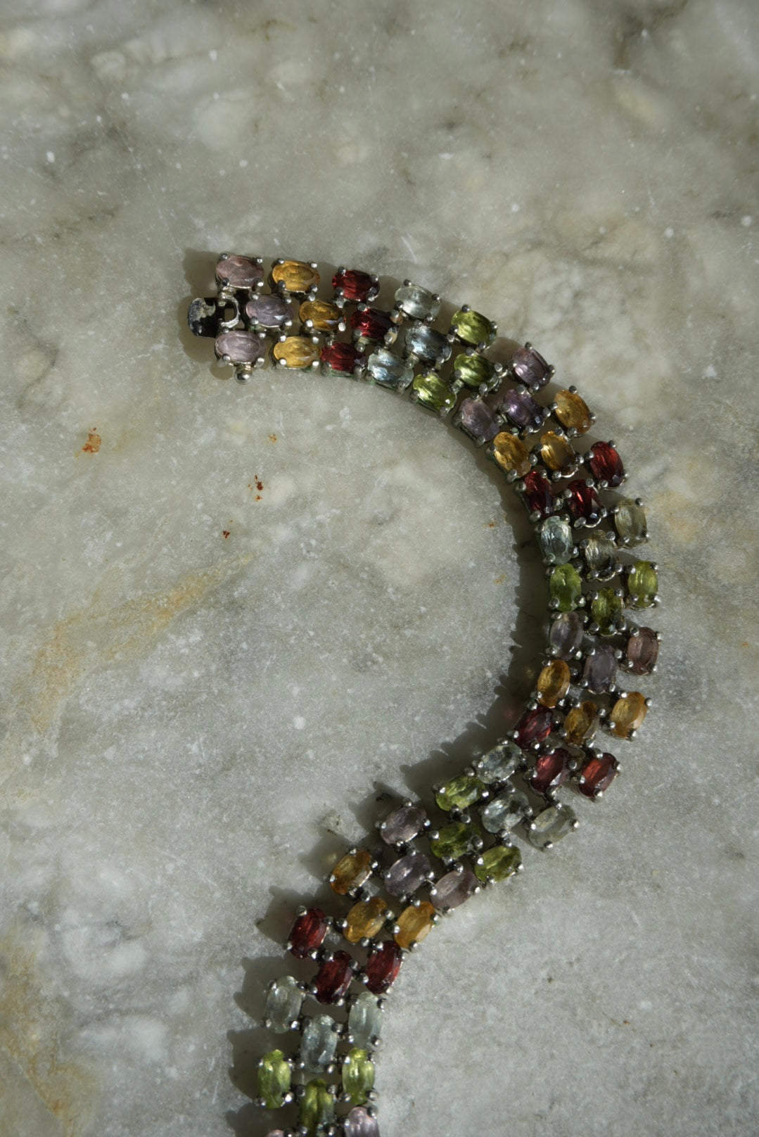 7.5 inches, 0.5 inch wide sterling silver bracelet with amethyst citrine garnet and peridot topaz