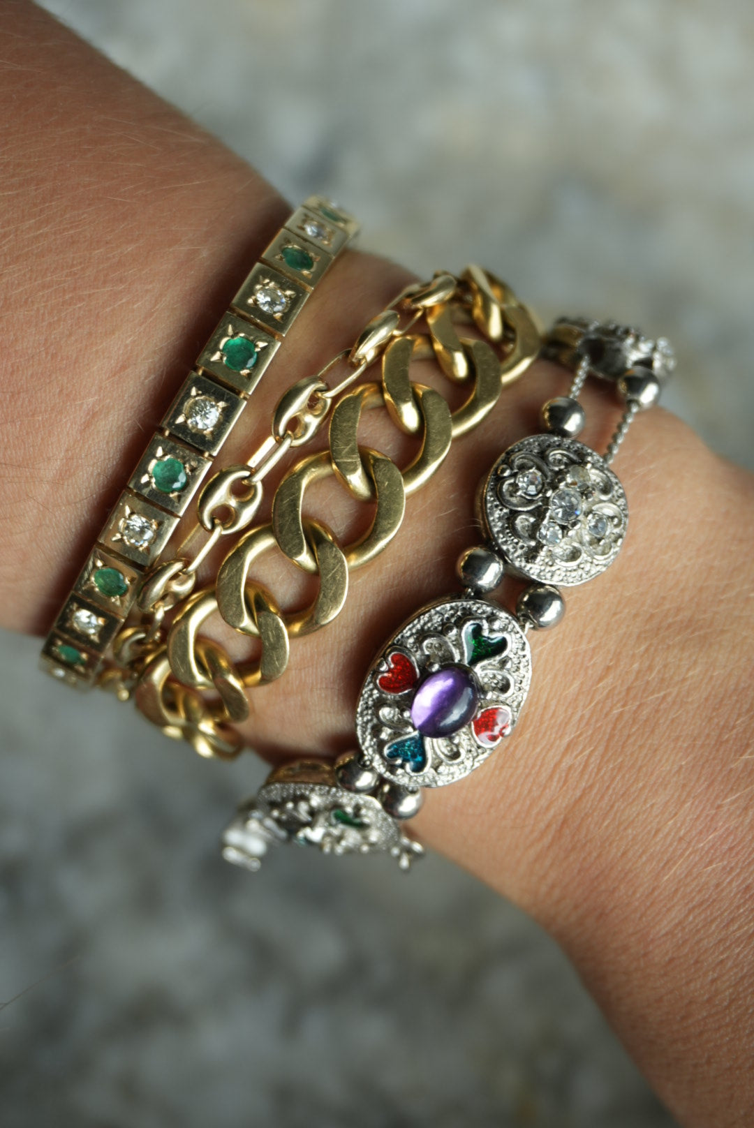 7.5 inch silver tone costume slider bracelet with a safety chain