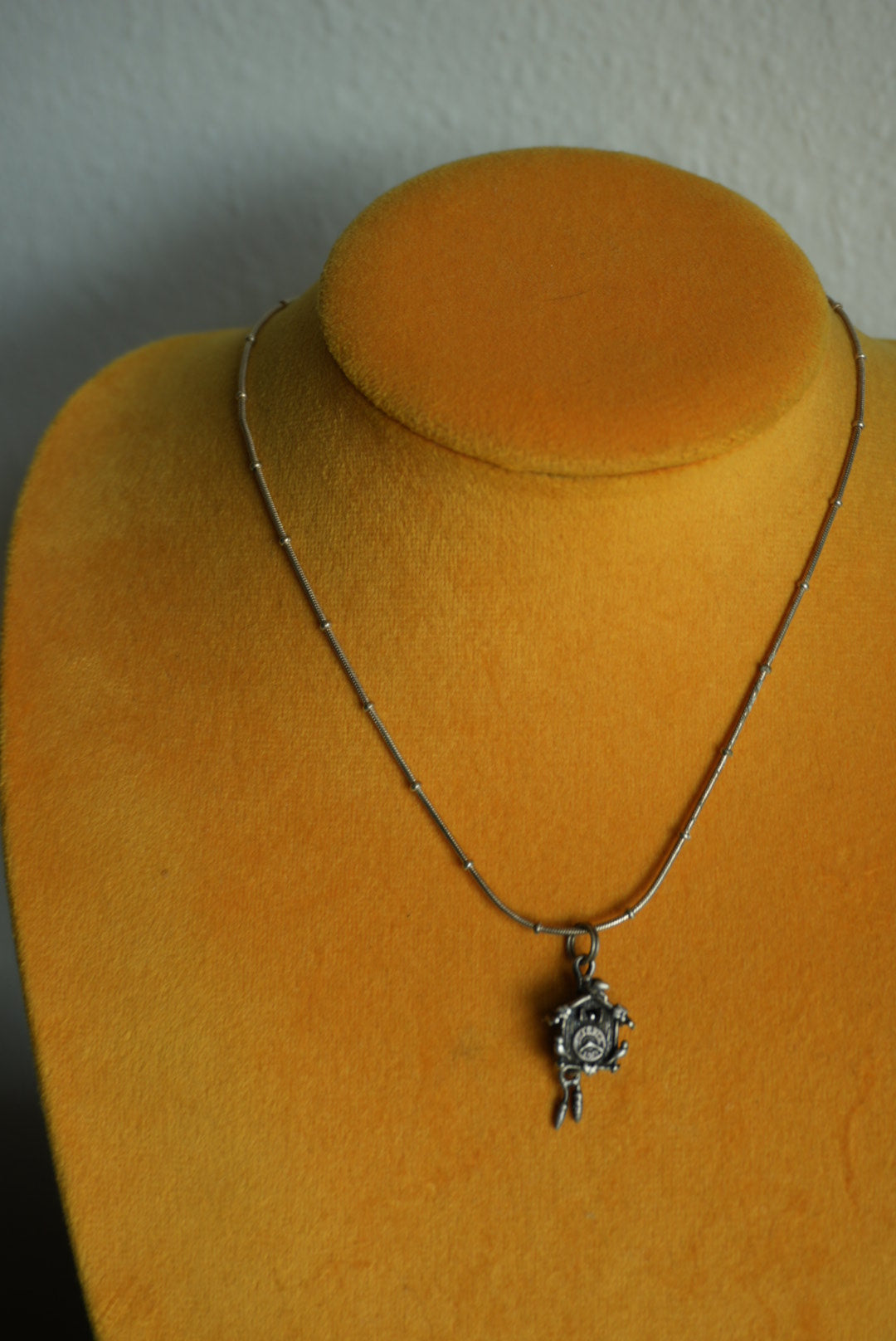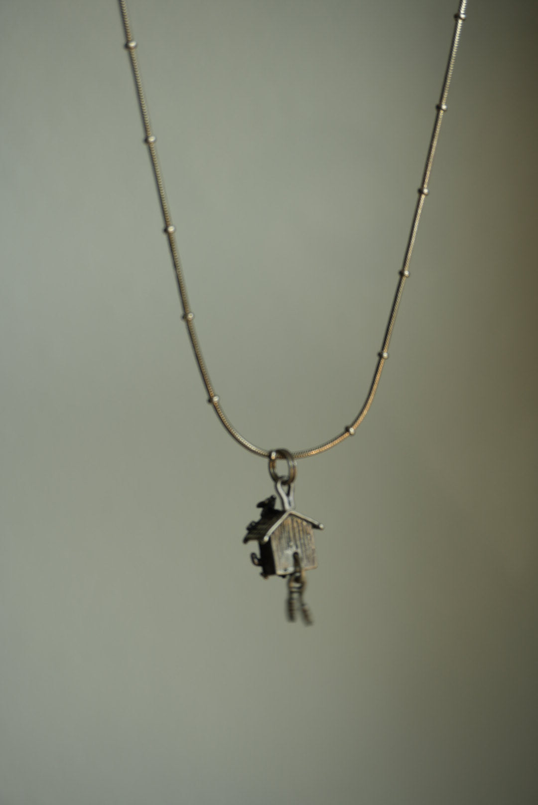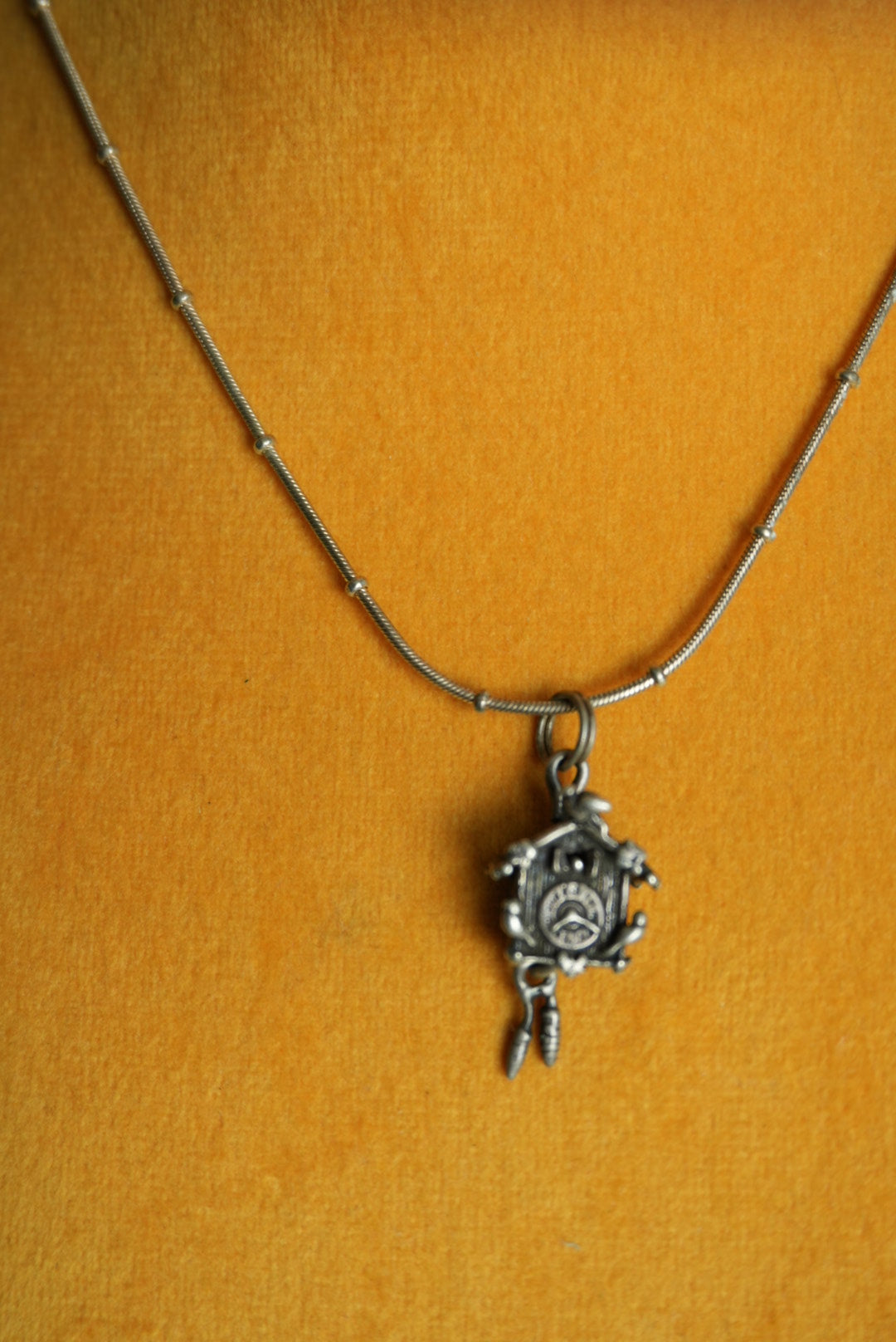 14.5 inch length sterling silver station necklace with cuckoo clock pendant 1” tall