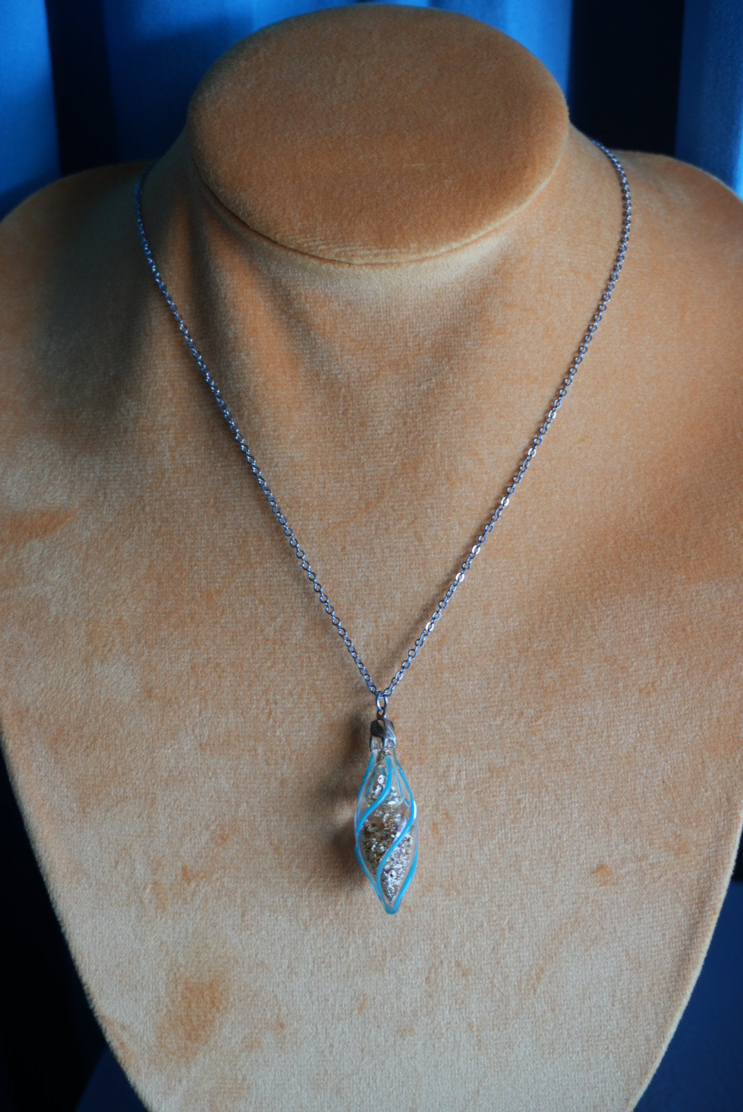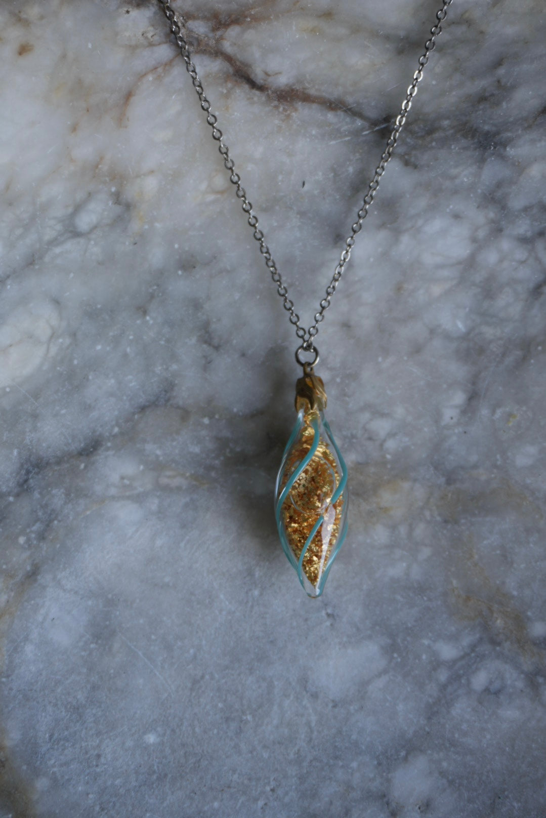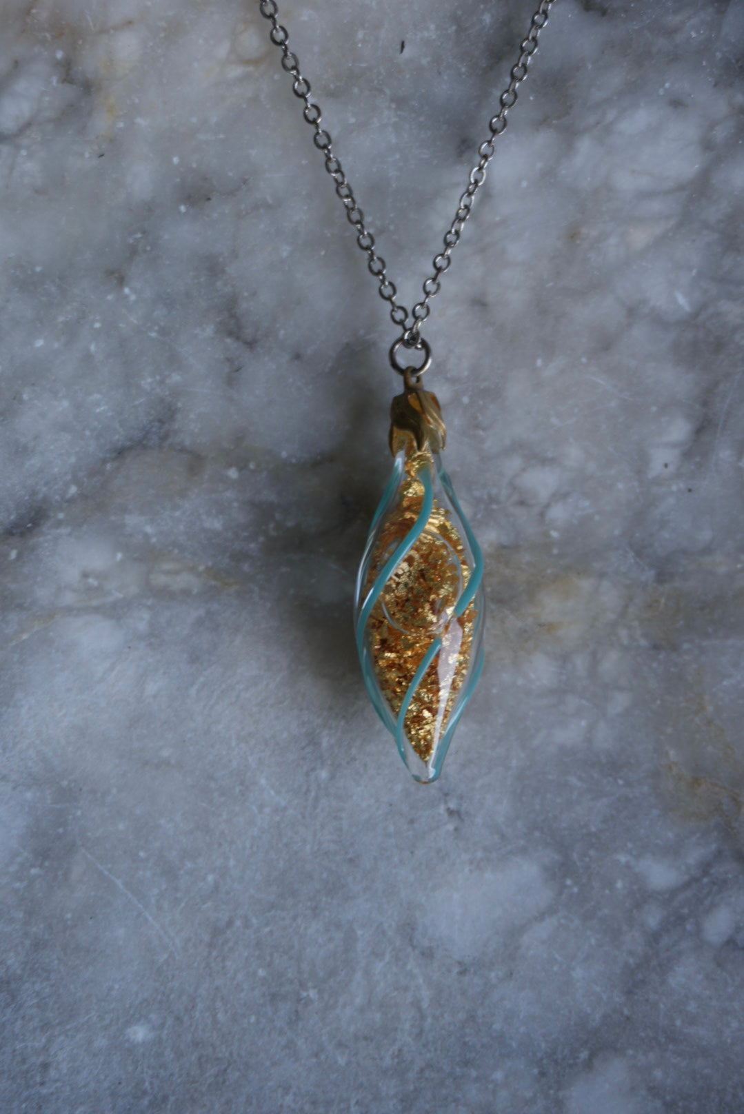 18” length costume chain with gold flecks in oil and blown glass pendant (1.5” tall) condition 9/10 one chip in enamel