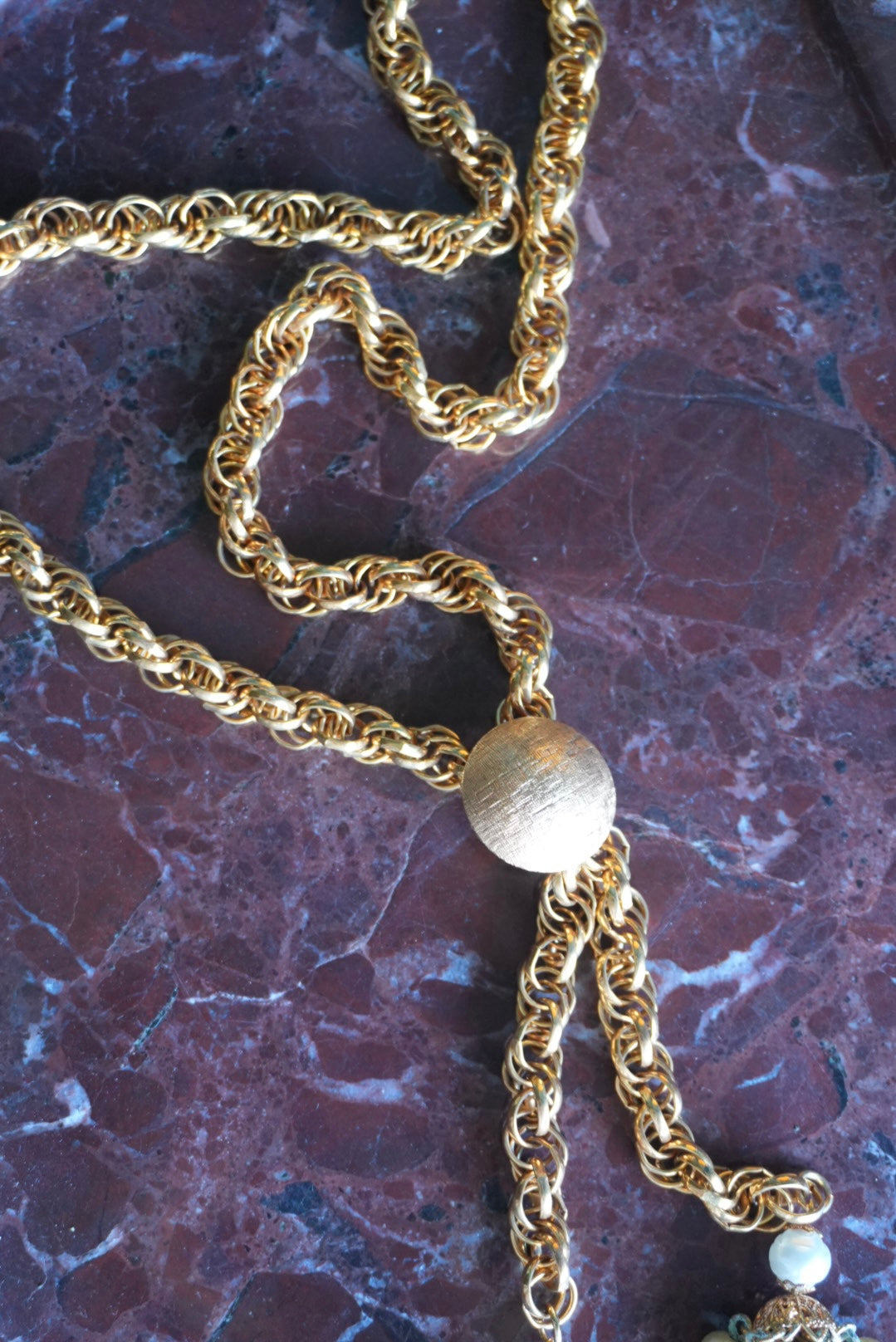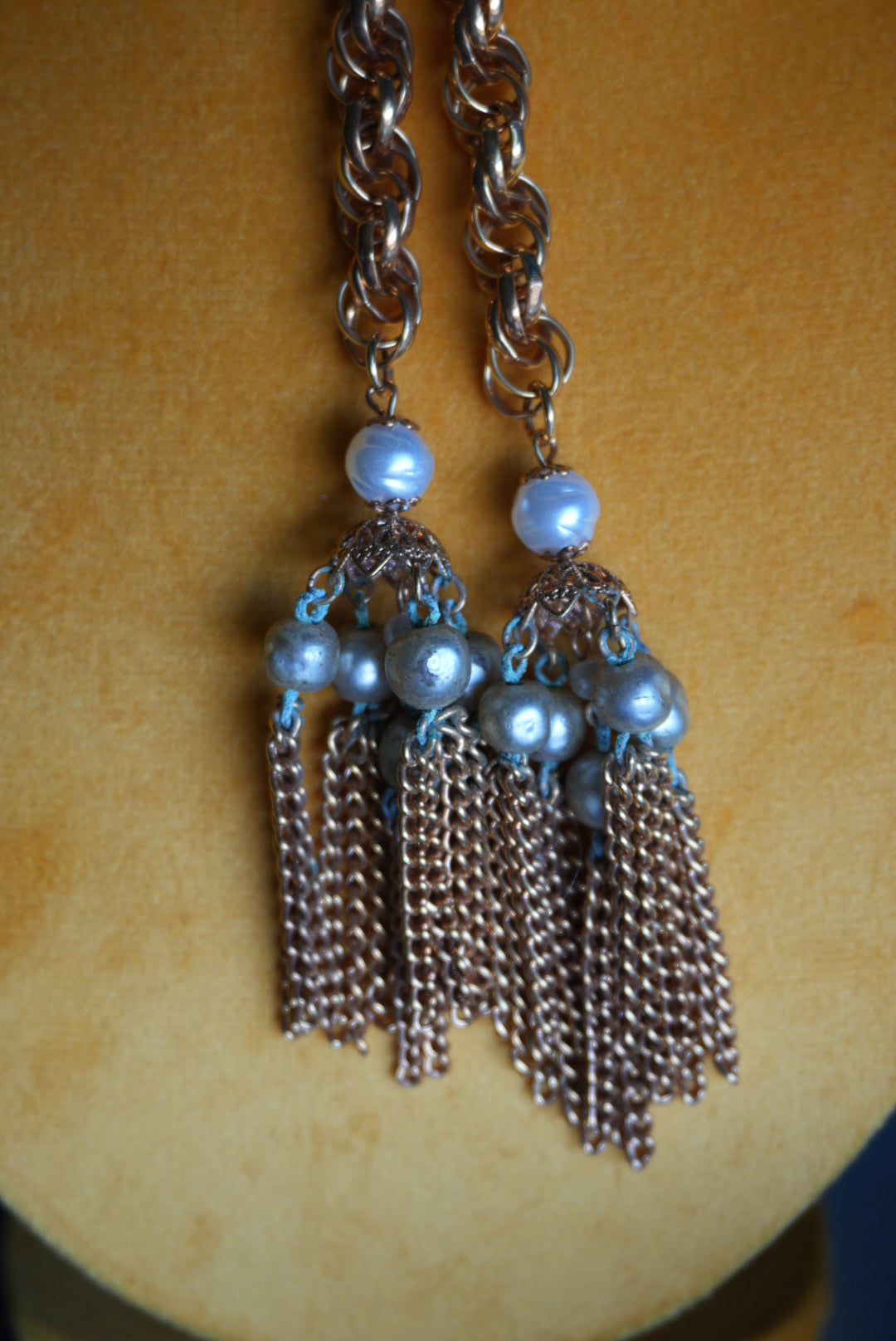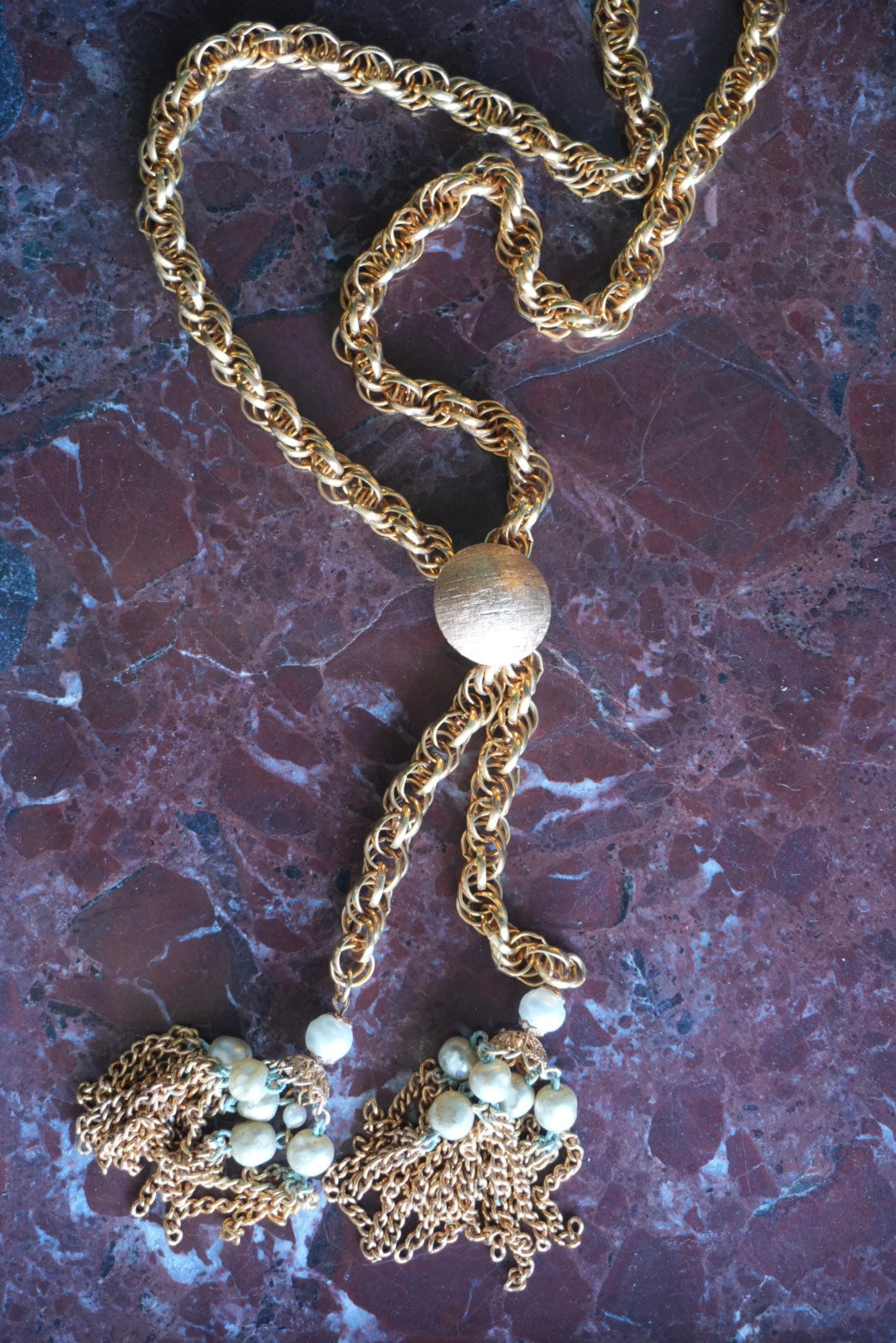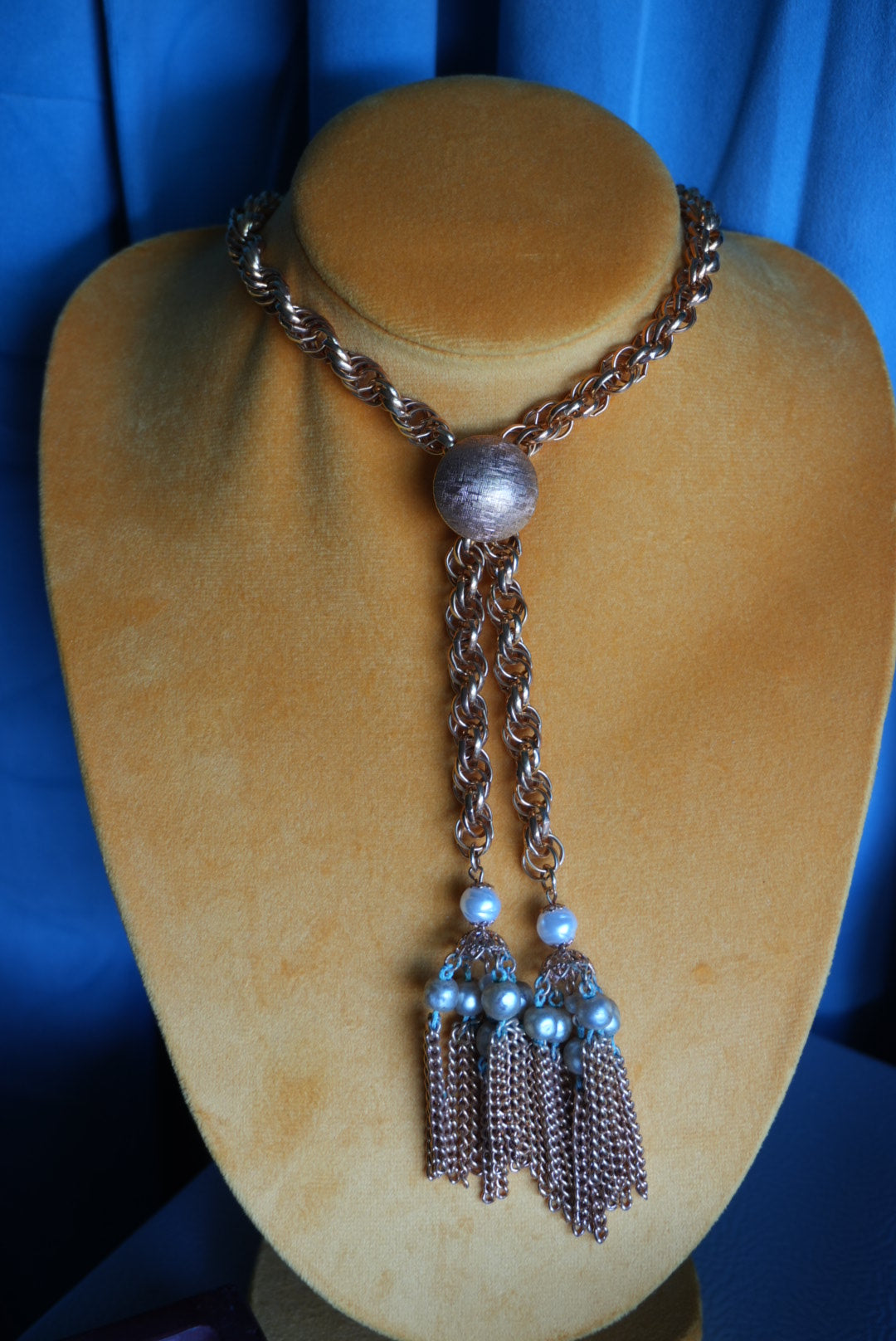 28” total length costume lariat with tassel and adjustable height button- priced accordingly, condition 7/10 some visible aging around beads