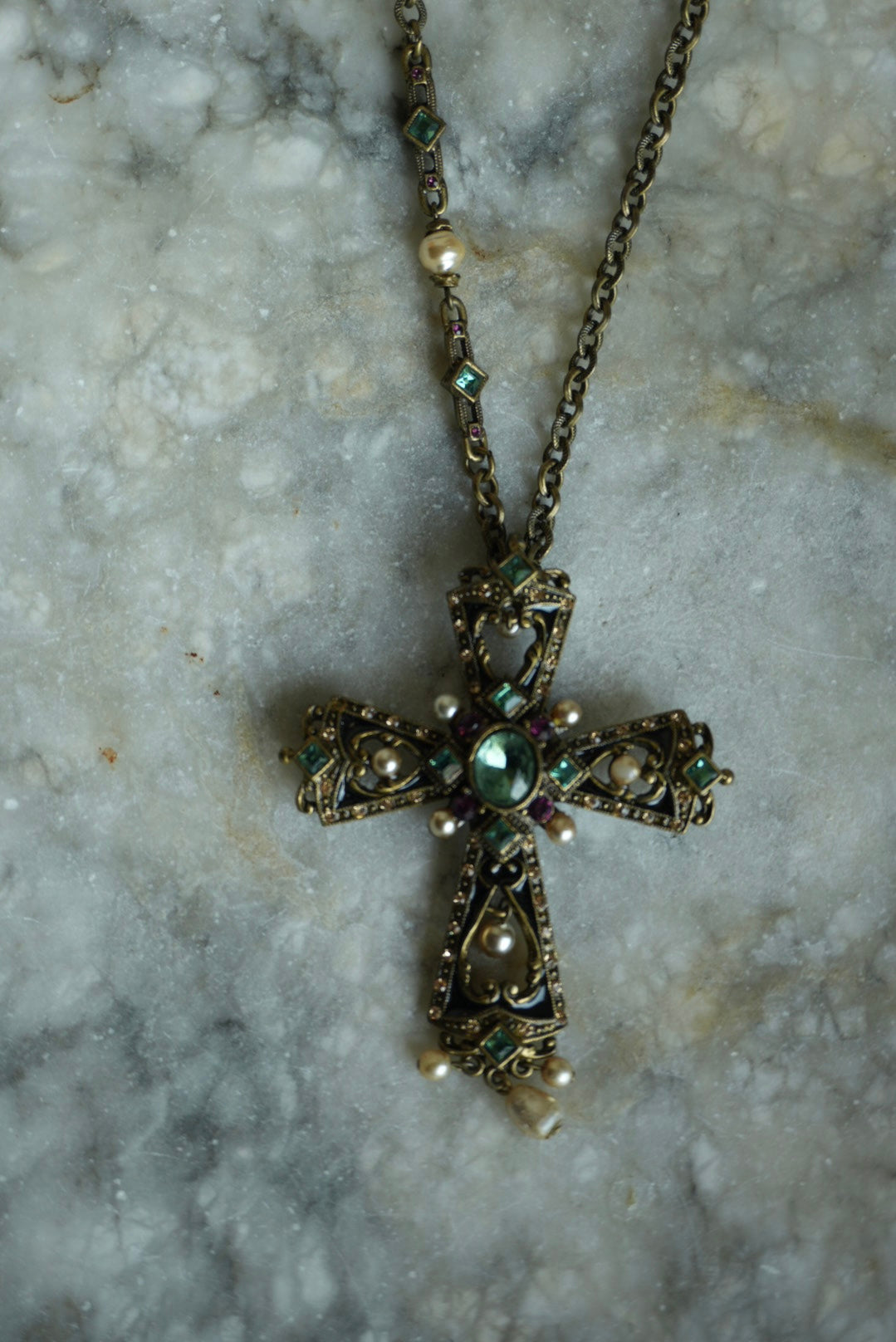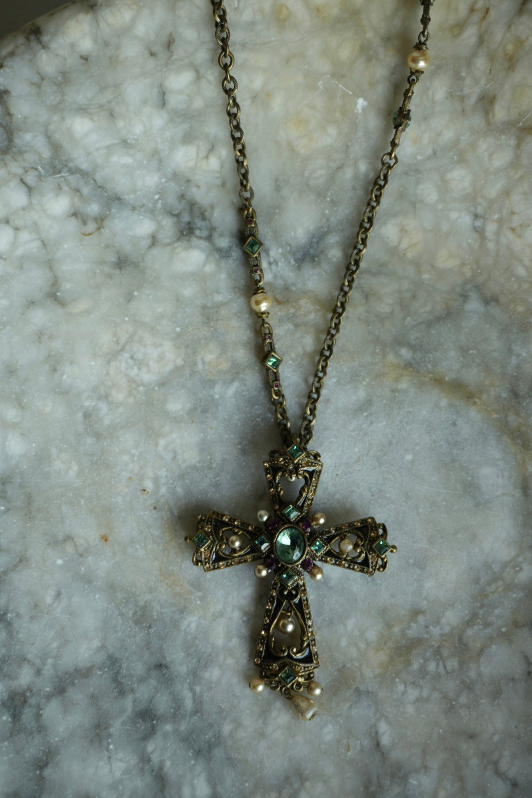 26+ inch length costume cross vintage piece with 3” length rhinestone by Sweet Romance USA