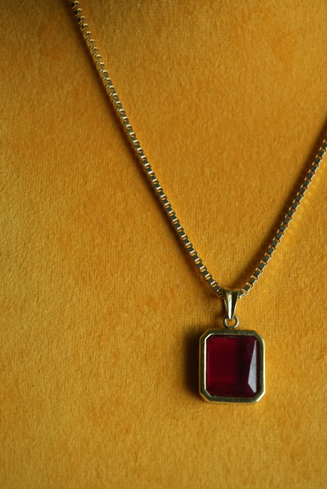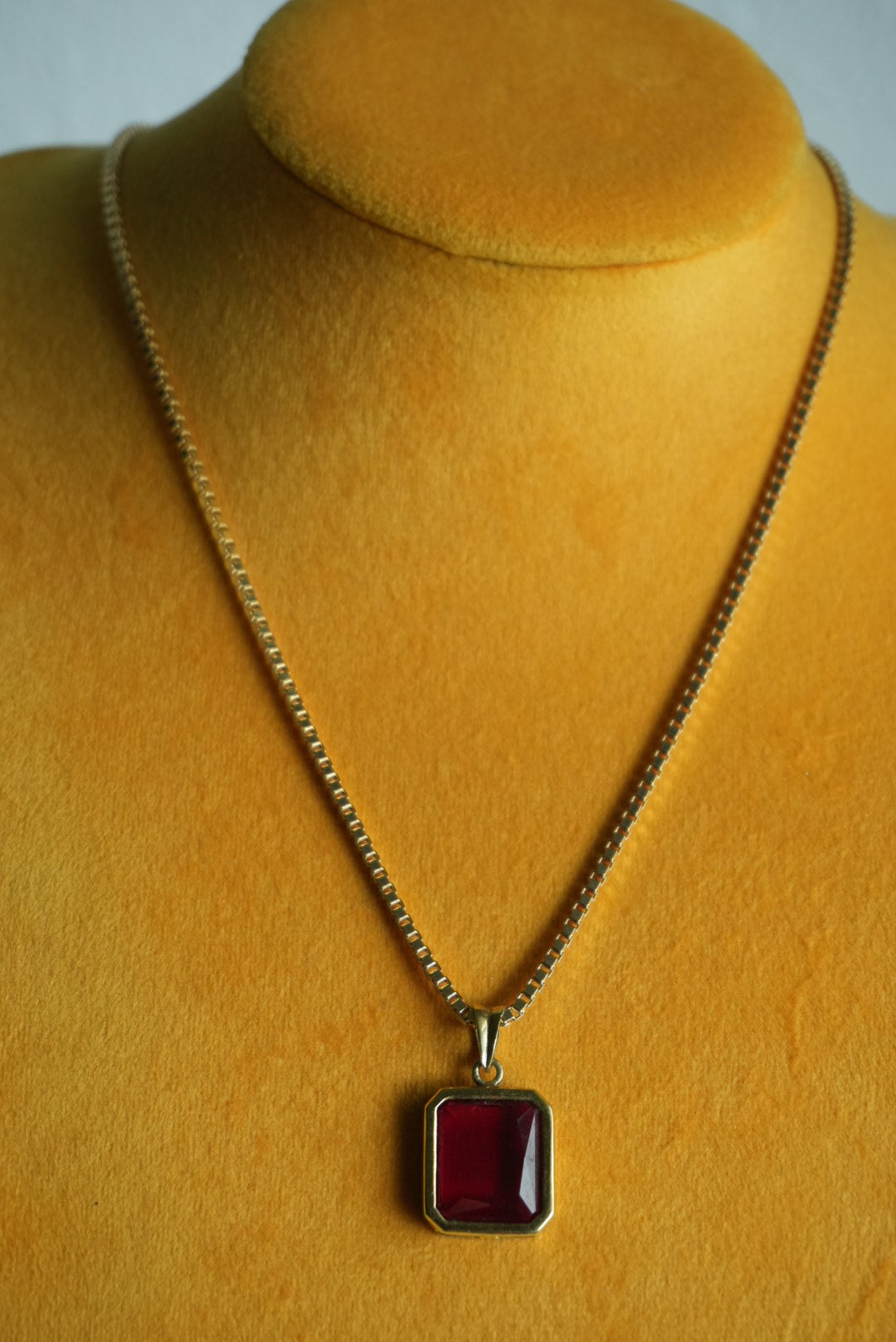 18” length gold fill box chain with large glass pendant