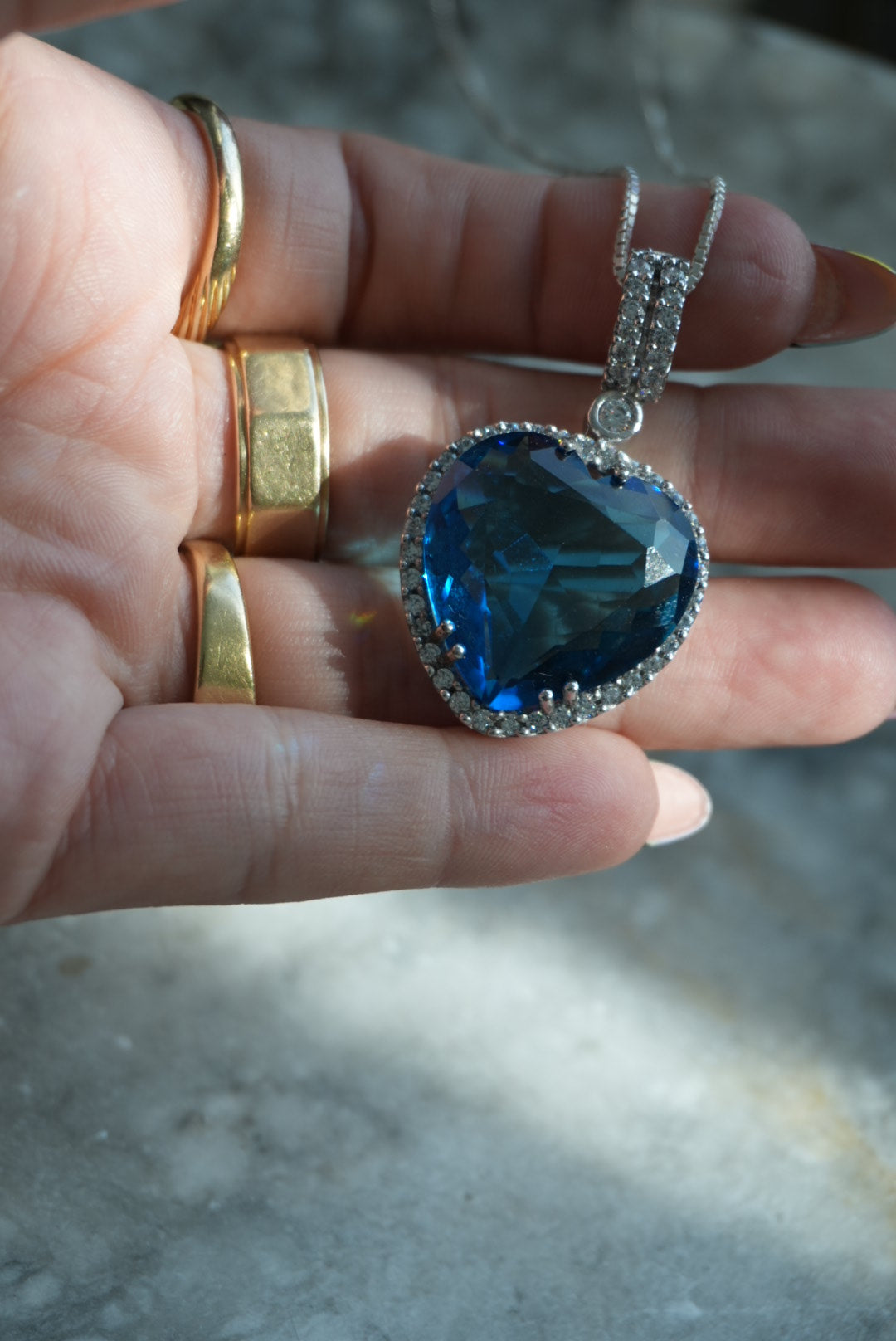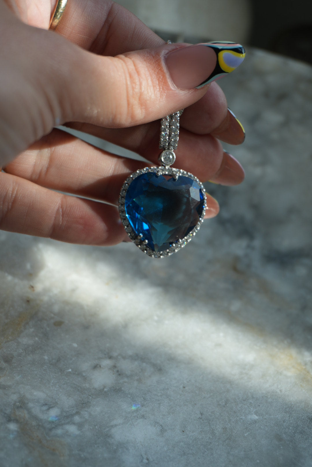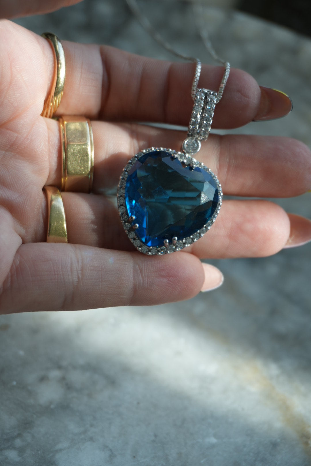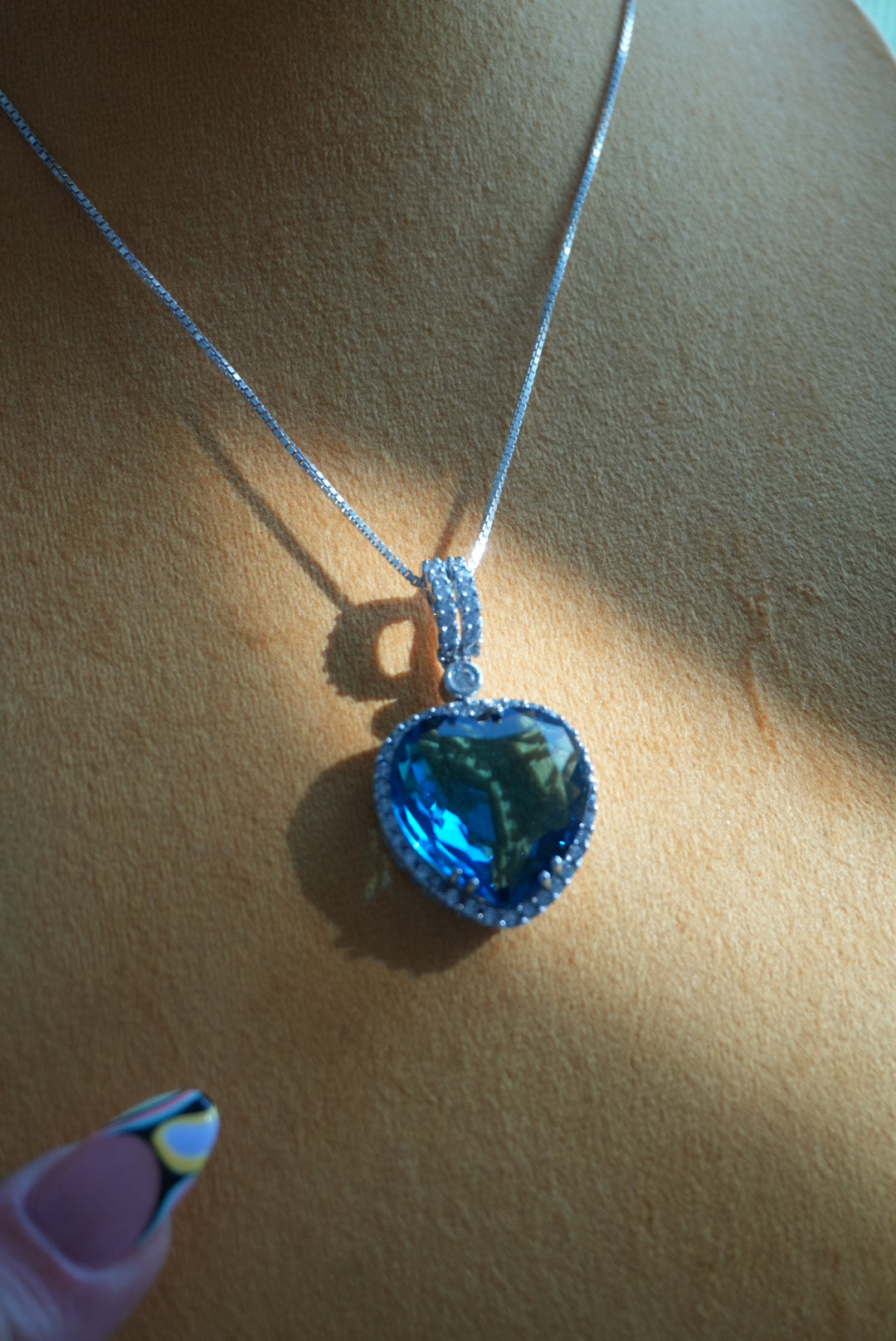17 inch length sterling silver chain with large glass heart 1 inch width