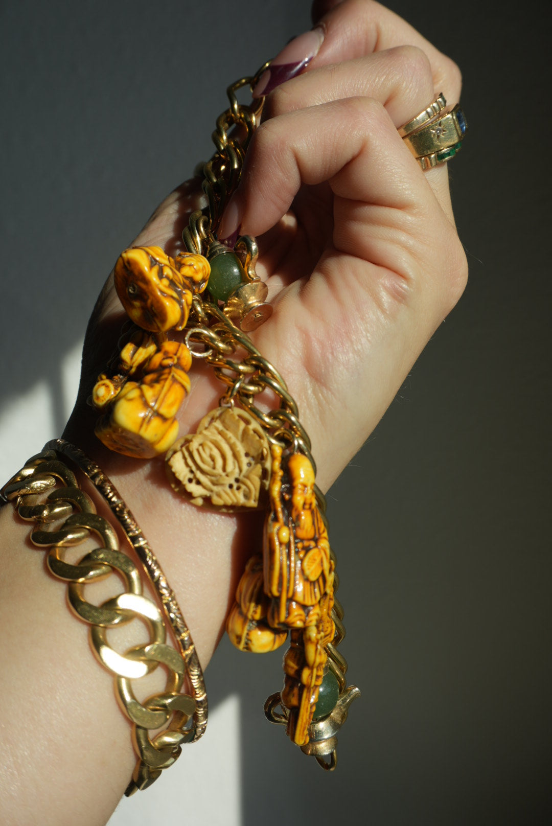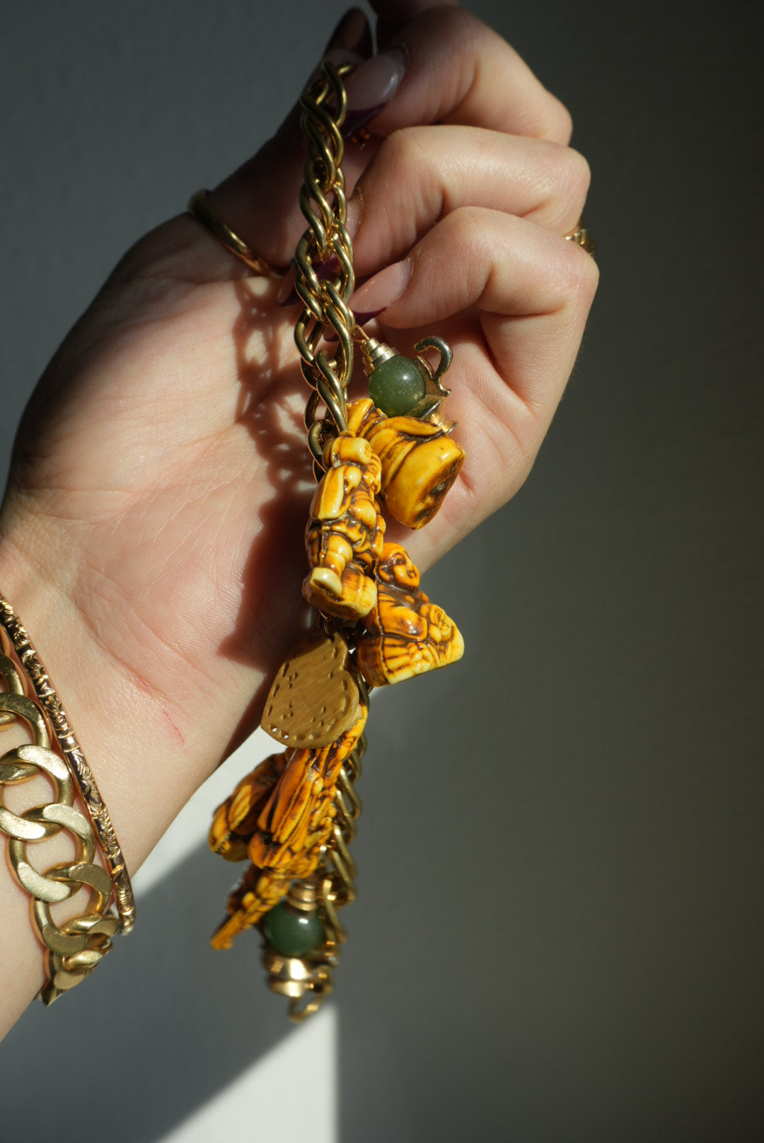 NUMBER SEVEN In Japanese folklore, there are seven treasures and seven deities of good luck With real jade bead teapot charms COSTUME piece