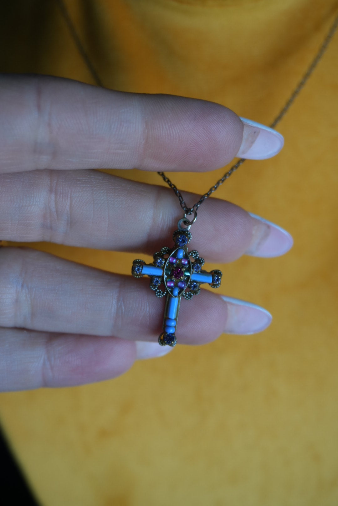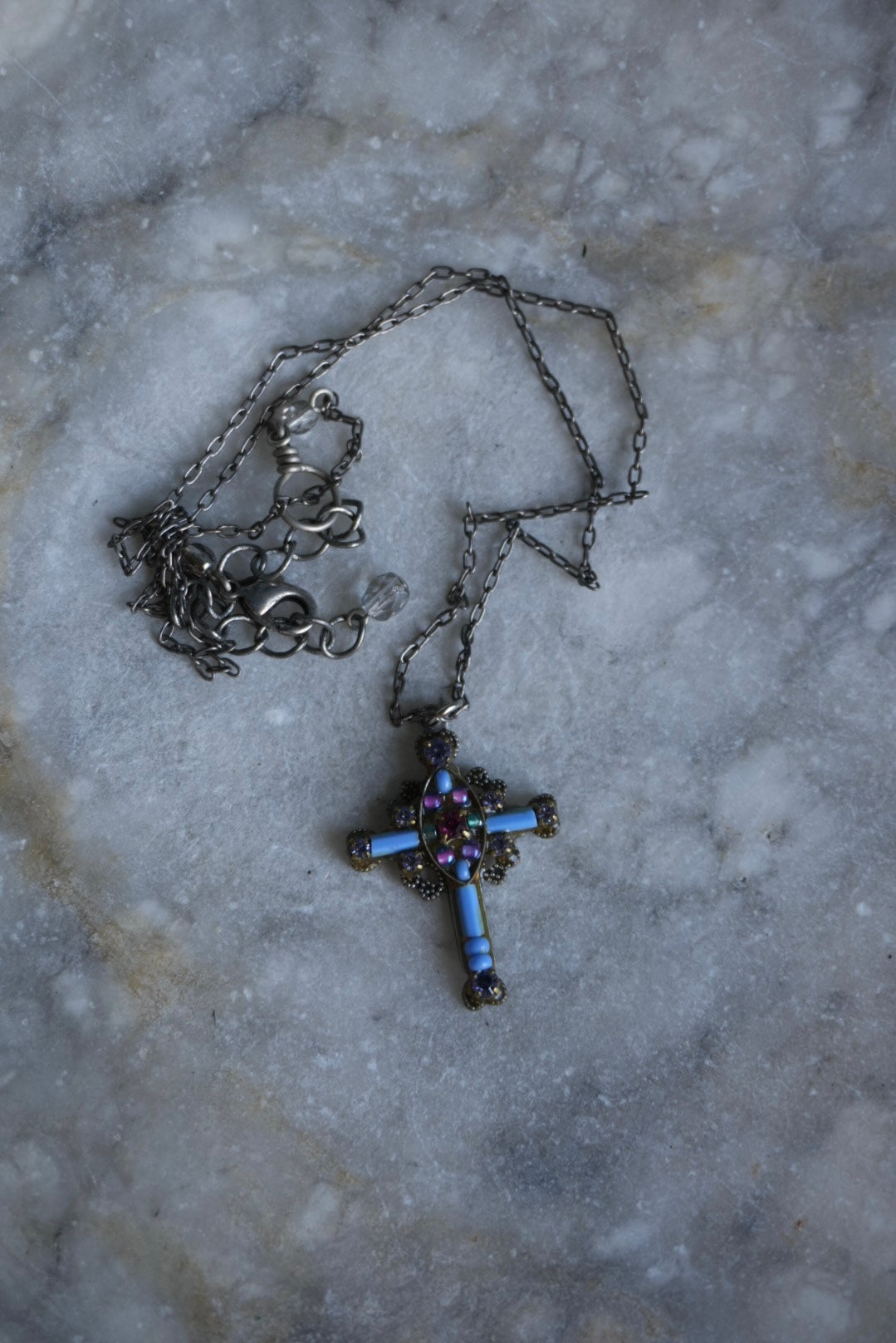 16-18 inch length costume necklace with darling cross with beads and rhinestones