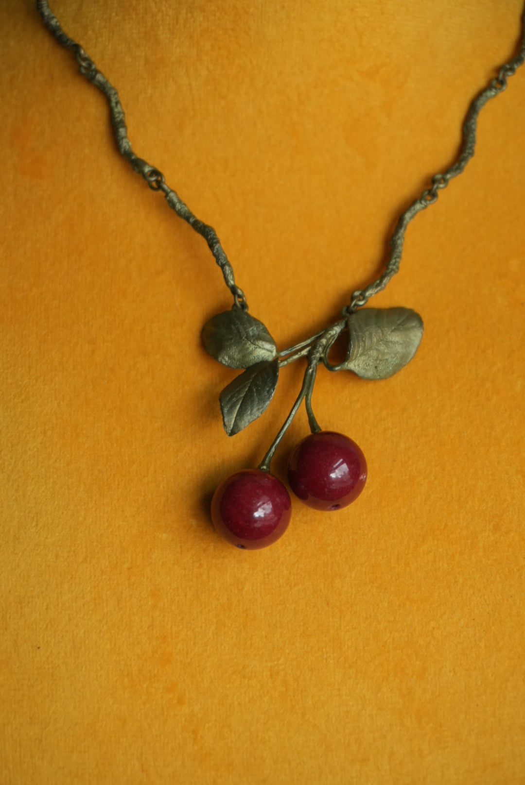 17-18” length antique costume with darling cherry pendant