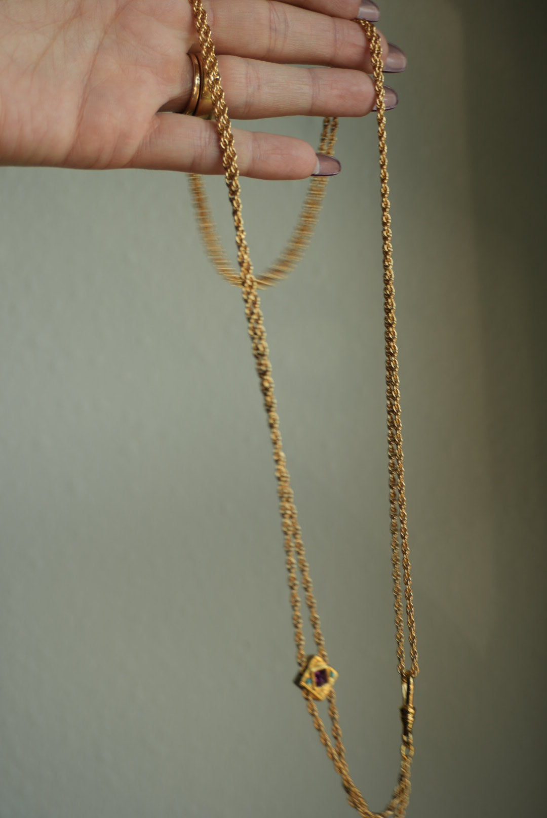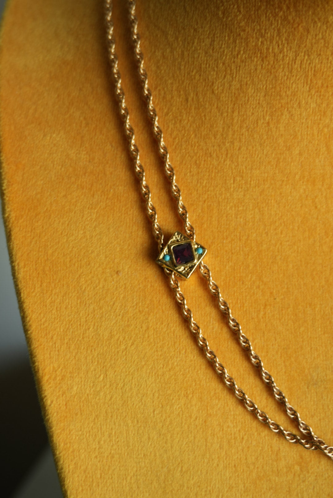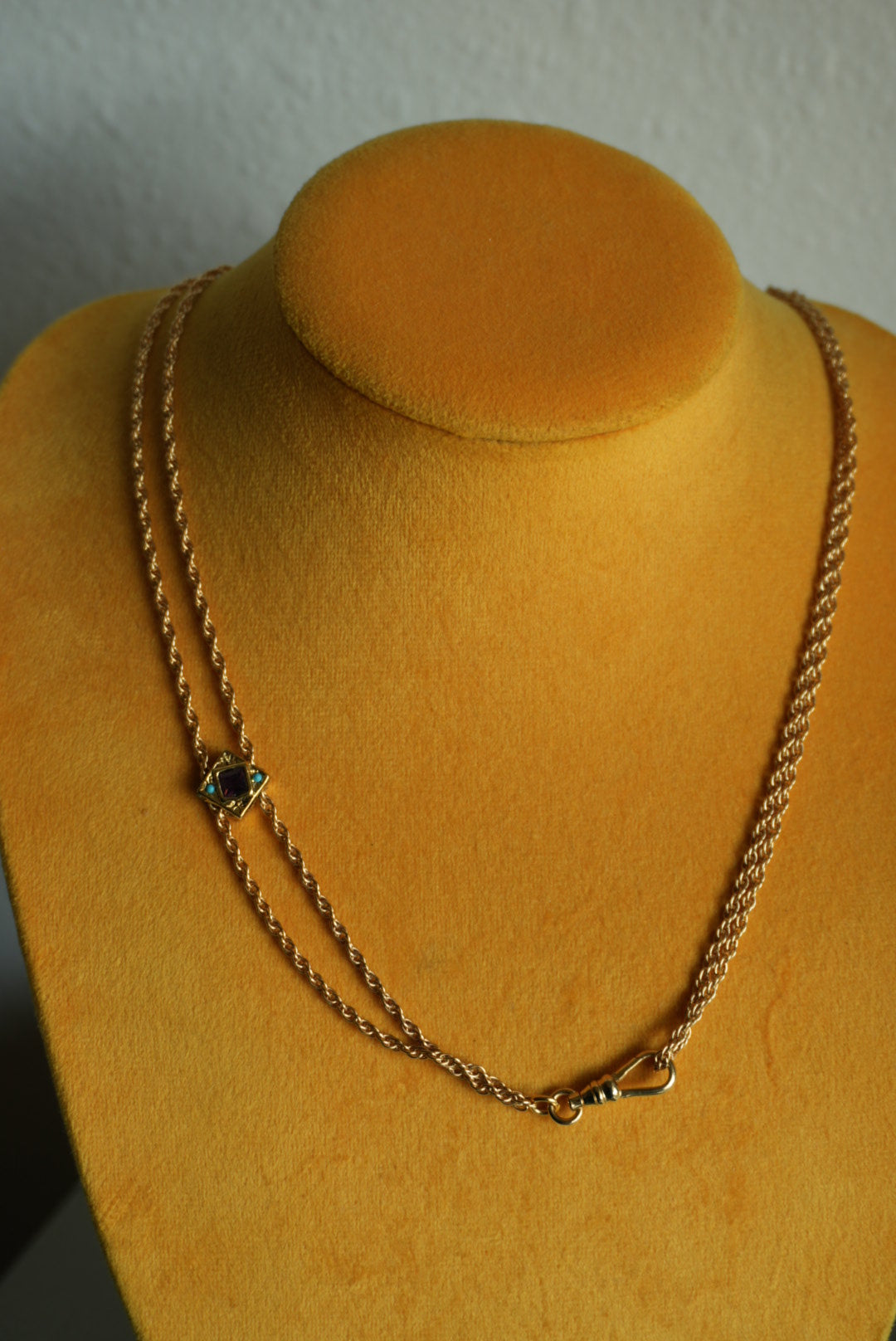 28 inch length costume piece stunning vintage-inspired watch chain with dog clip and slider and sweet gemstones Goldette