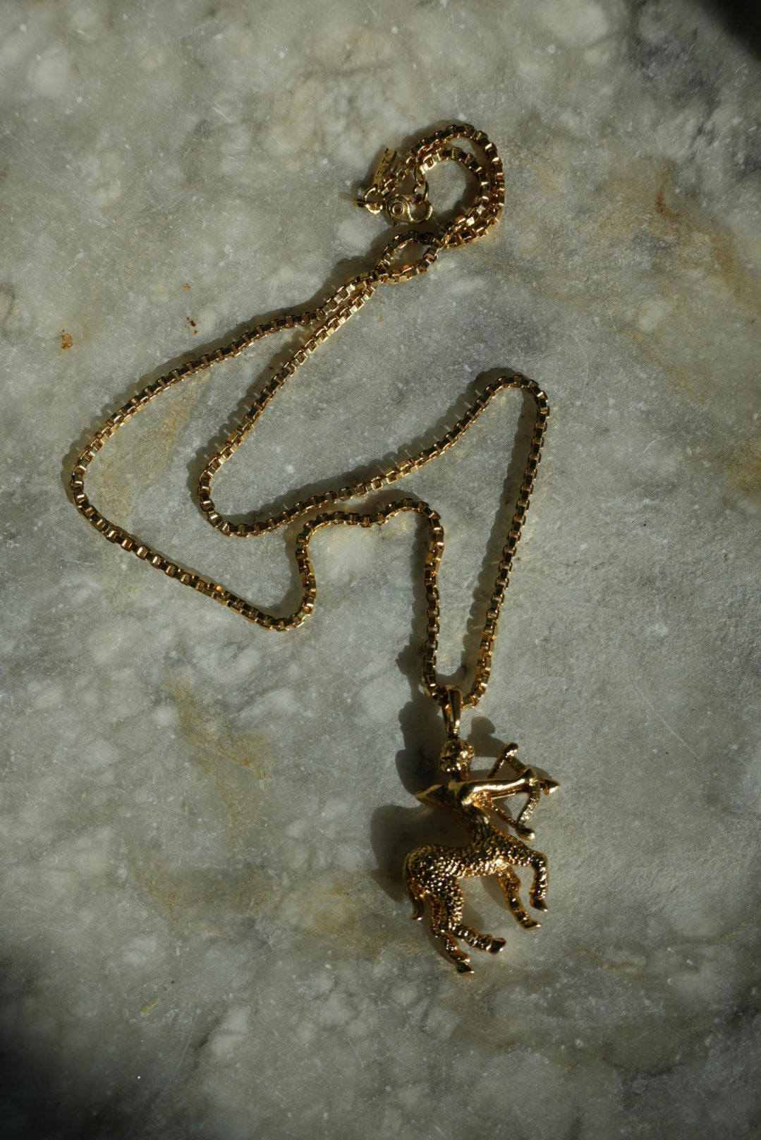 16” length costume necklace from Monet box chain and sweet Sagittarius pendant