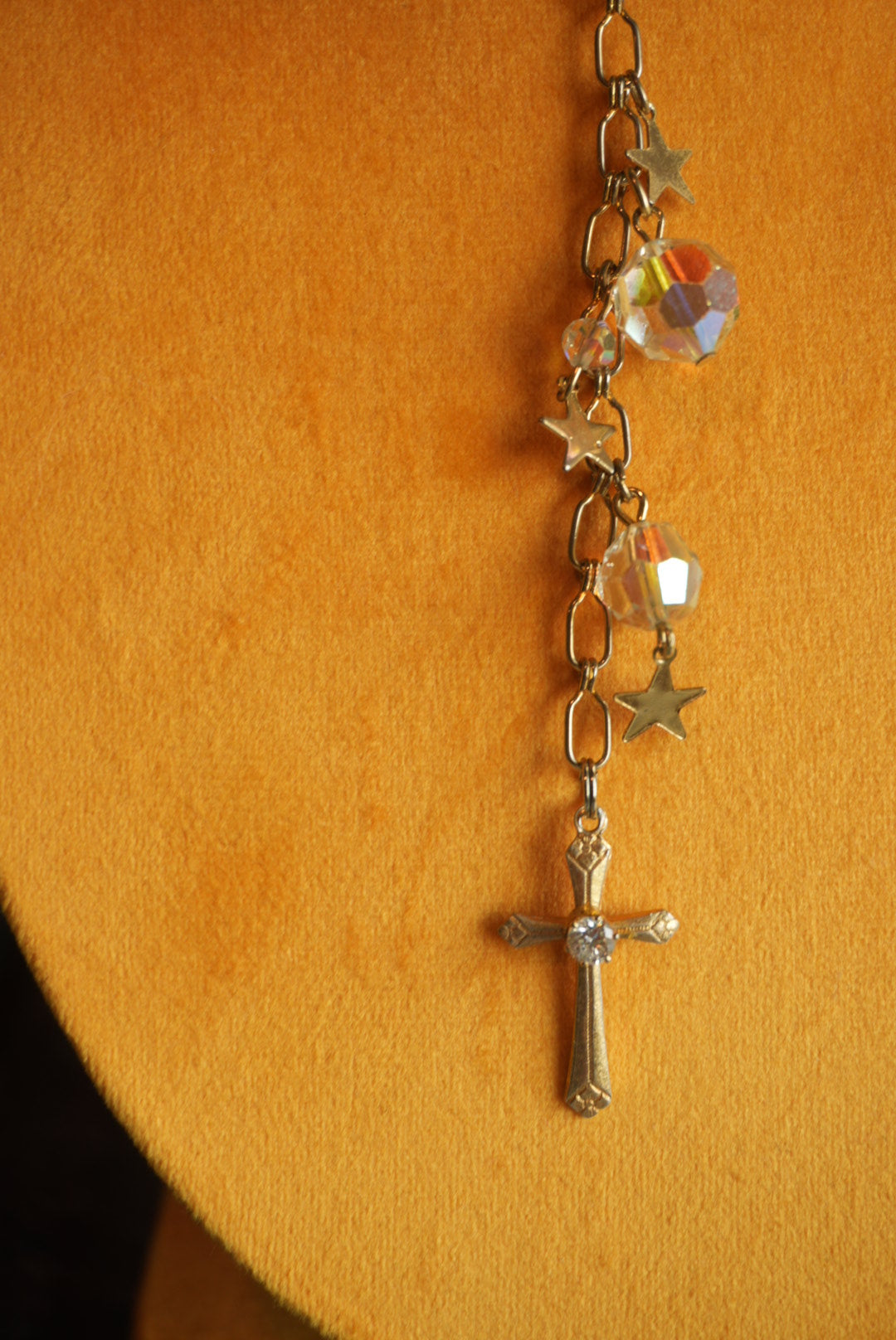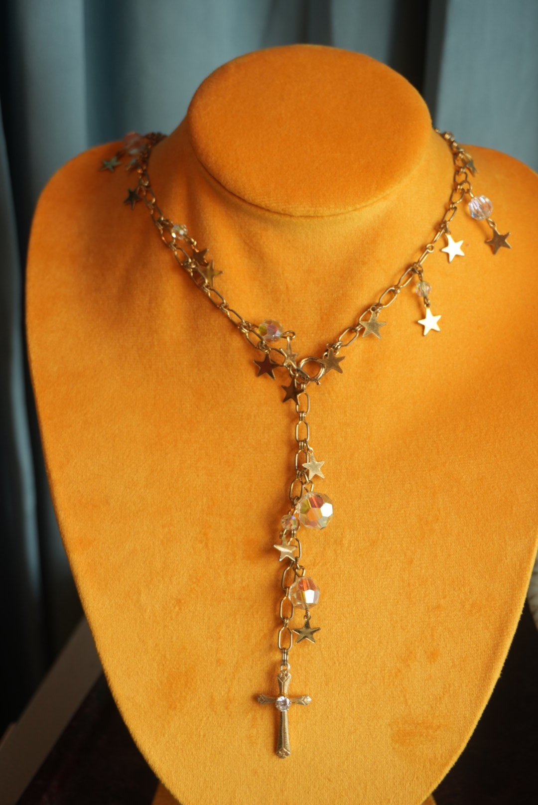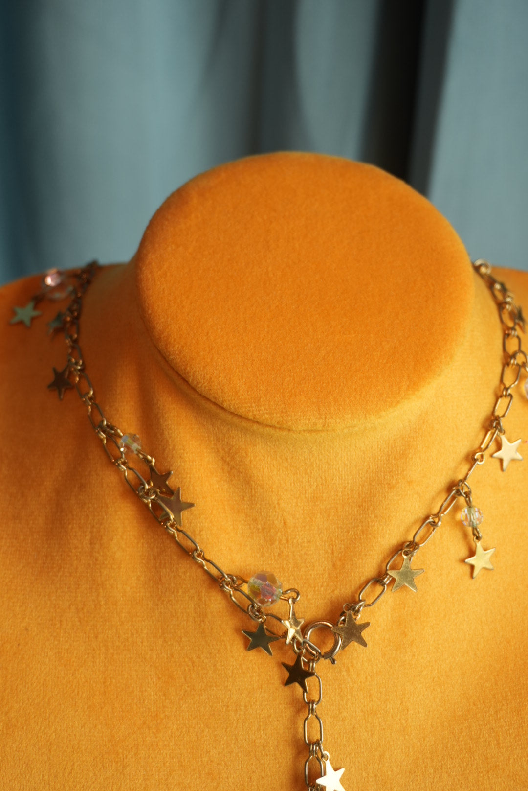 Adjustable length lariat necklace total length 22” length gold plated necklace with star charms all over