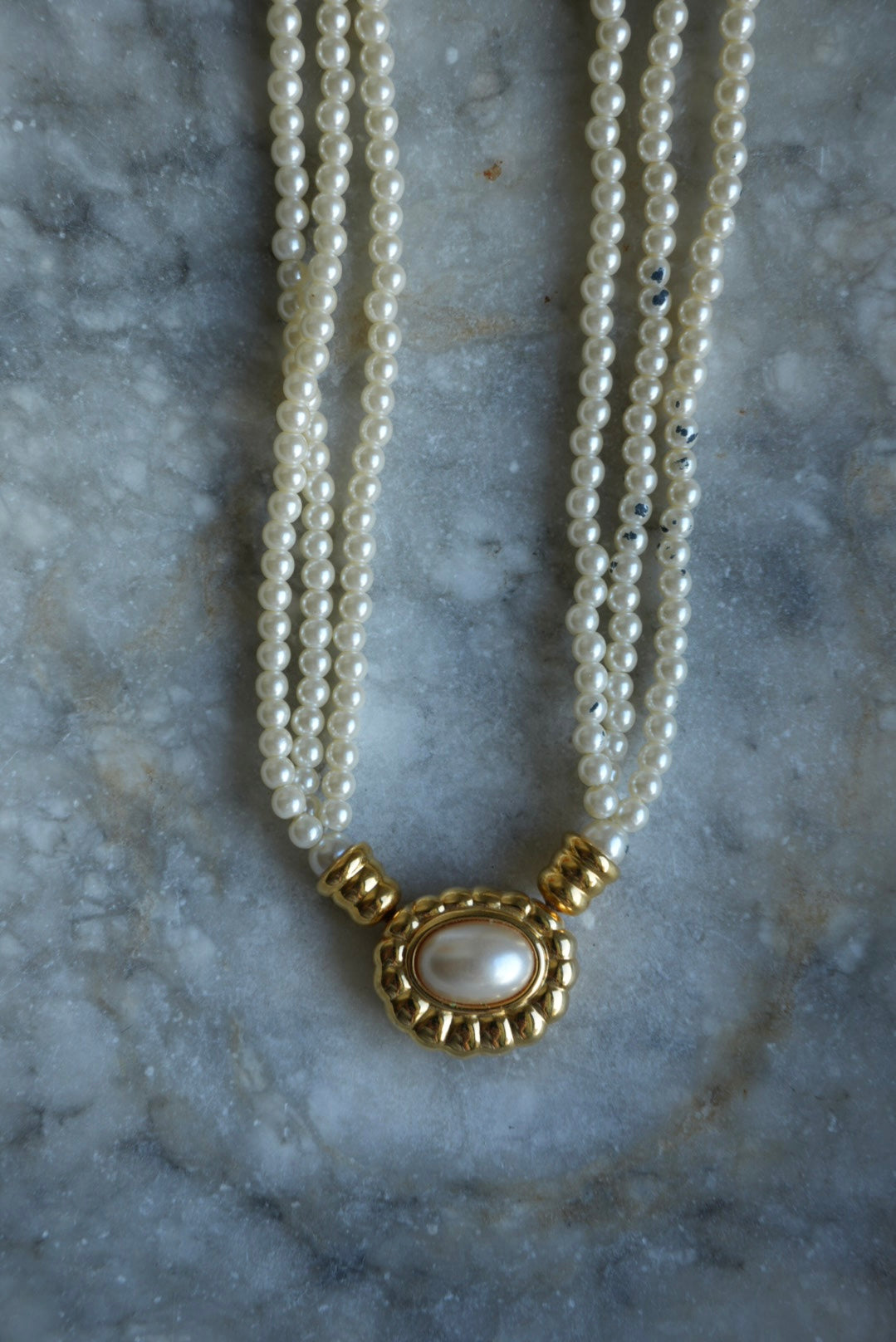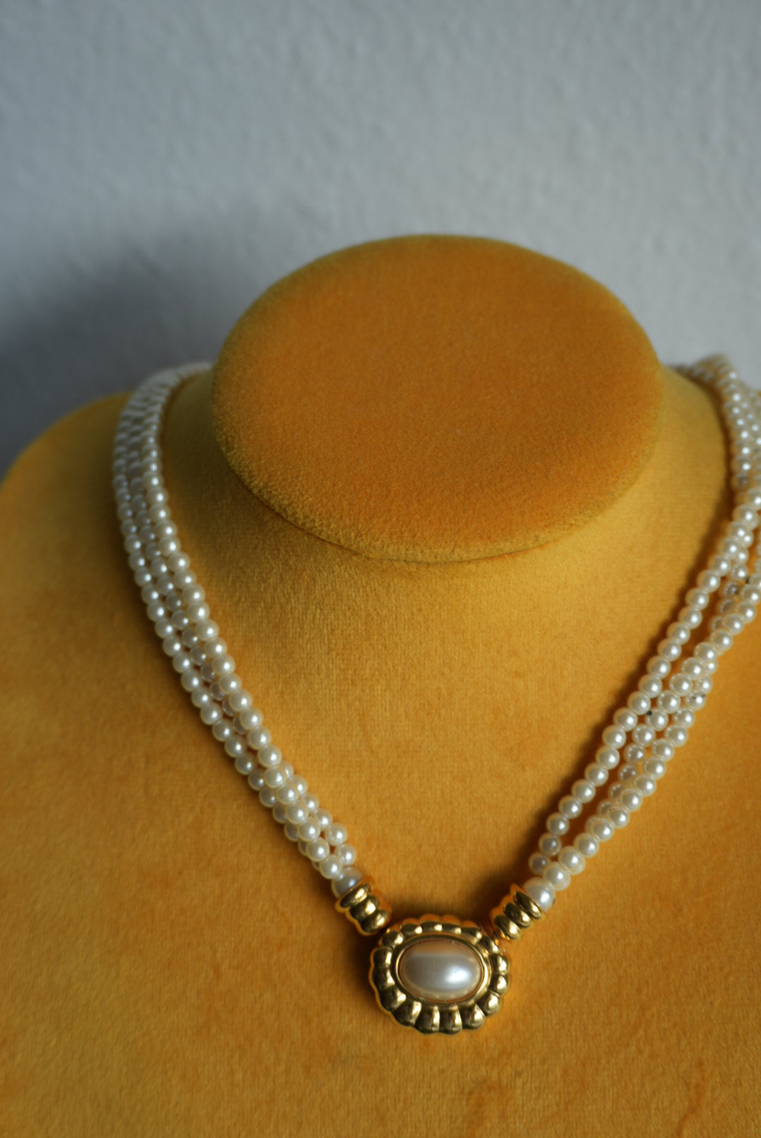 18” length bead string trio with center pendant gold plate costume by Joan Rivers
