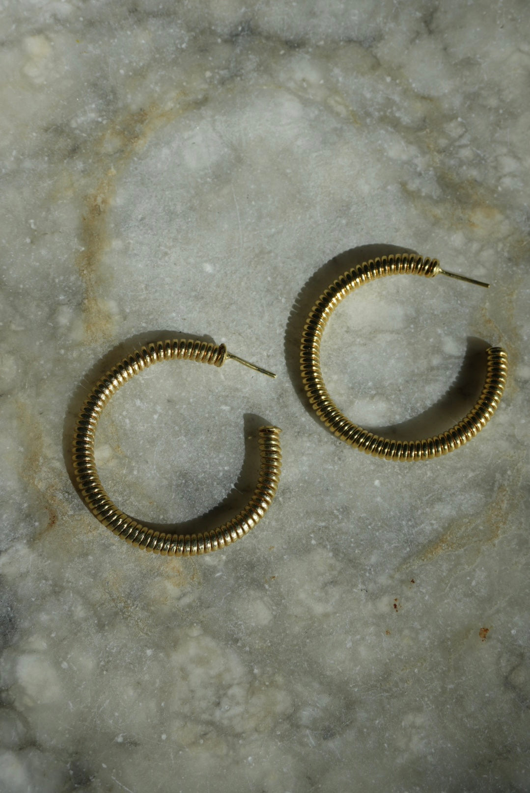 1.7 inch height gold tone hoop costume piece ! 18k gold plated from Sheila Fajil