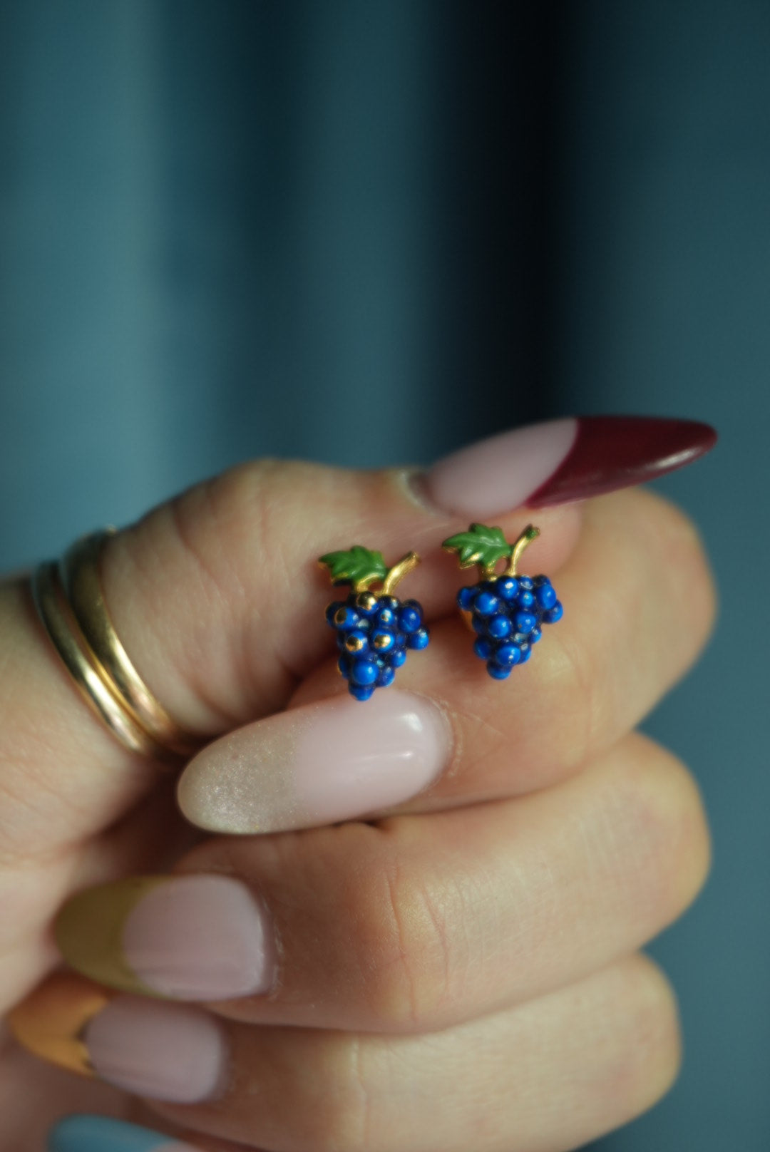 Grapes Vintage studs with a 14k gold POST only, decorative portion is heavy gold plate and enamel condition 6/10 some wear on fruits