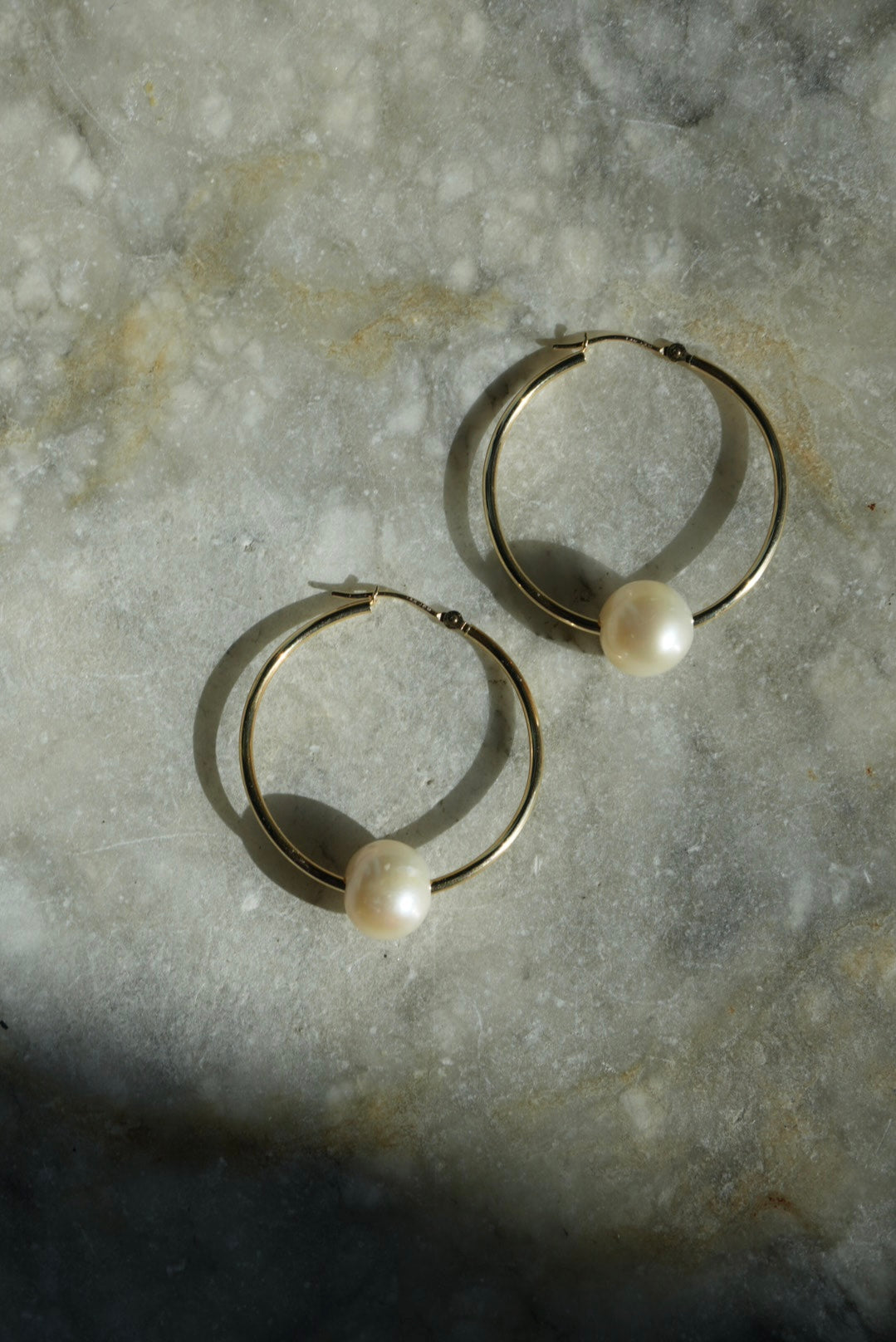 14k detachable pearl hoops