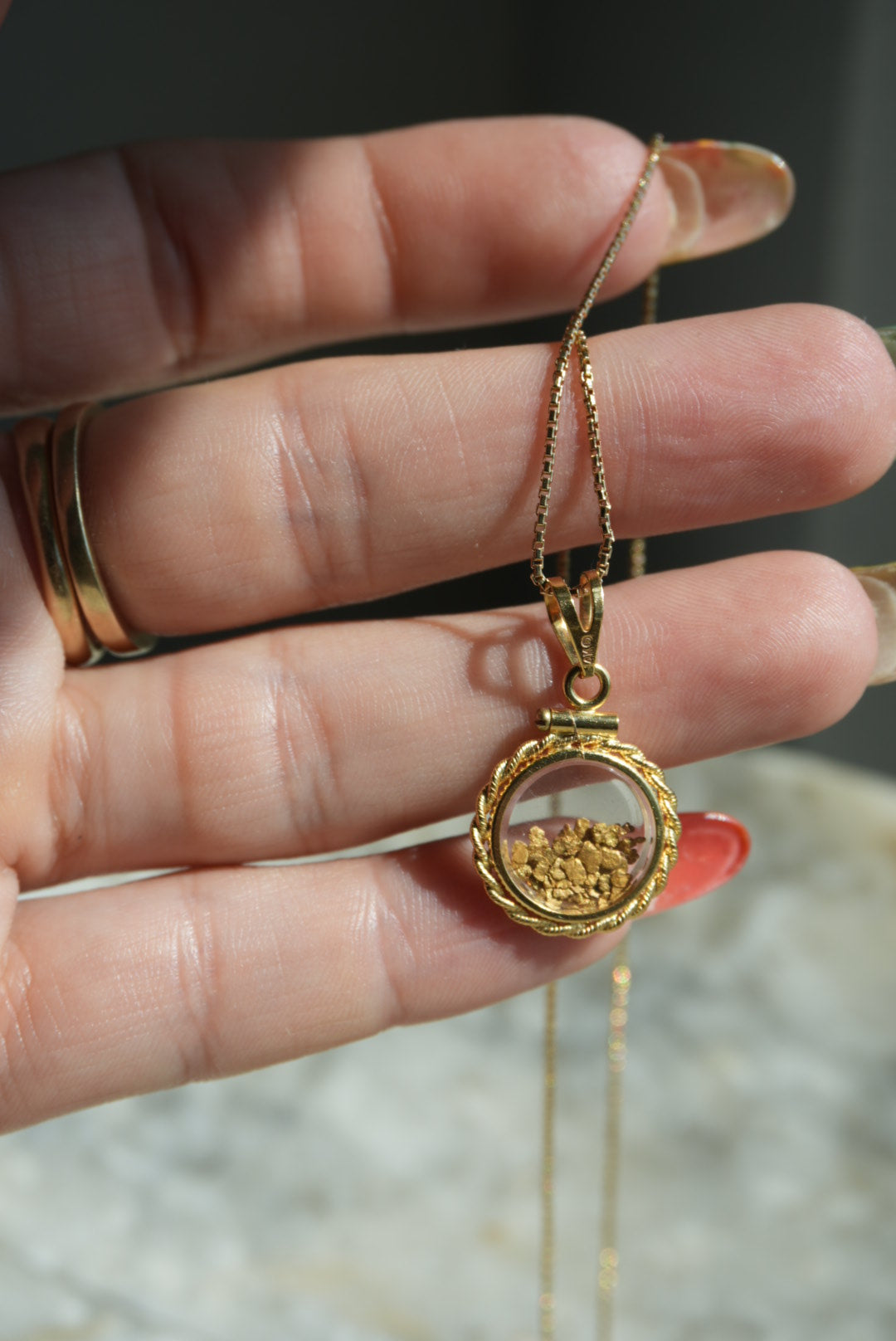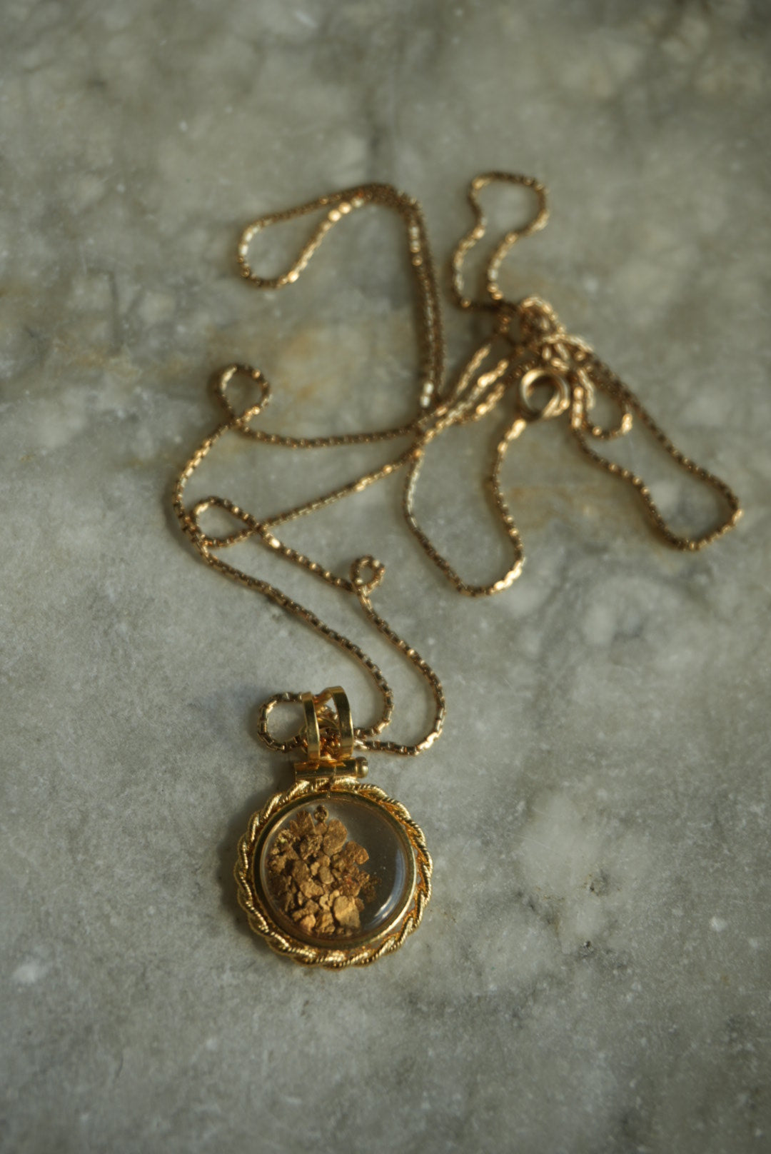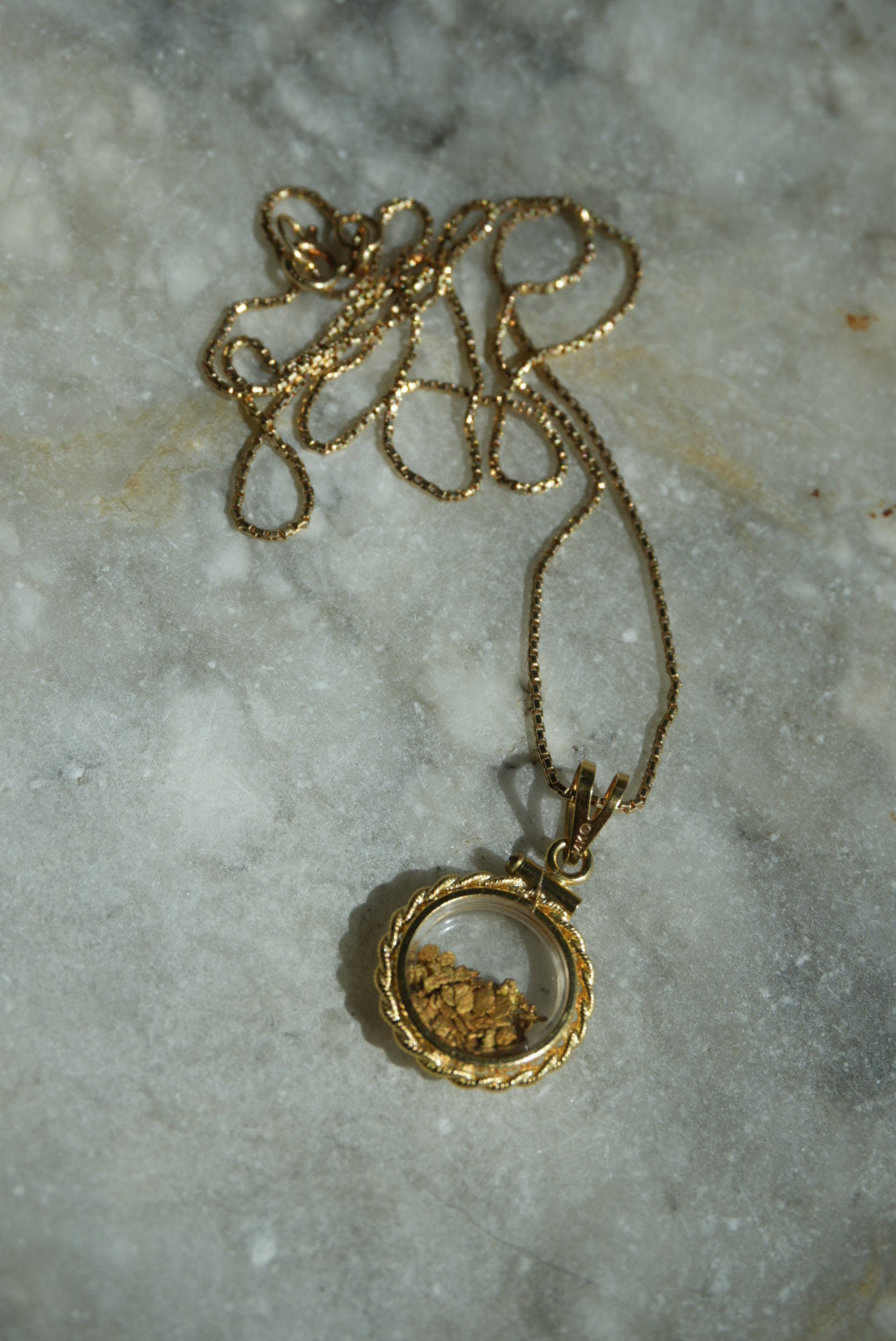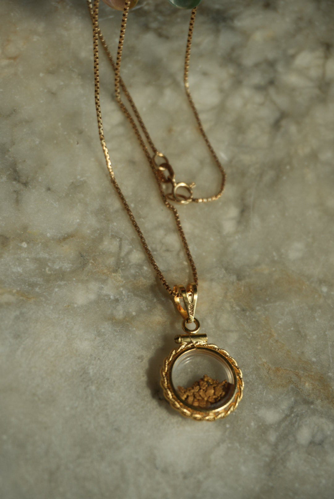 14k gold nugget charm with glass on a 19 inch 14k chain