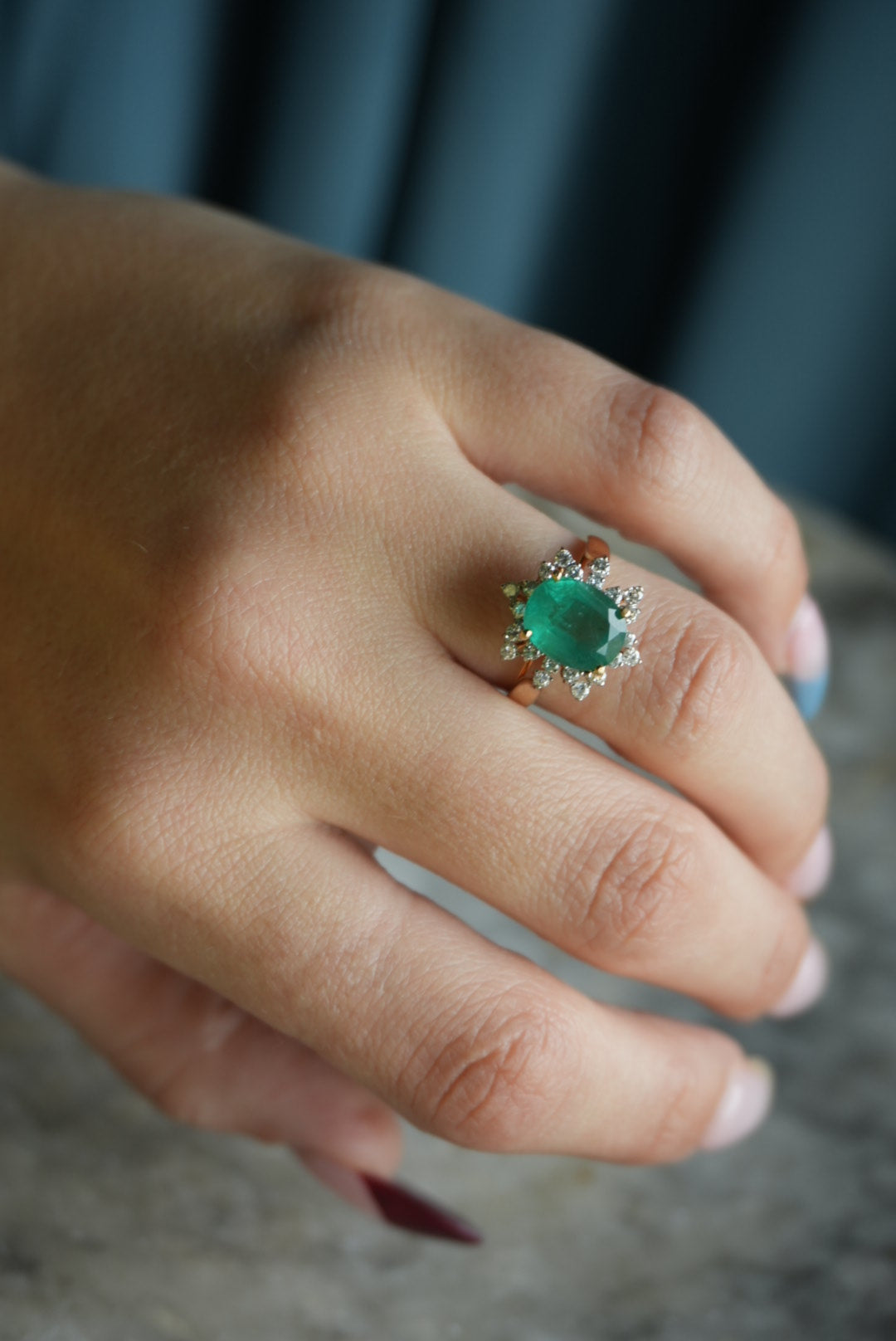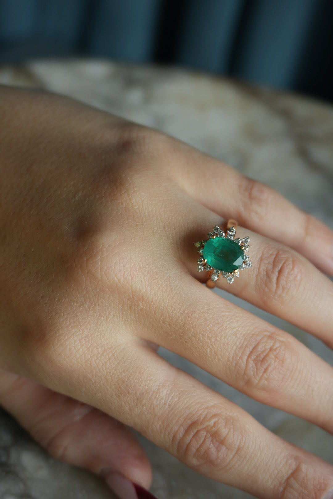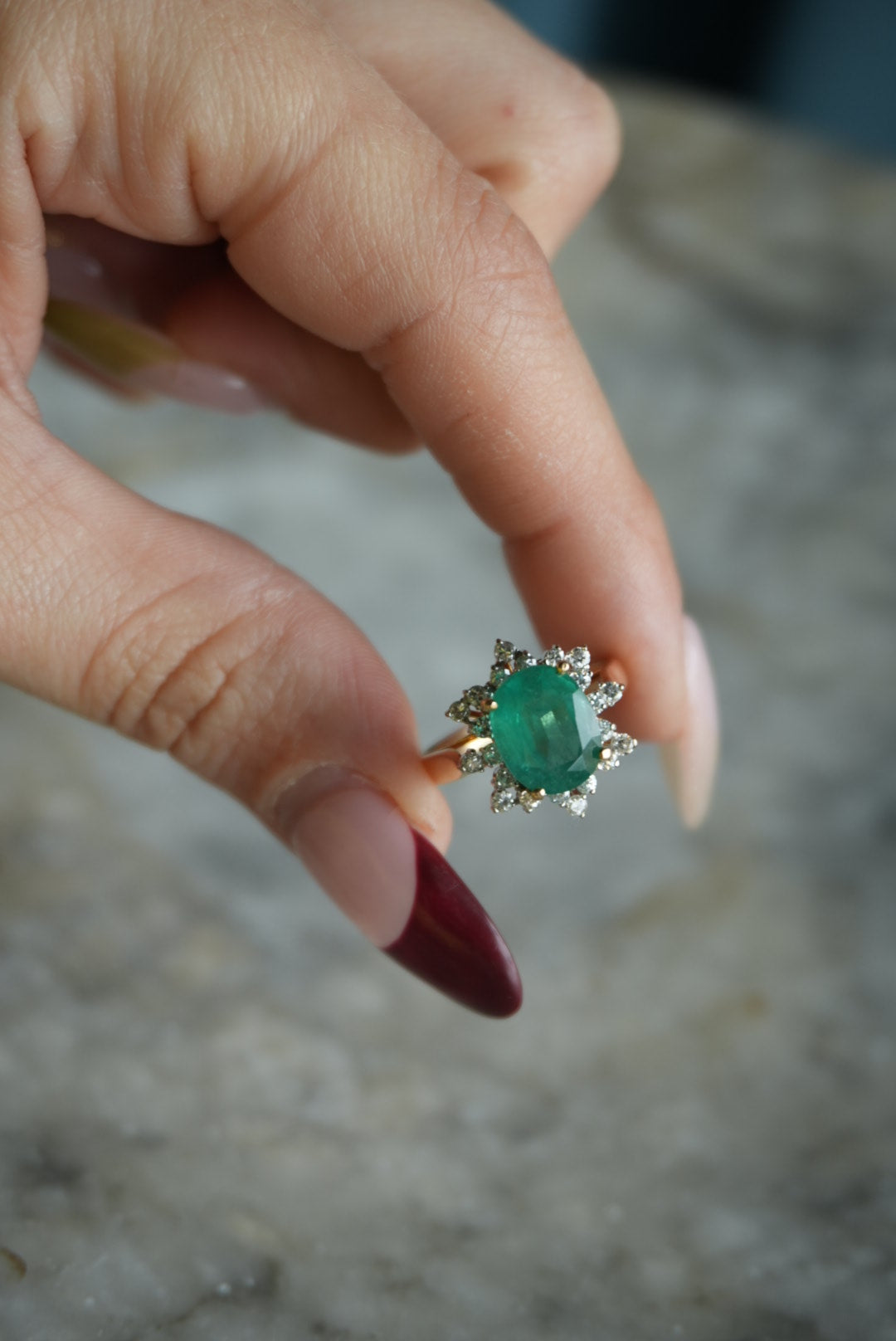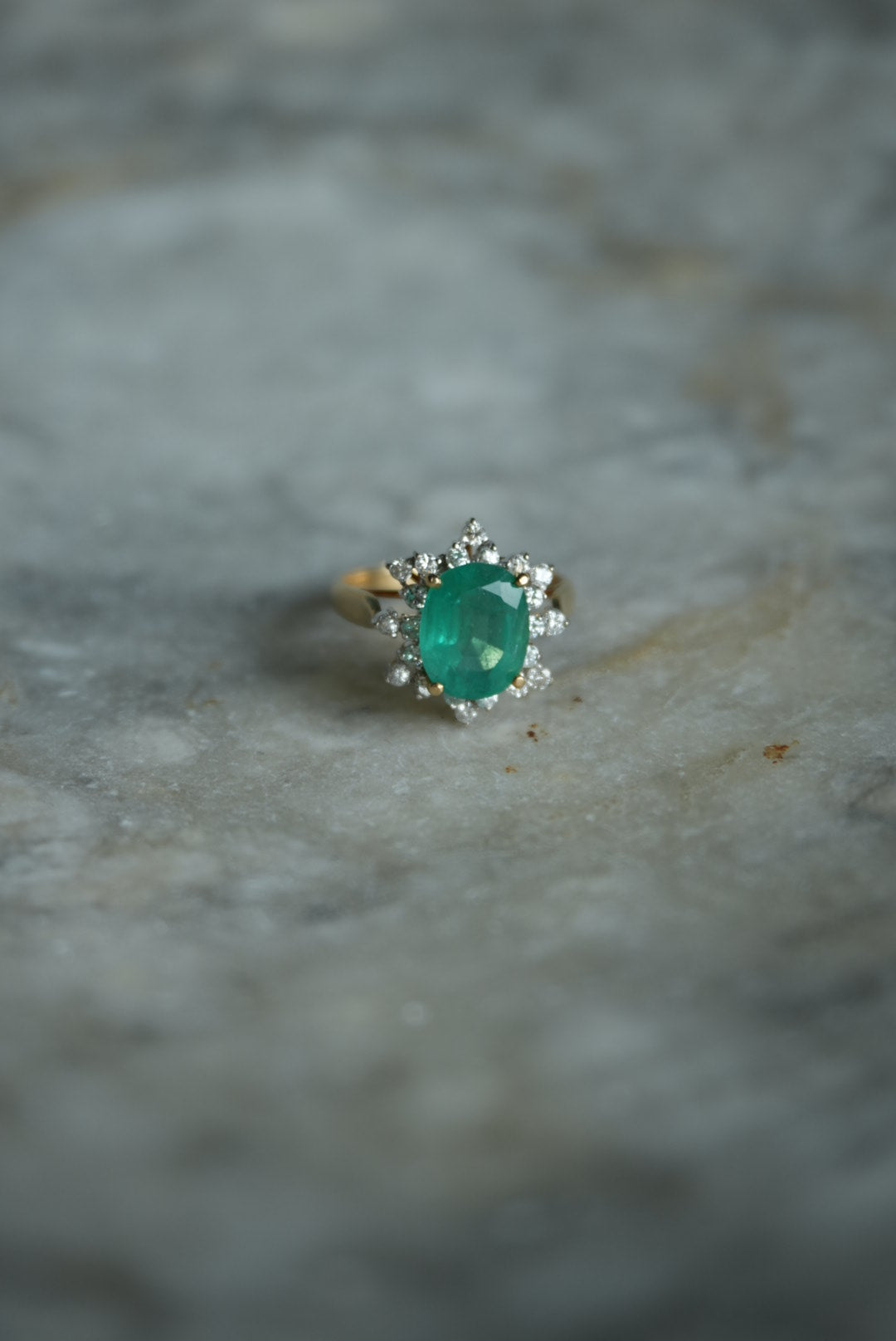 14k gold emerald & diamond ring