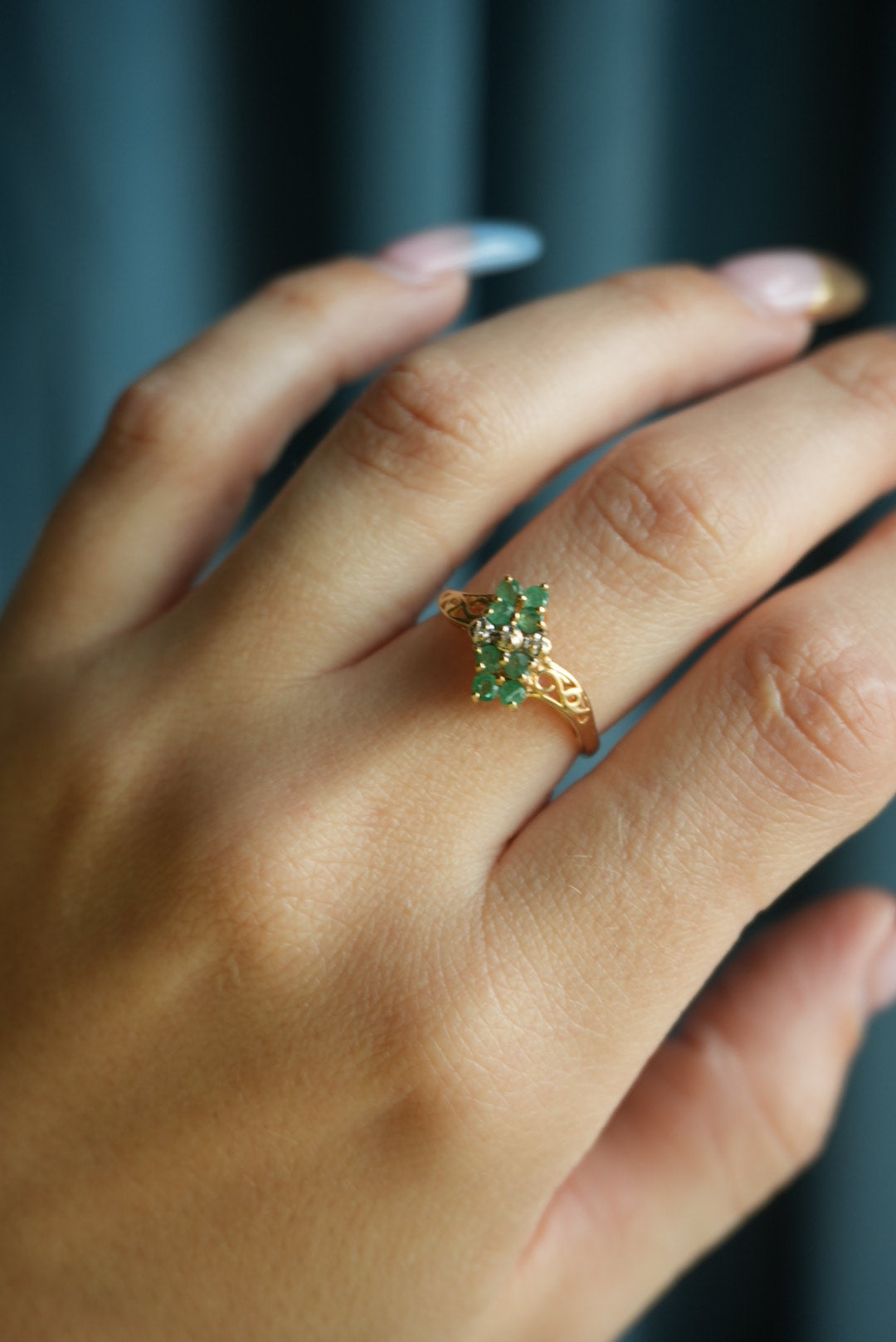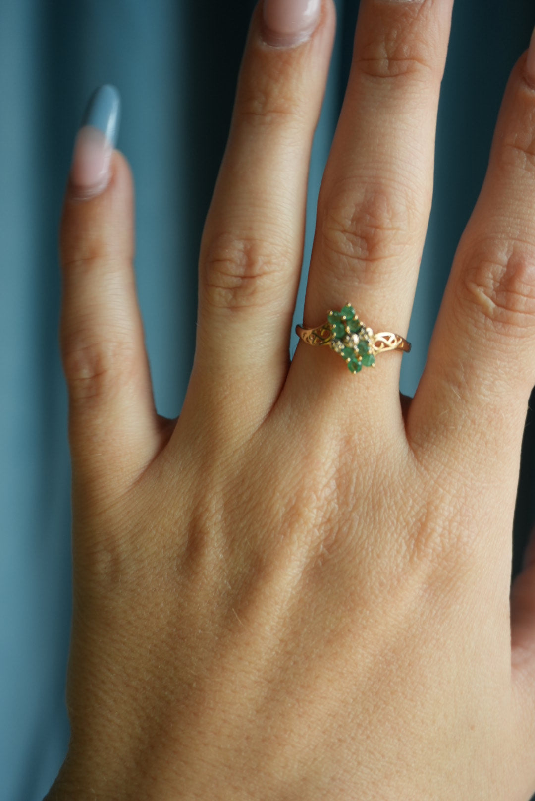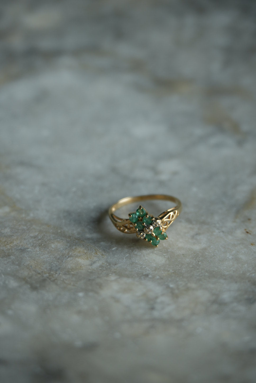 14K EMERALD FLOWER RING