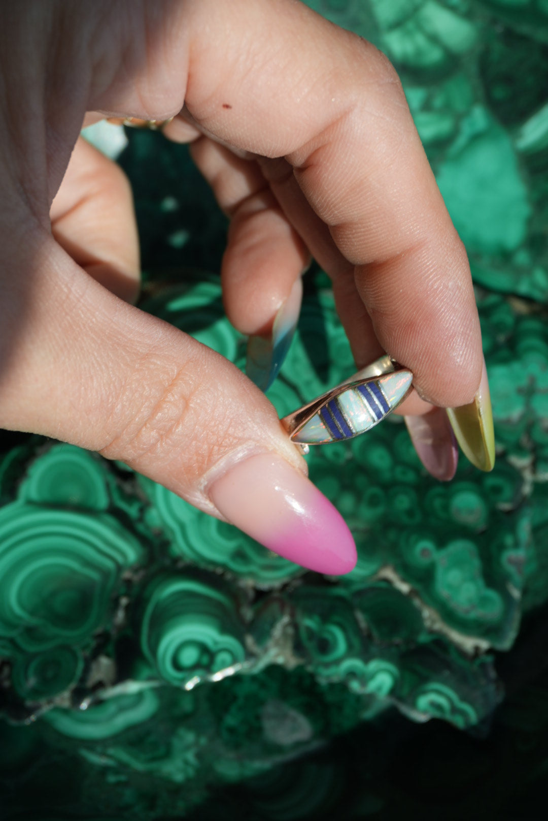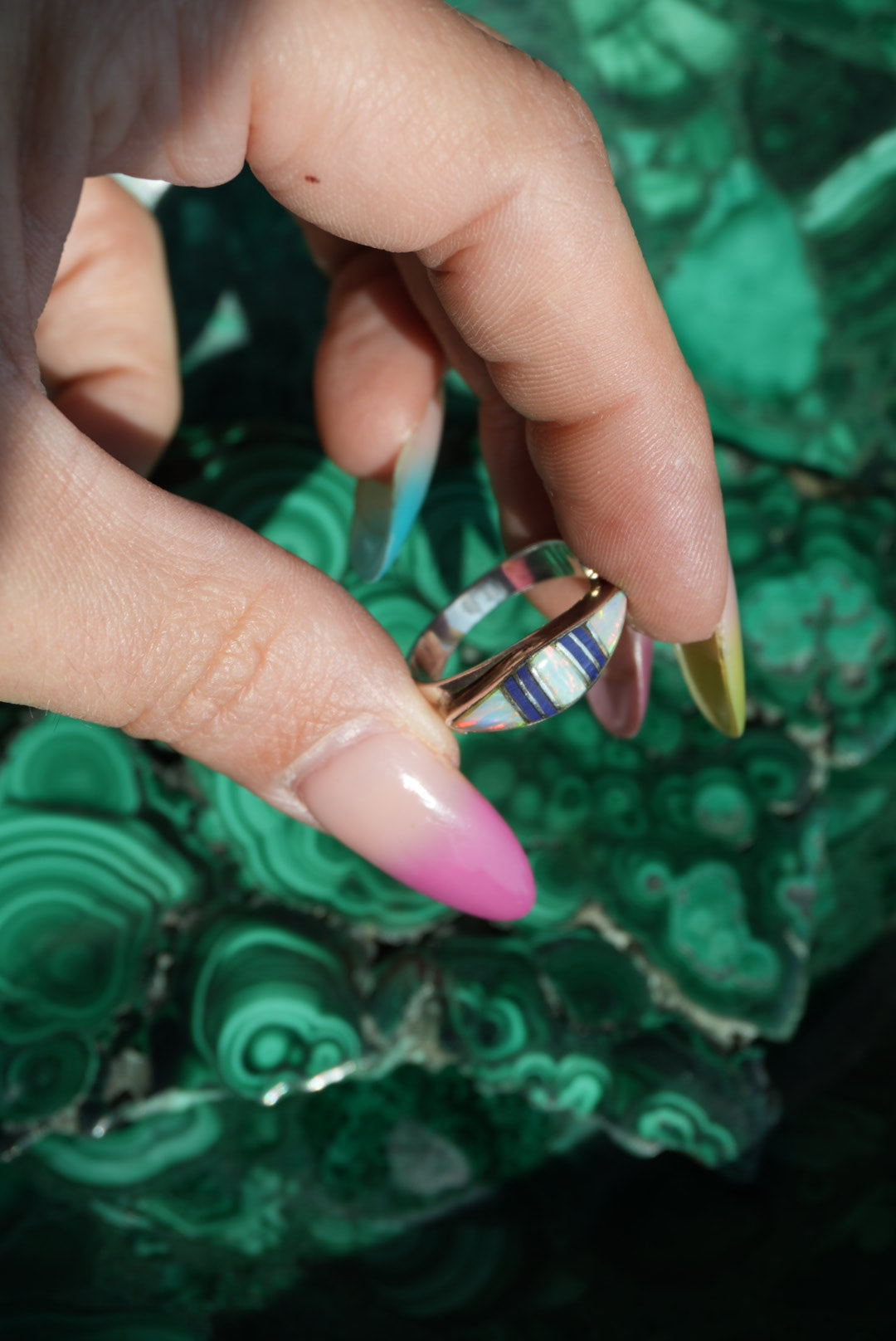 Sterling silver opal ring with lapis inlay