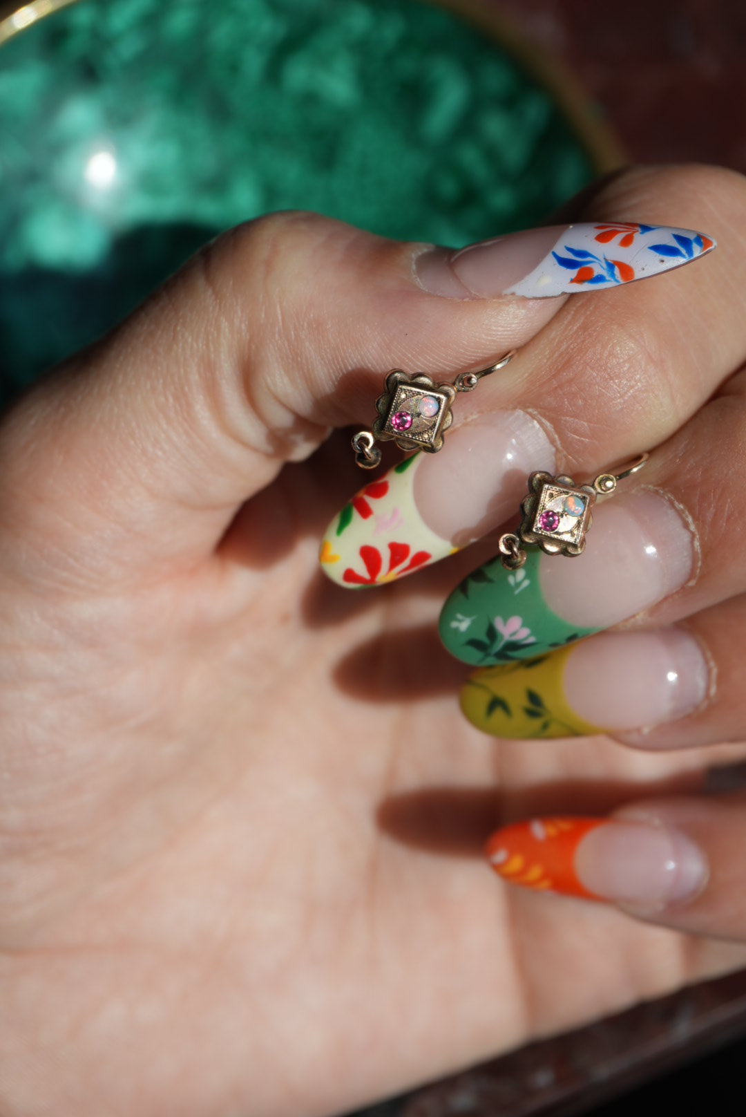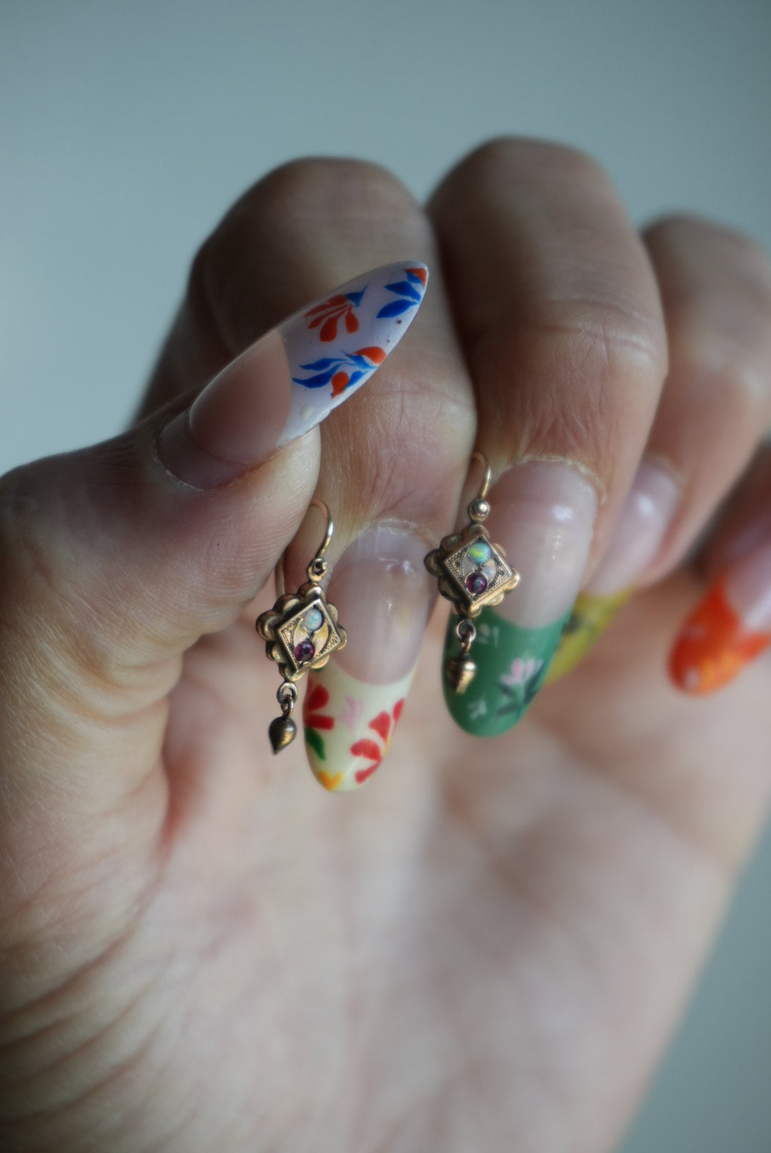 Gold fill antique opal drop earrings