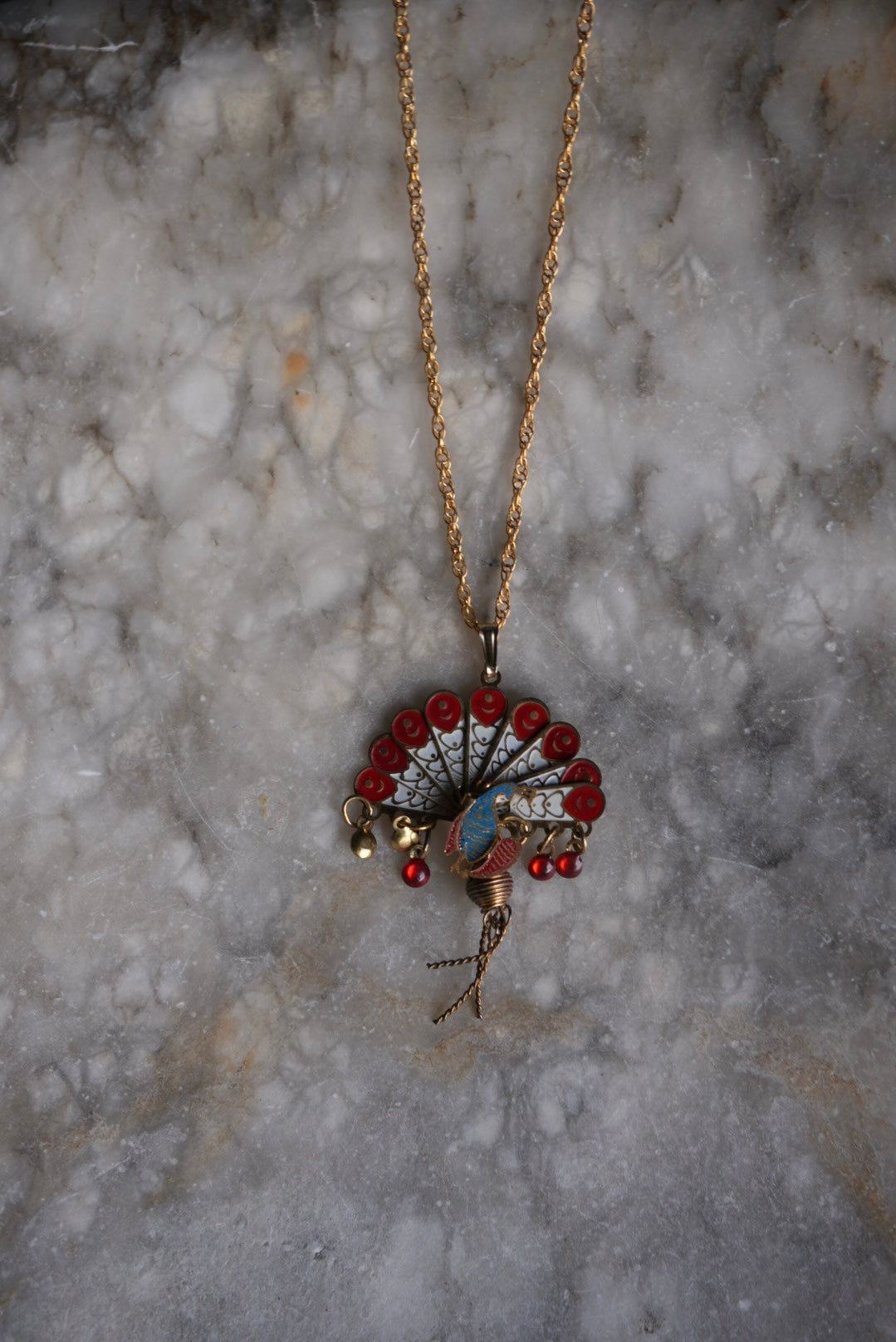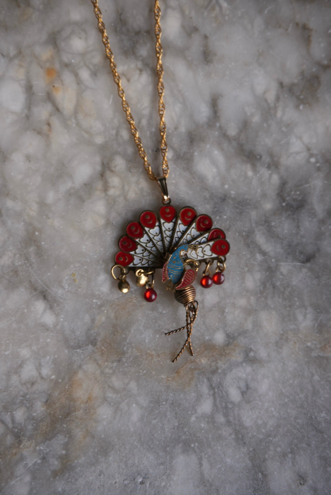 Adorable ! Fan style fold out charm of a peacock on 18” gold fill chain