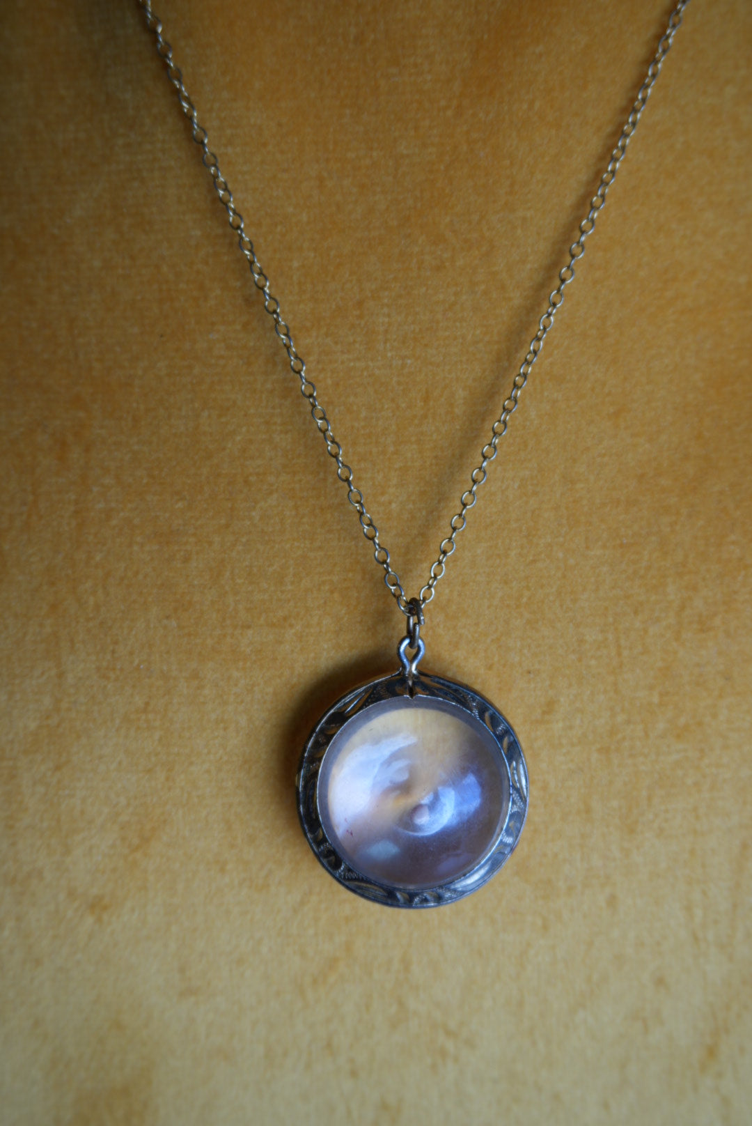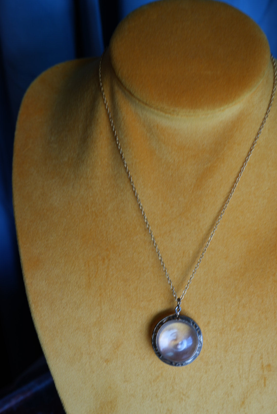 Gold fill frame on resin held mustard seed in 1” magnifying on 16” length costume chain