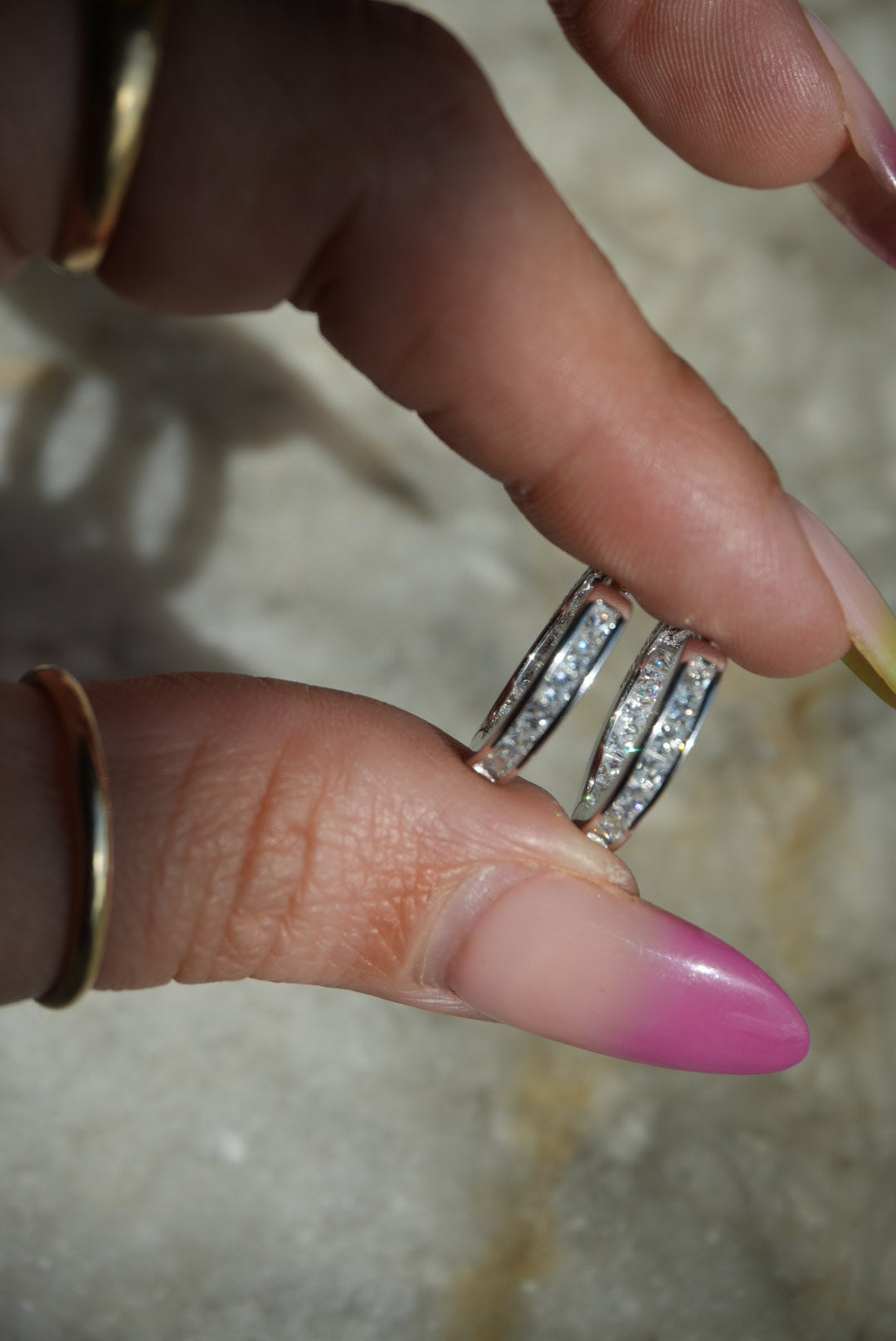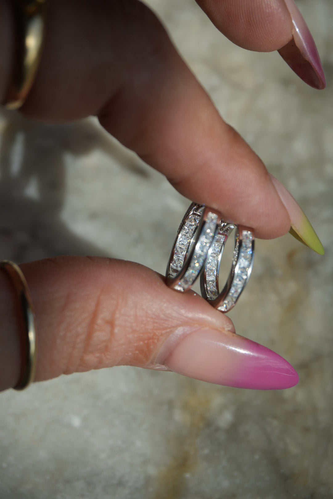.75 inch tall sterling silver hoops with glass stone super cutie