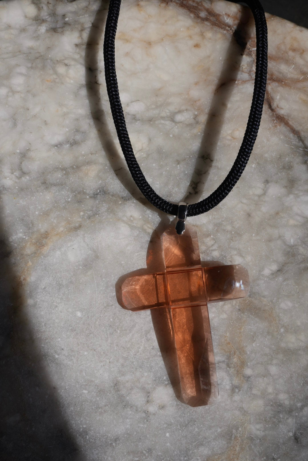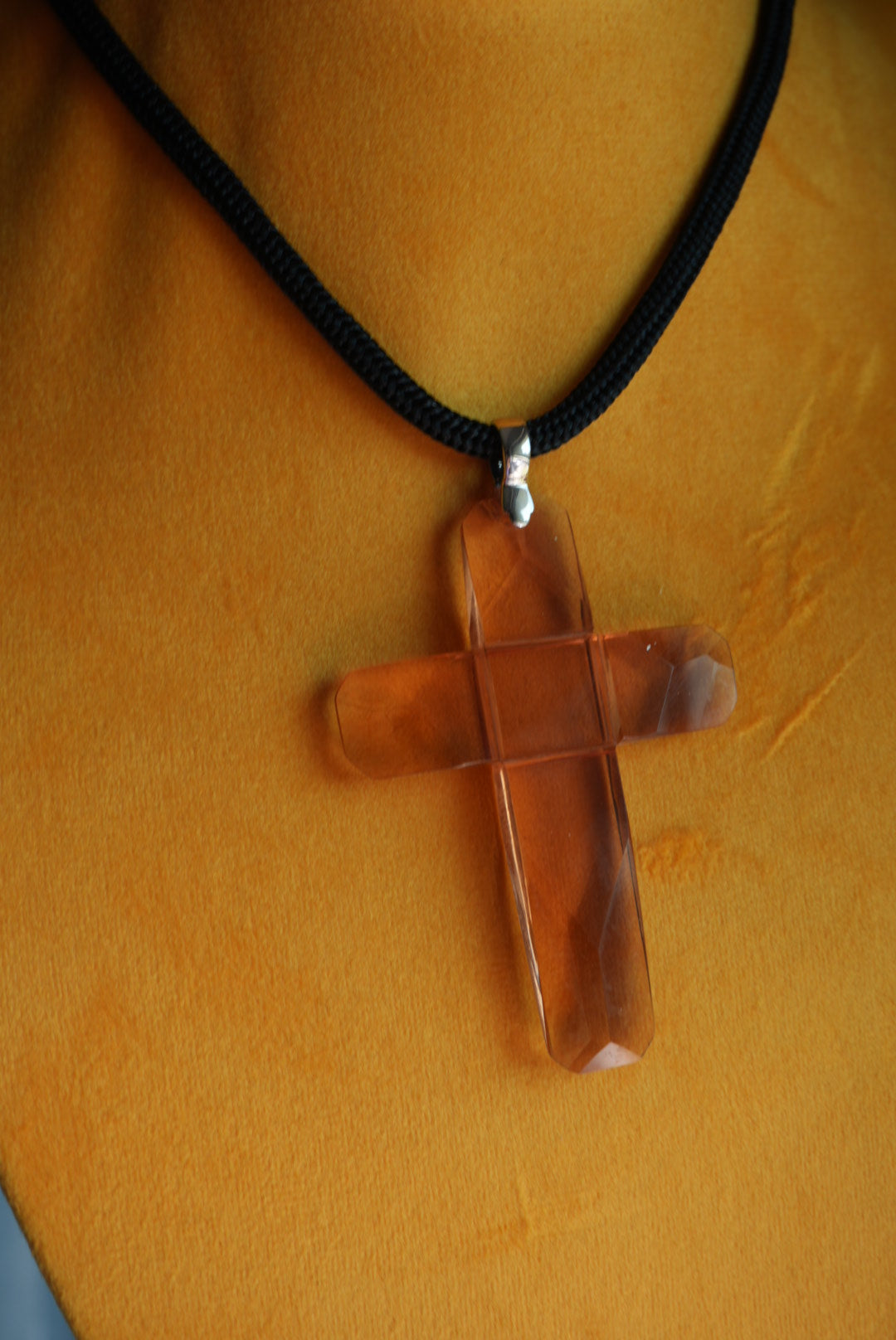 15-17 inch chord necklace with glass cross 4 inch tall cross
