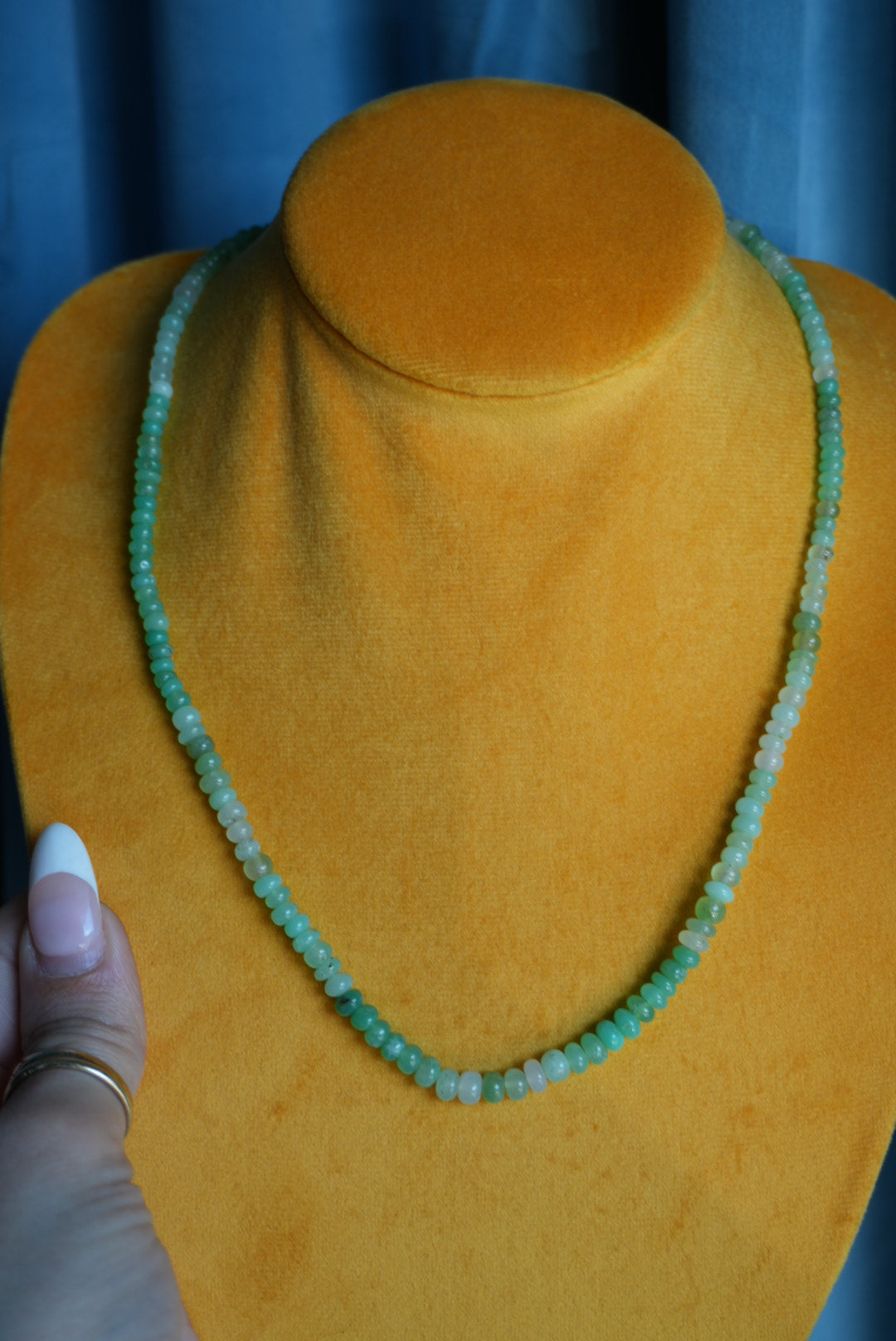 20” length chryophrase bead necklace with sterling clasp