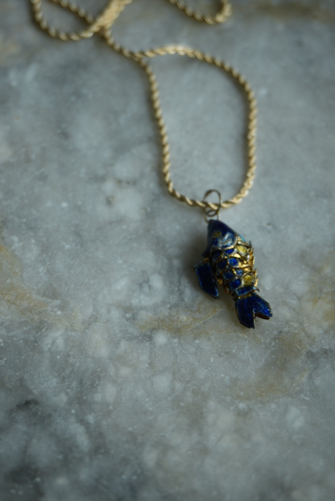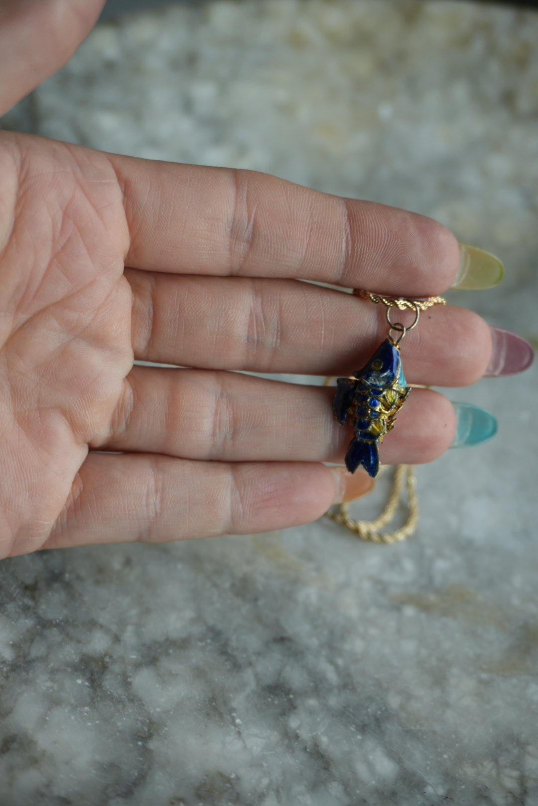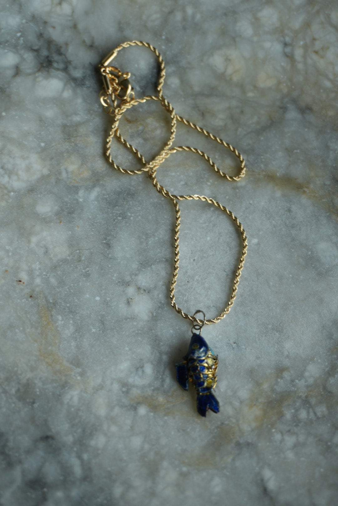 16” length gold fill chain with darling vintage swimmy fish enamel colored