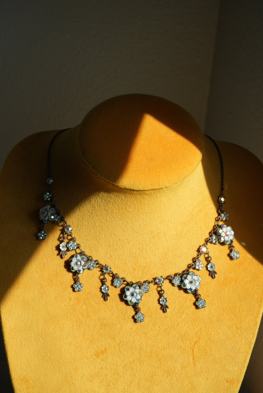 Michal Negrin with crystal florals 14 or 16” length Aurora