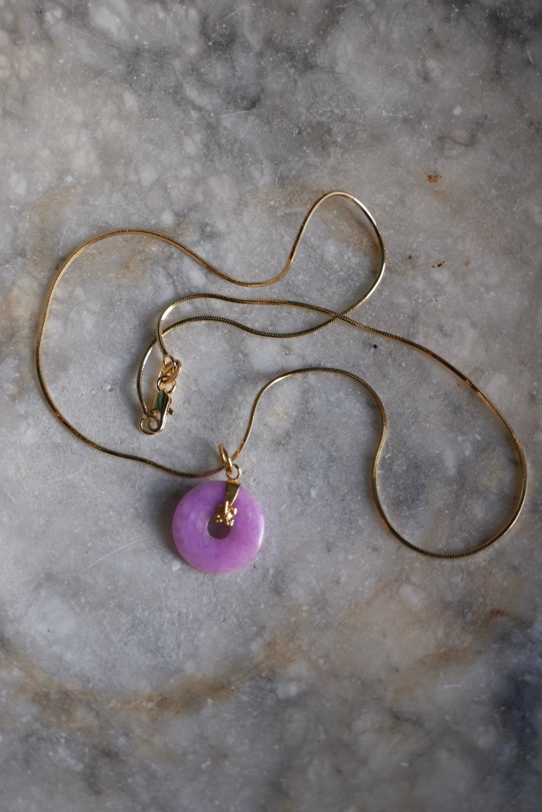 18k gold fill chain 18” long with dyed jade pendant so cutie