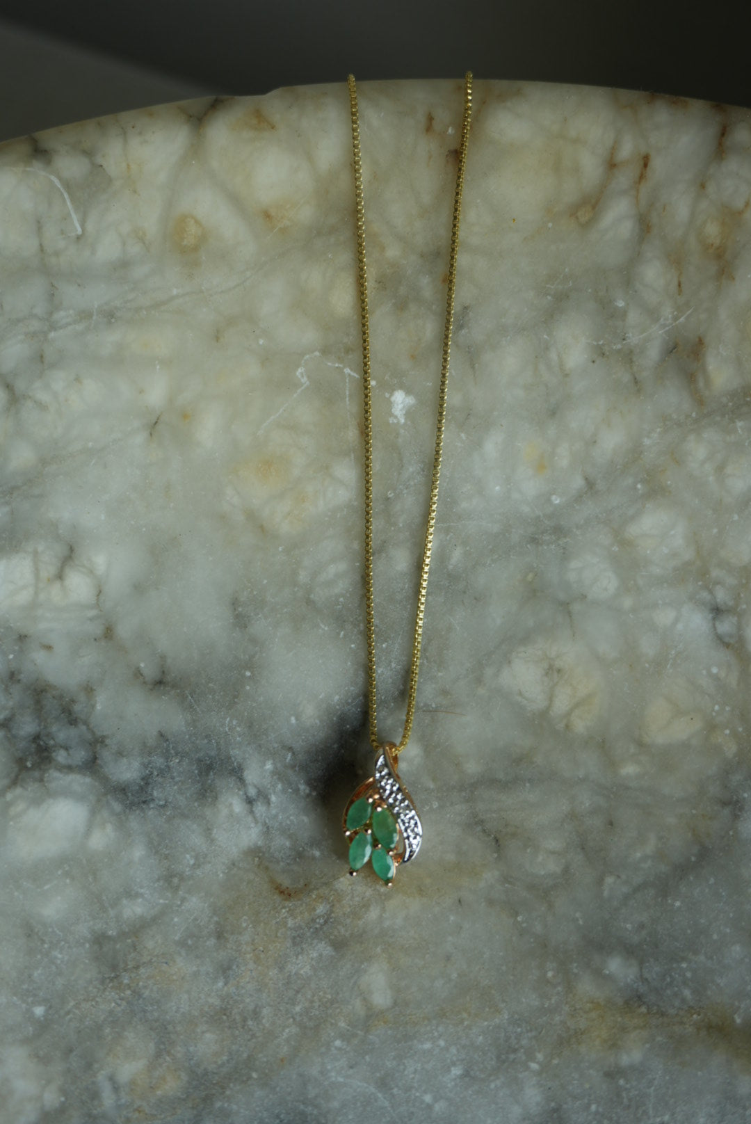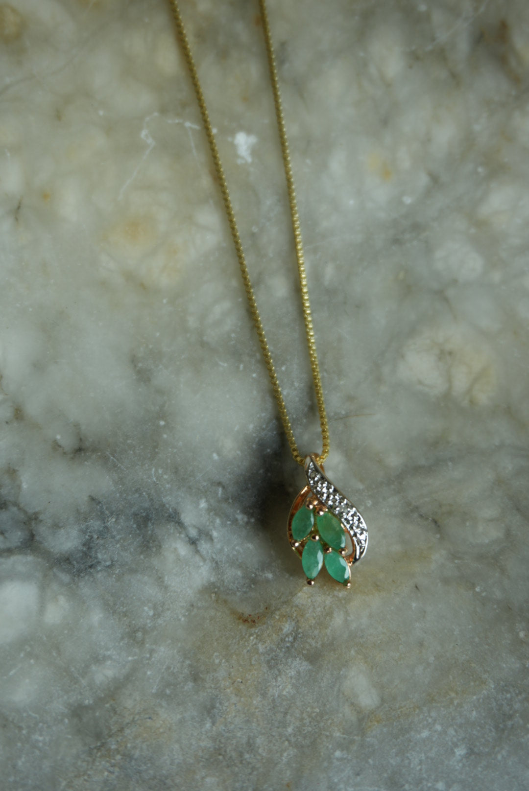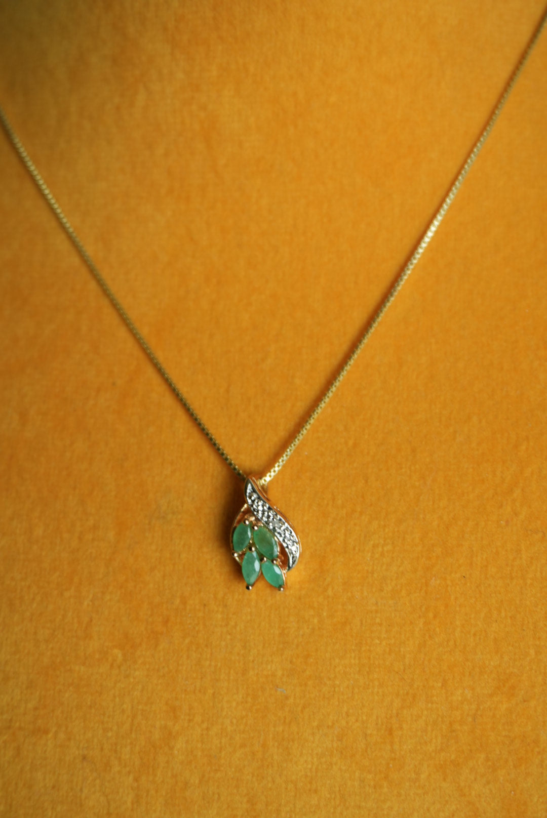 18” length vermeil chain with vermeil pendant with emerald cluster
