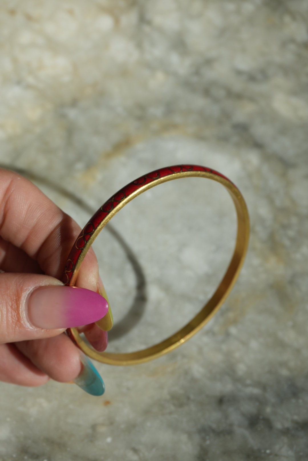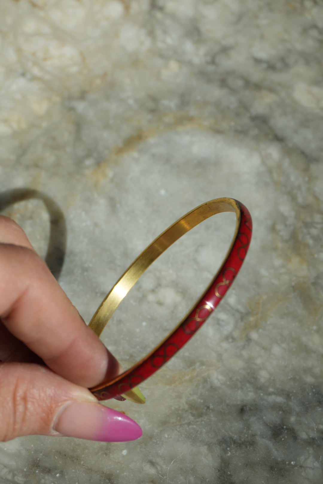 Cloisonne bangle with infinity signs vintage with Chinese character markings inside 2.6” inner diameter gold plated piece