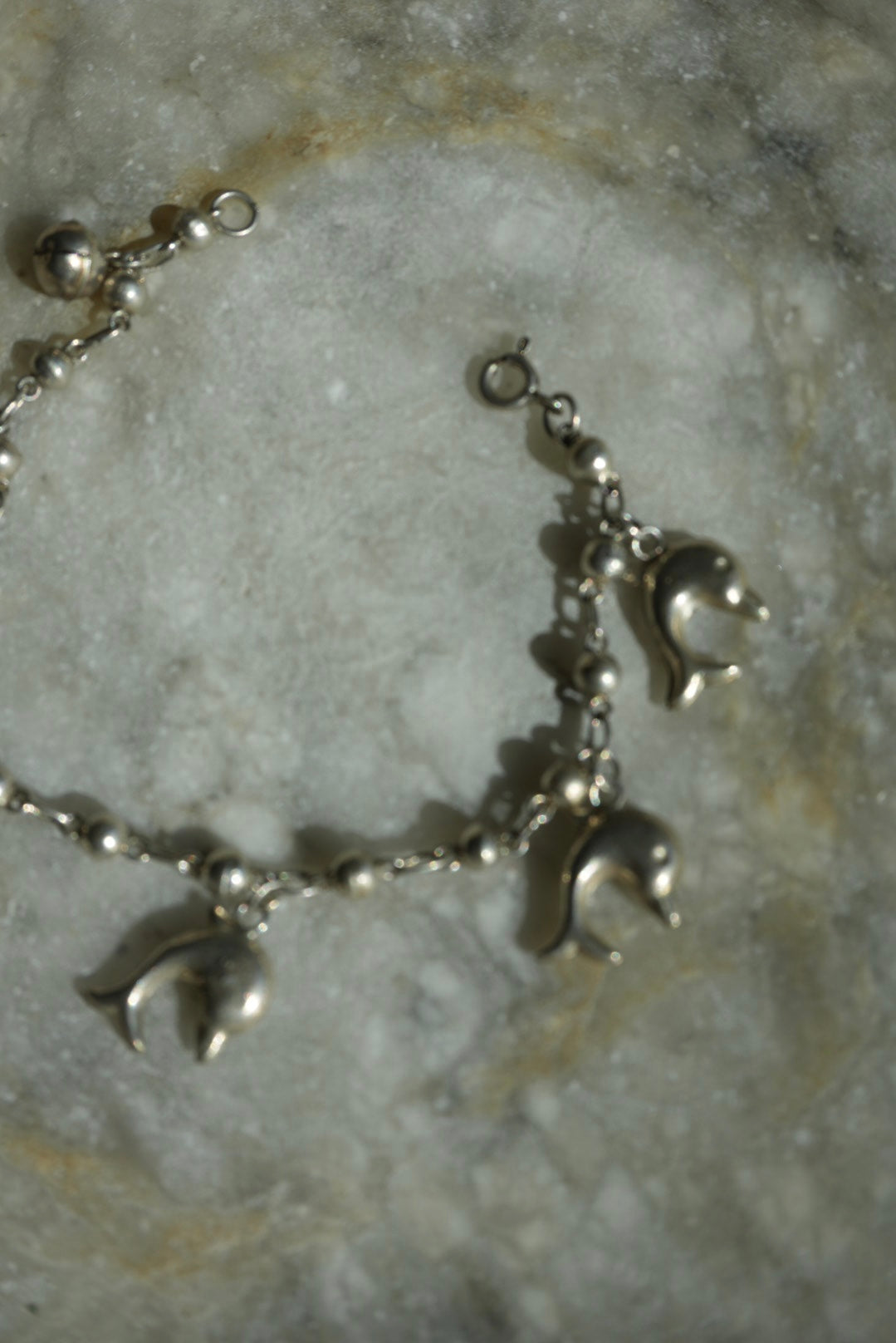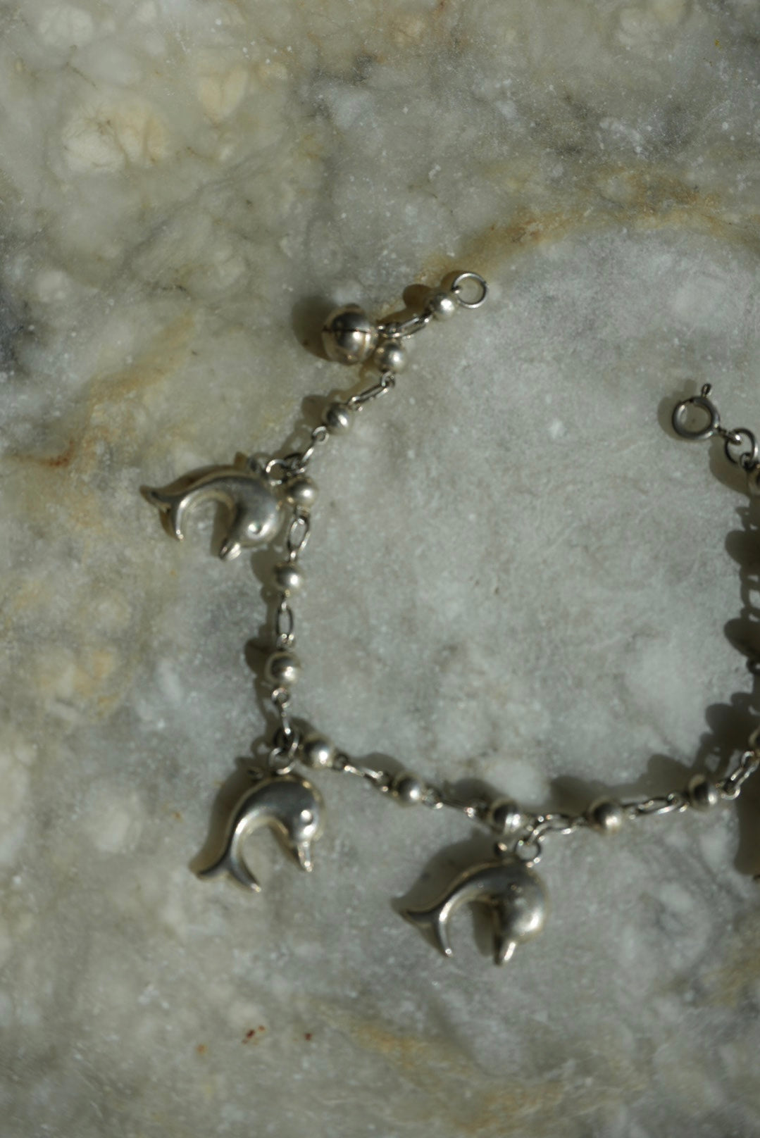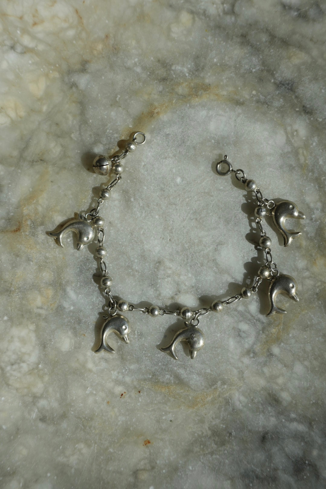 7” length length dolphin charms bracelet with little bell all sterling silver